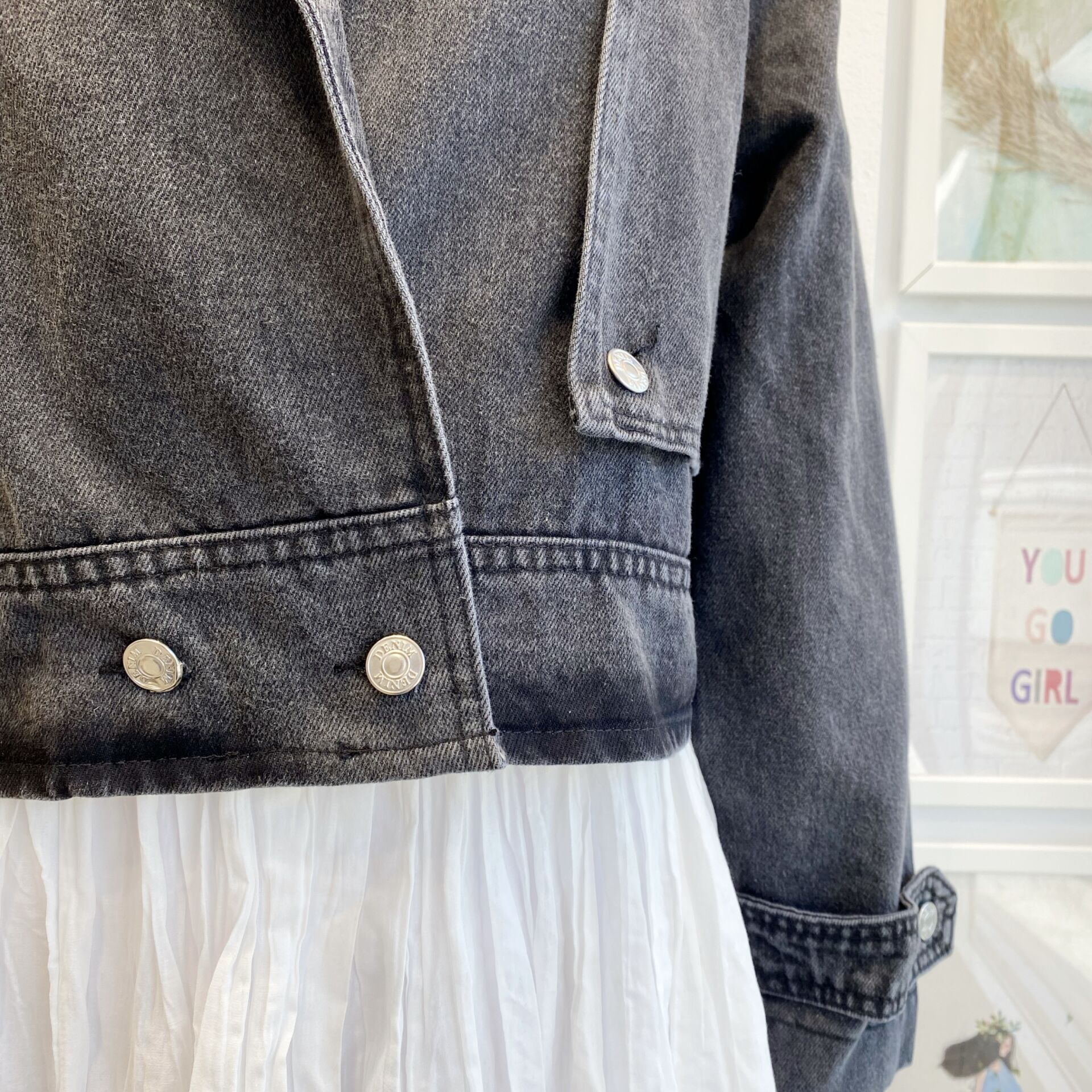 Antrasit Zımba Düğme Detaylı Kot Ceket