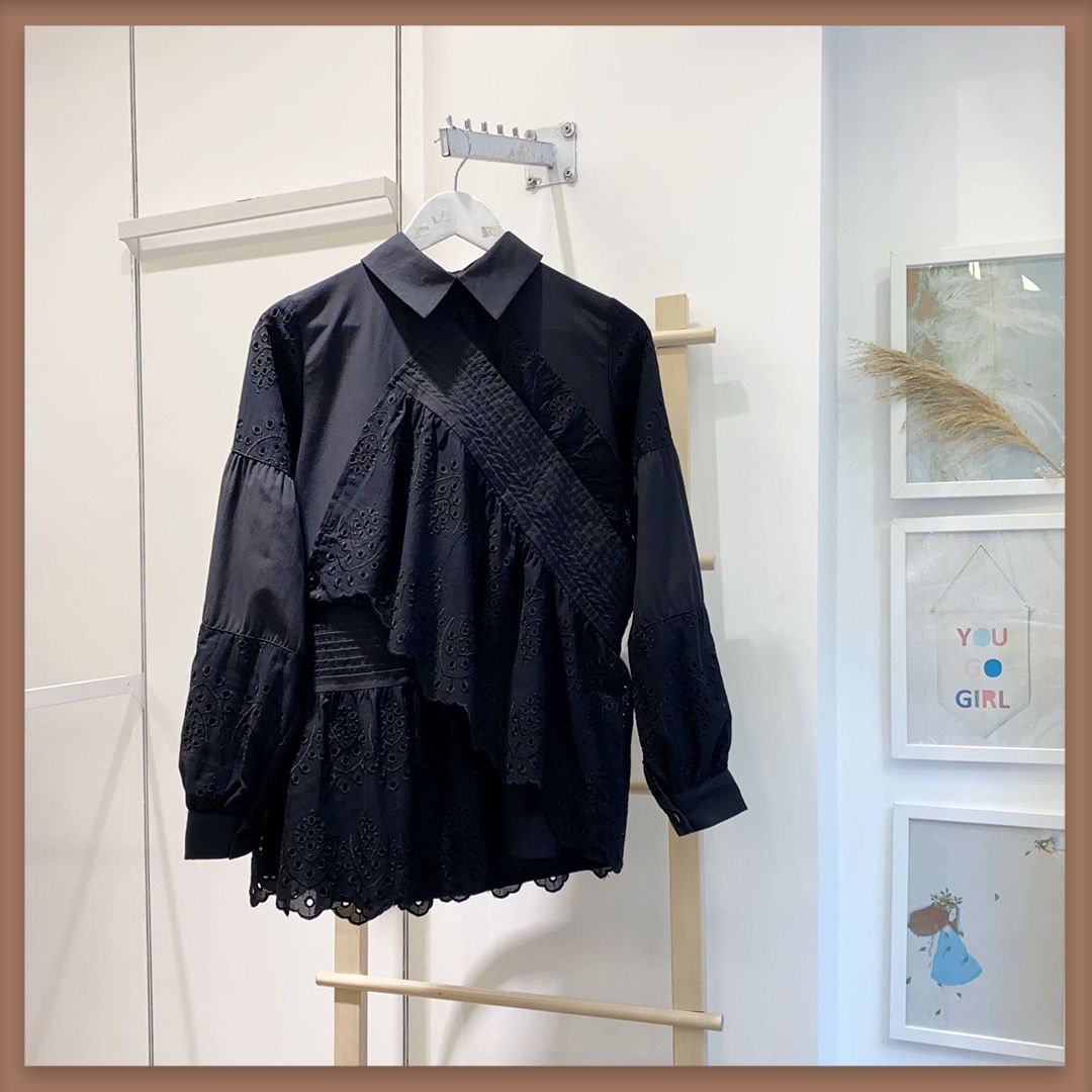 ASİMETRİK FİSTO DETAYLI SİYAH TUNİK