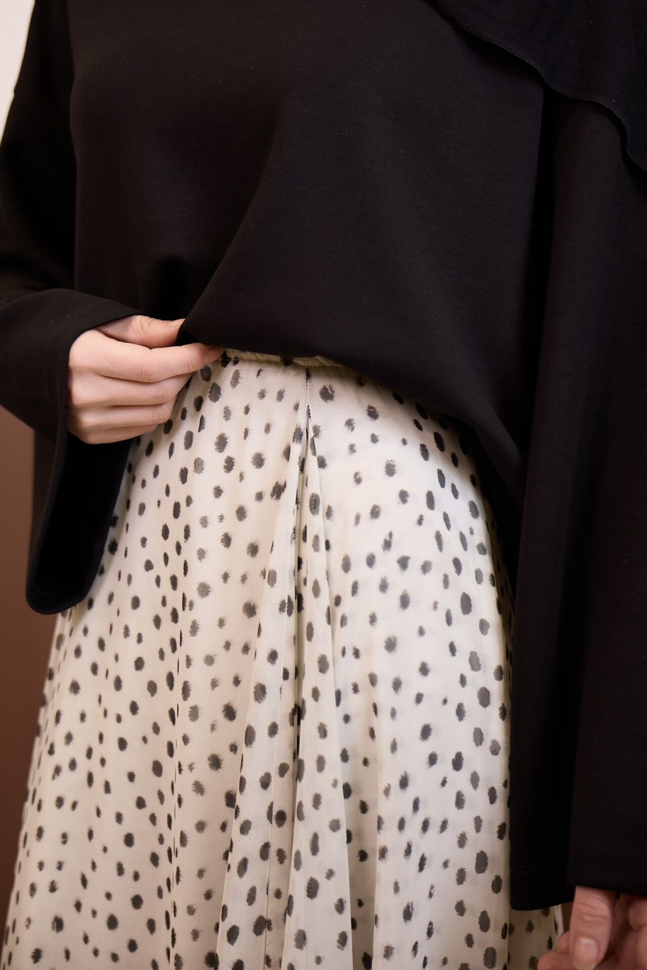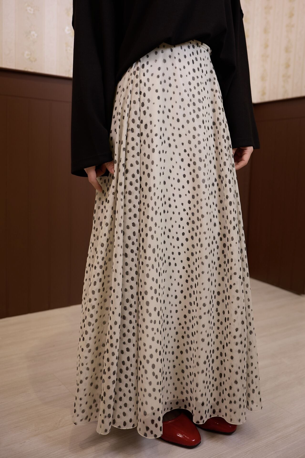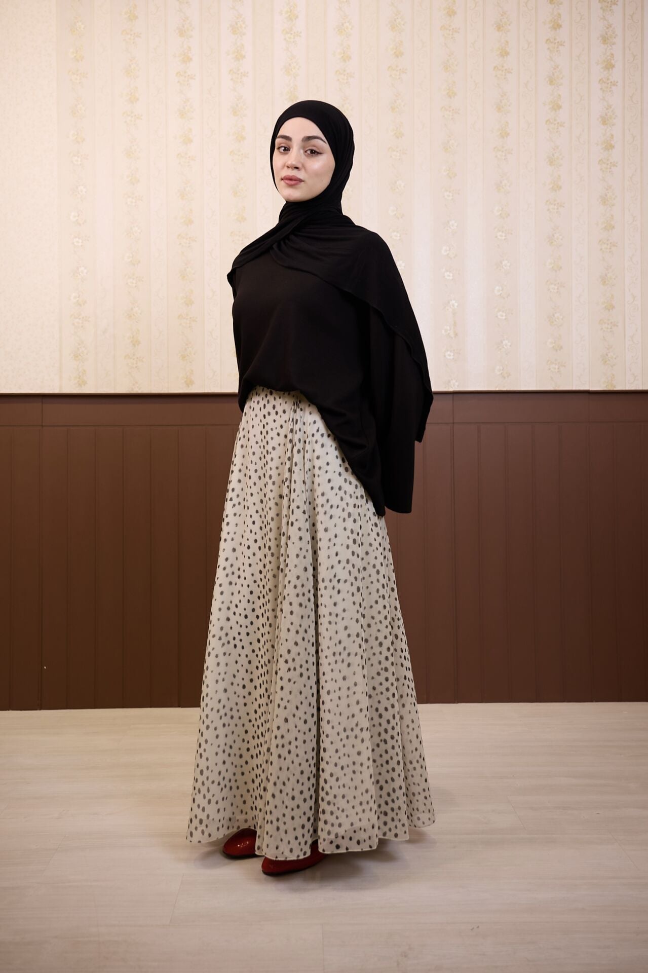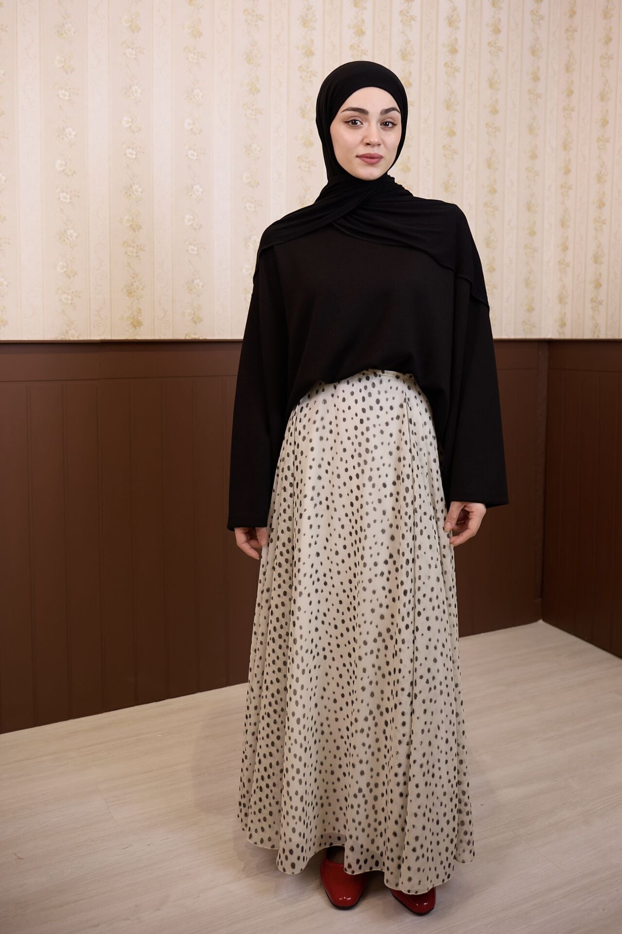 Bambi Desenli Ekru Şifon Etek