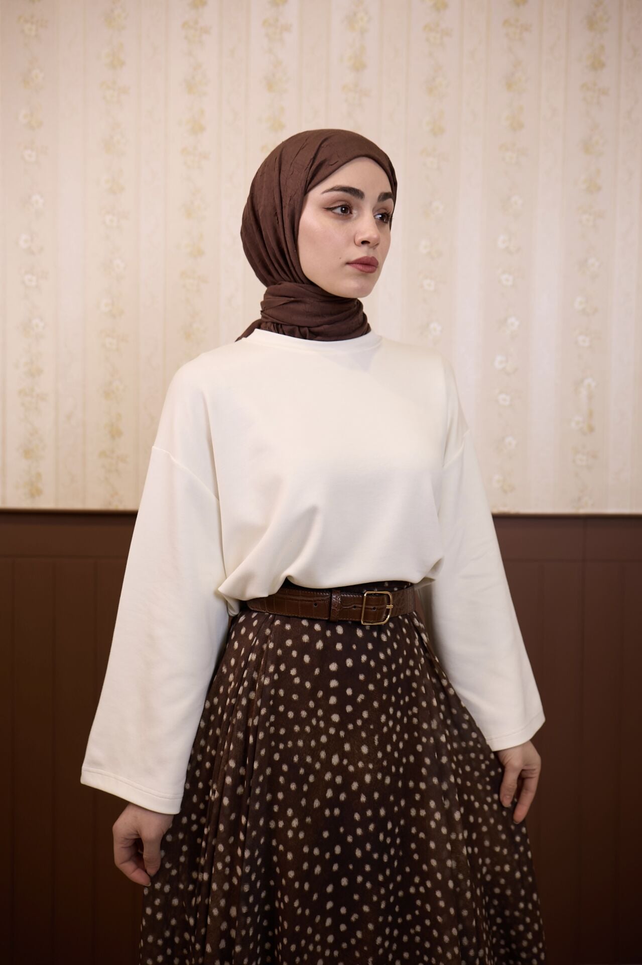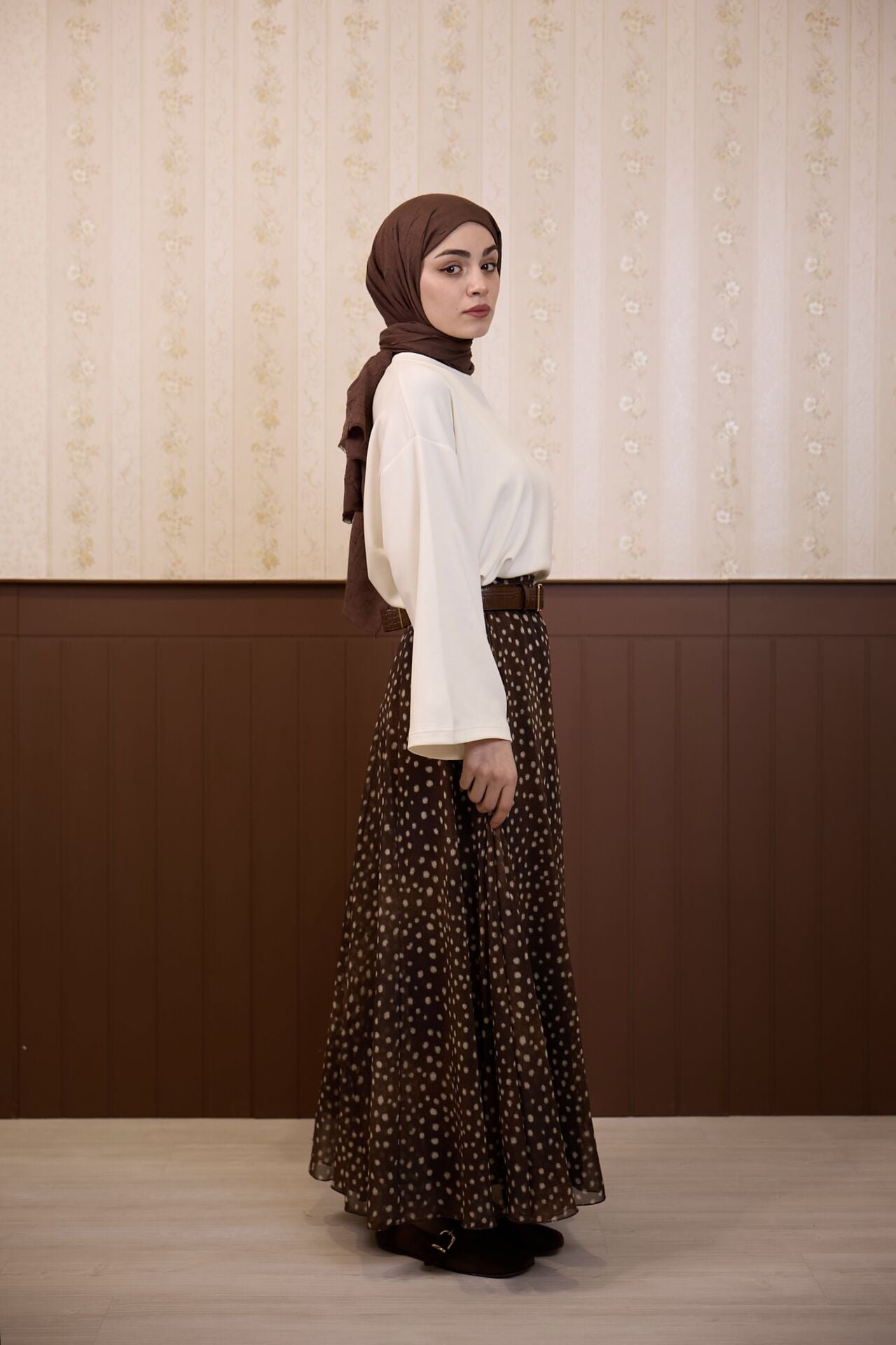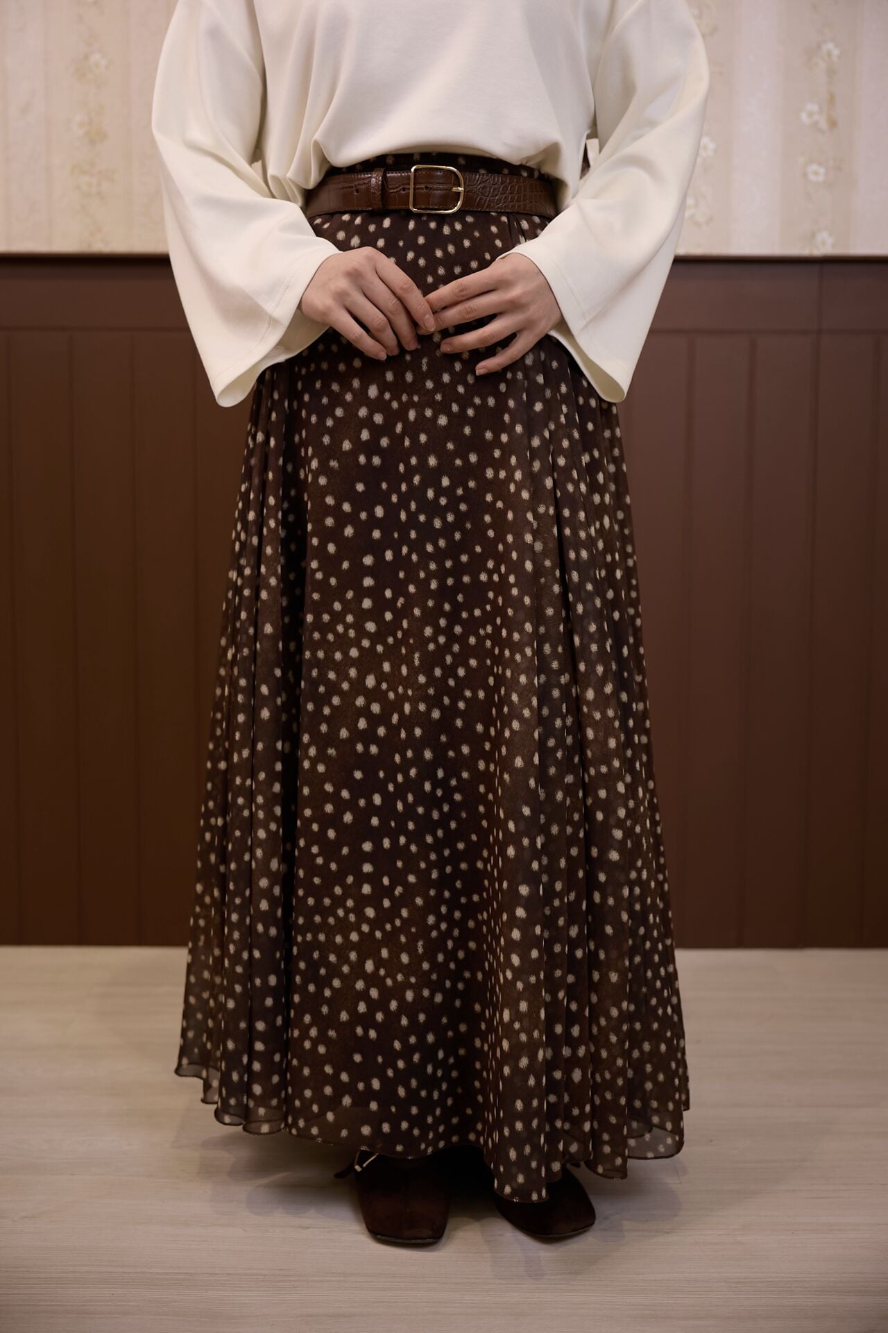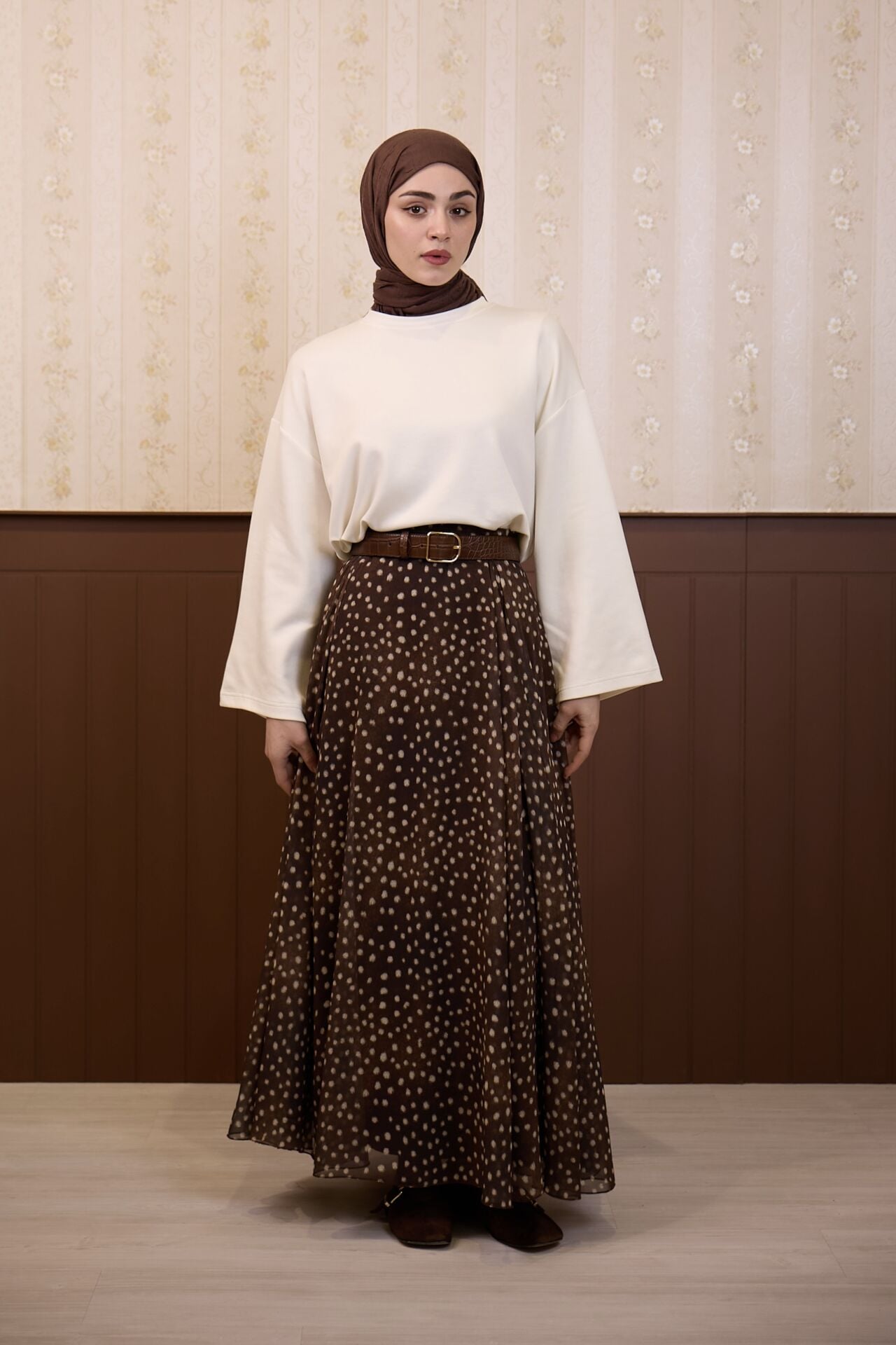 Bambi Desenli Kahverengi Şifon Etek