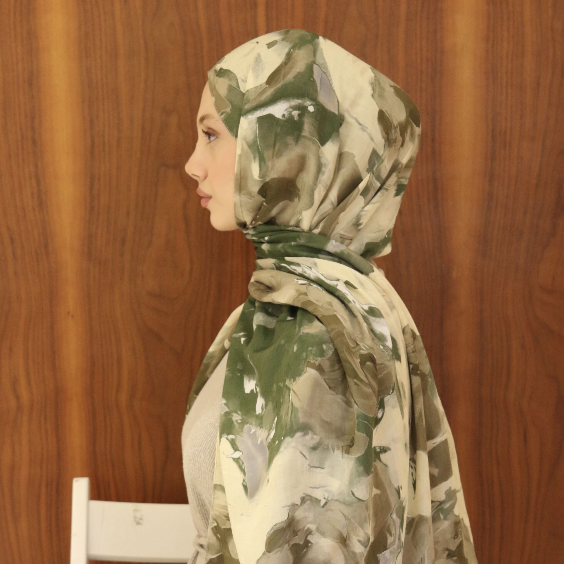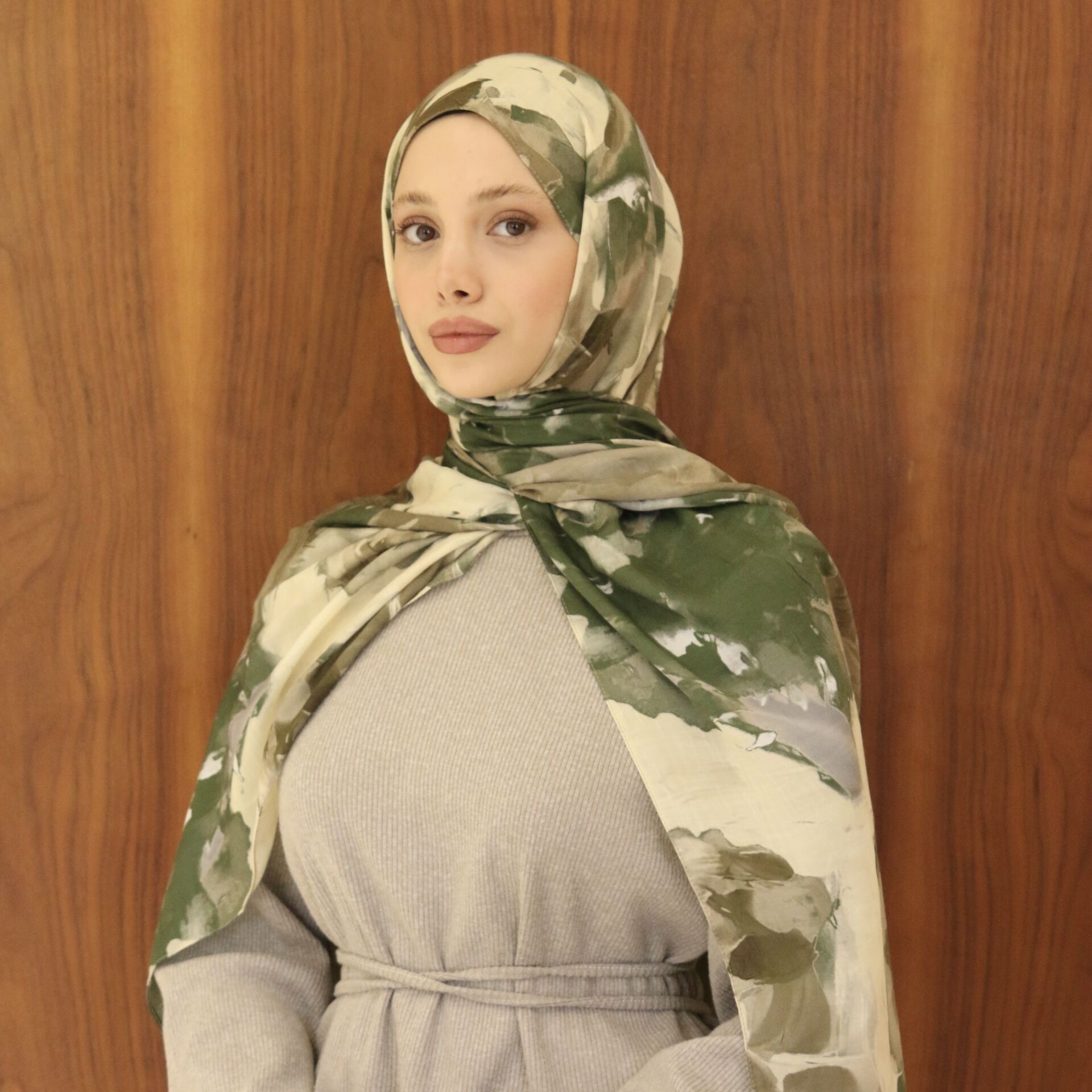 Bambu Kumaş Yeşil Desenli Şal