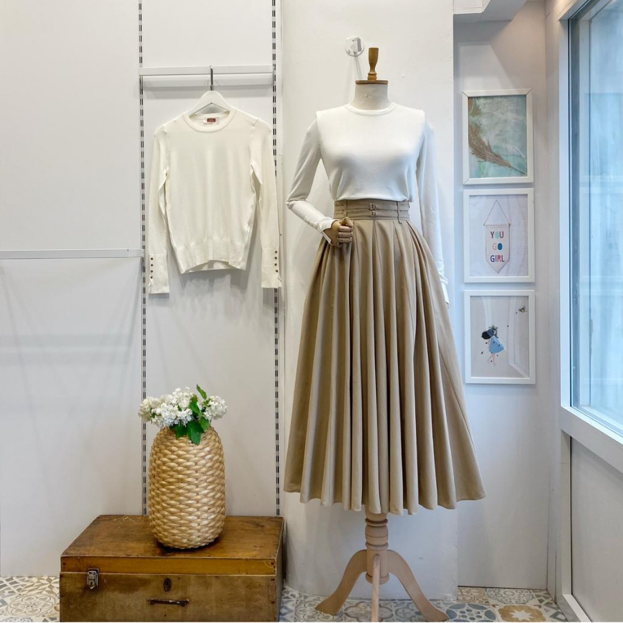 Bej İki Kemerli Fiorite Etek