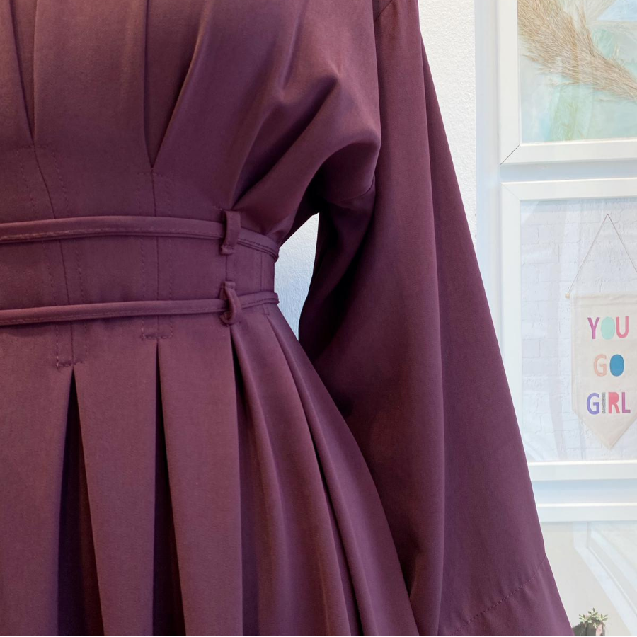 Bel Detaylı Bordo Alize Elbise