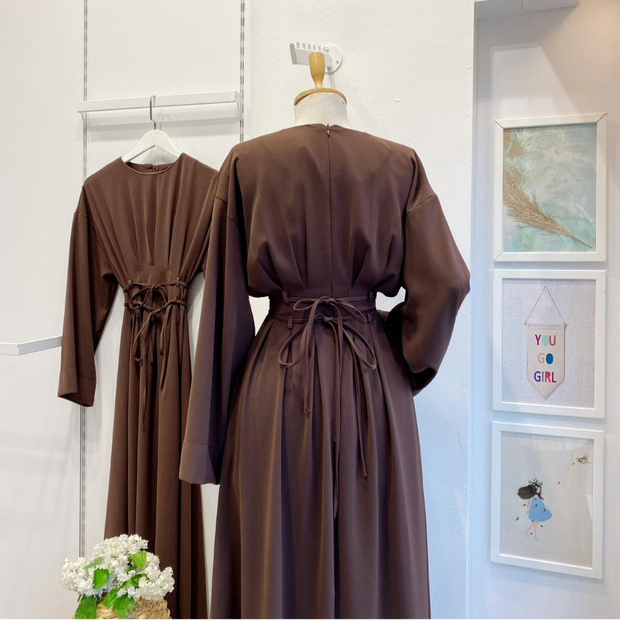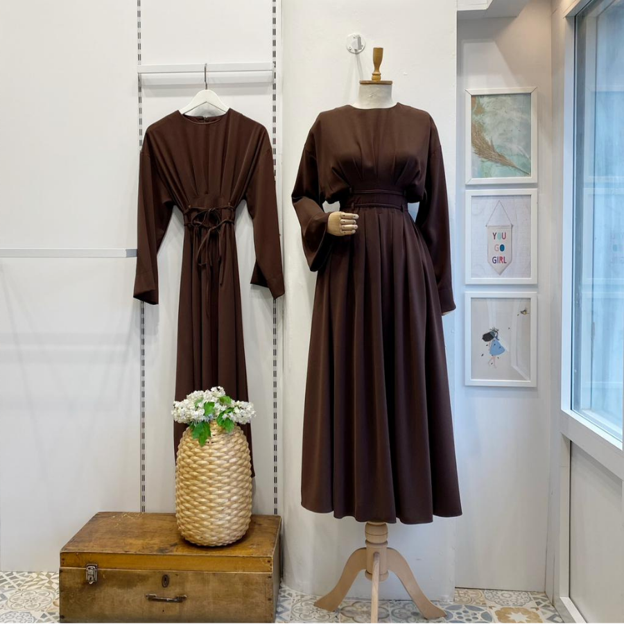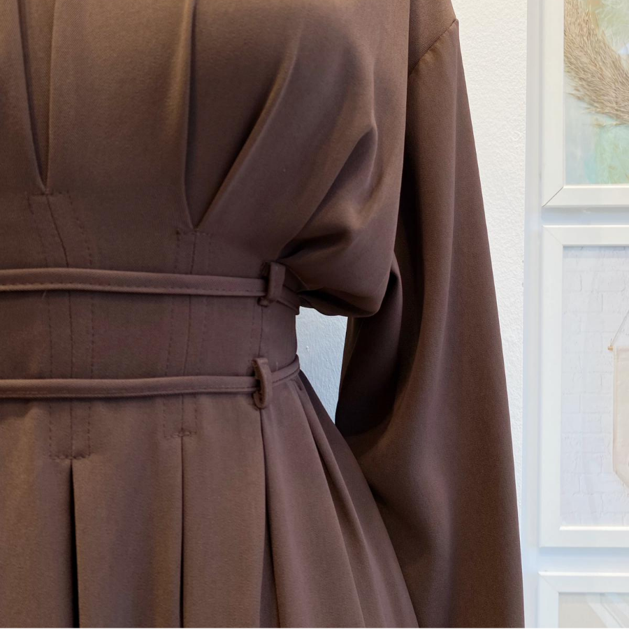 Bel Detaylı Kahverengi Alize Elbise