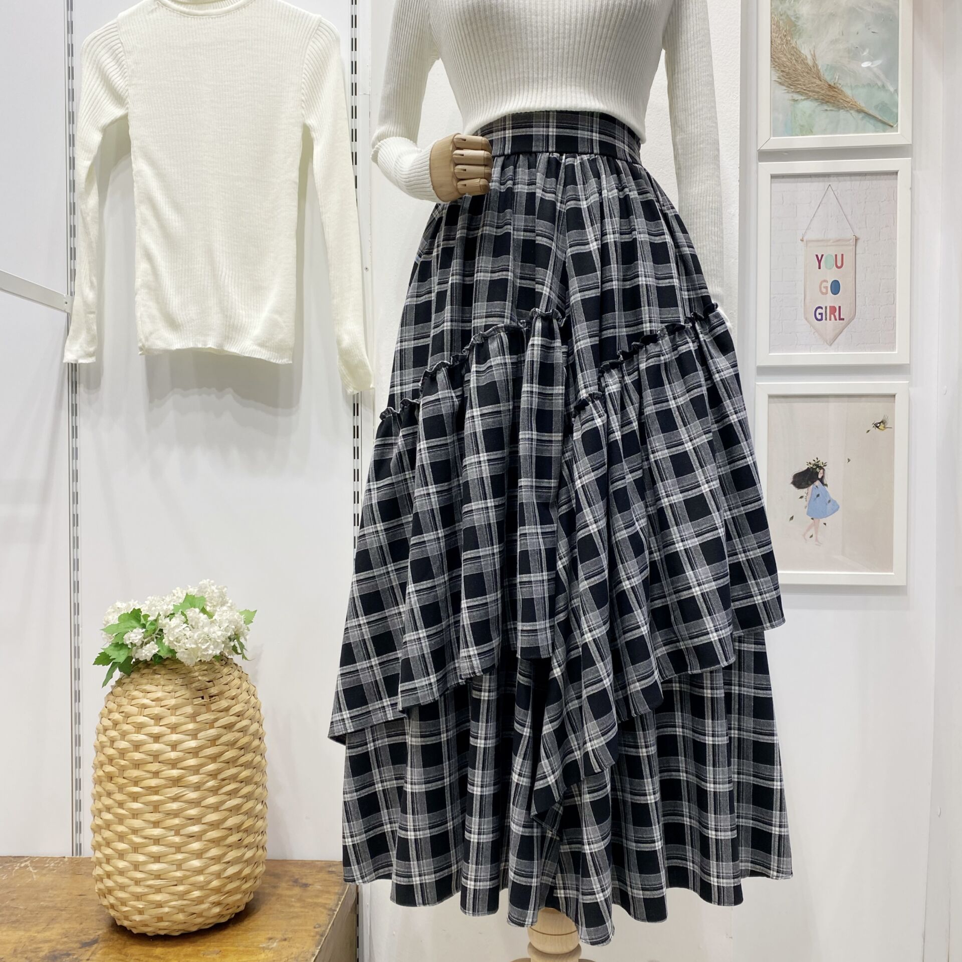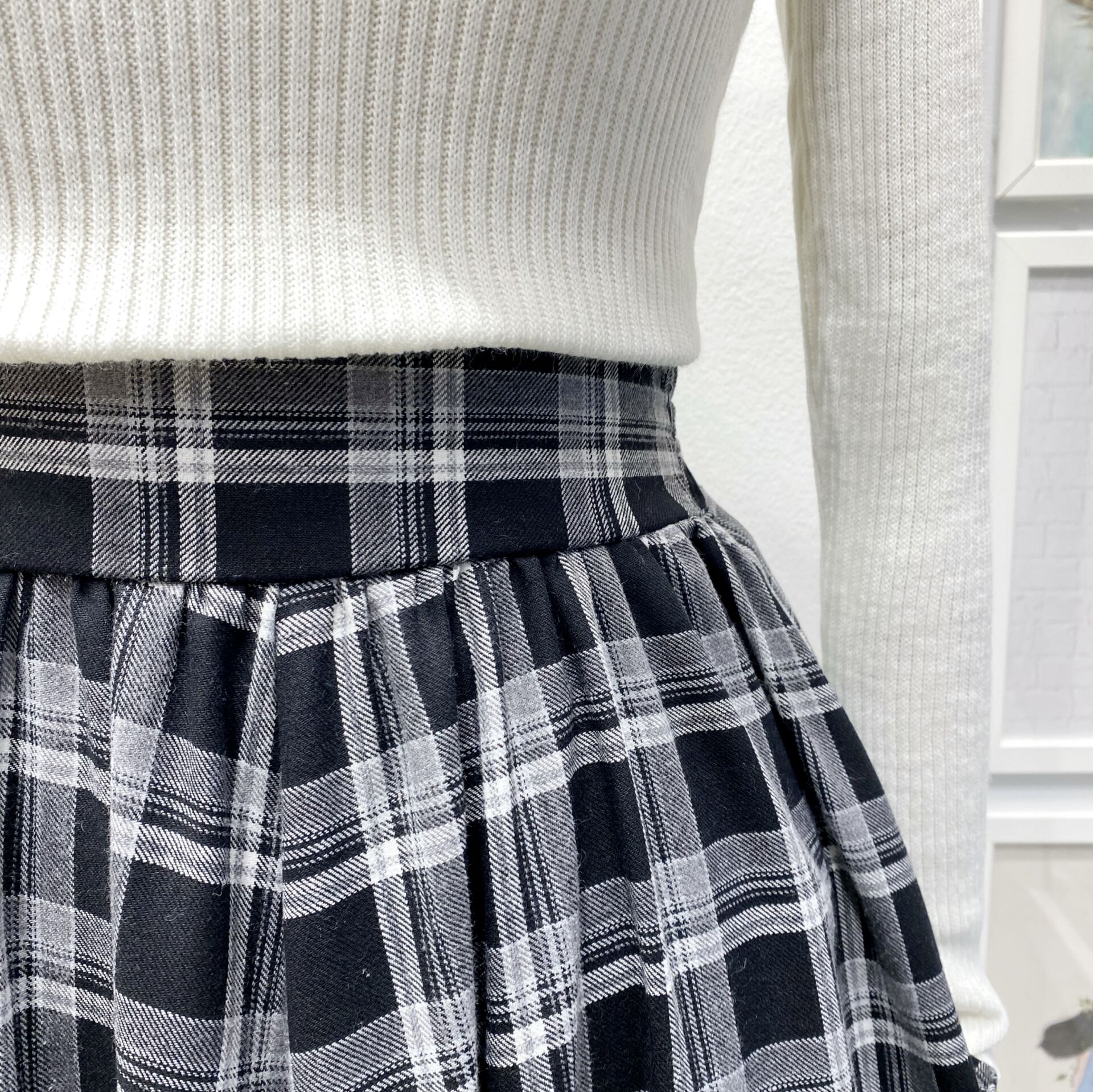 Beli Fermuarlı Ekose Desenli Siyah Ajouter Etek