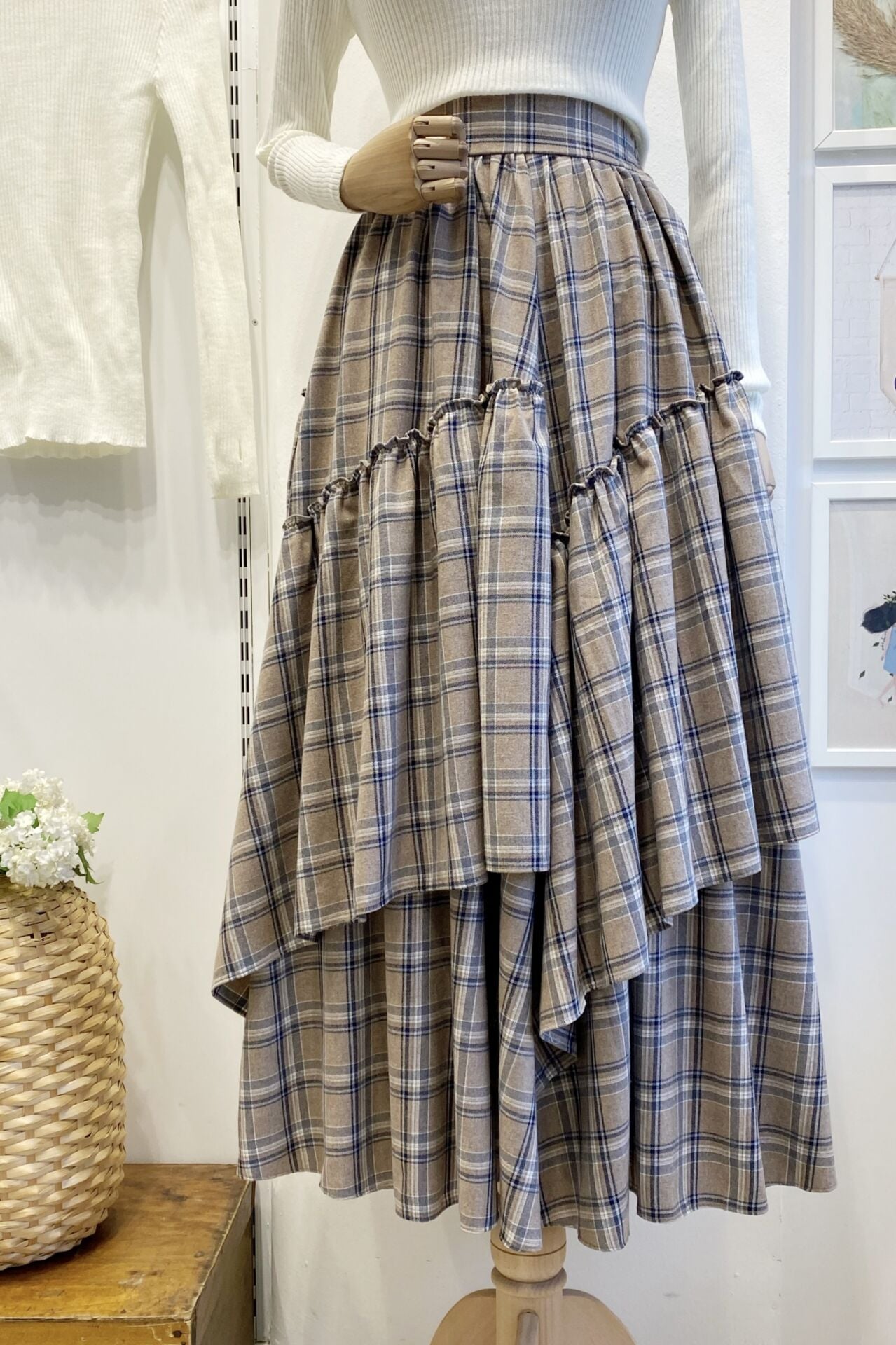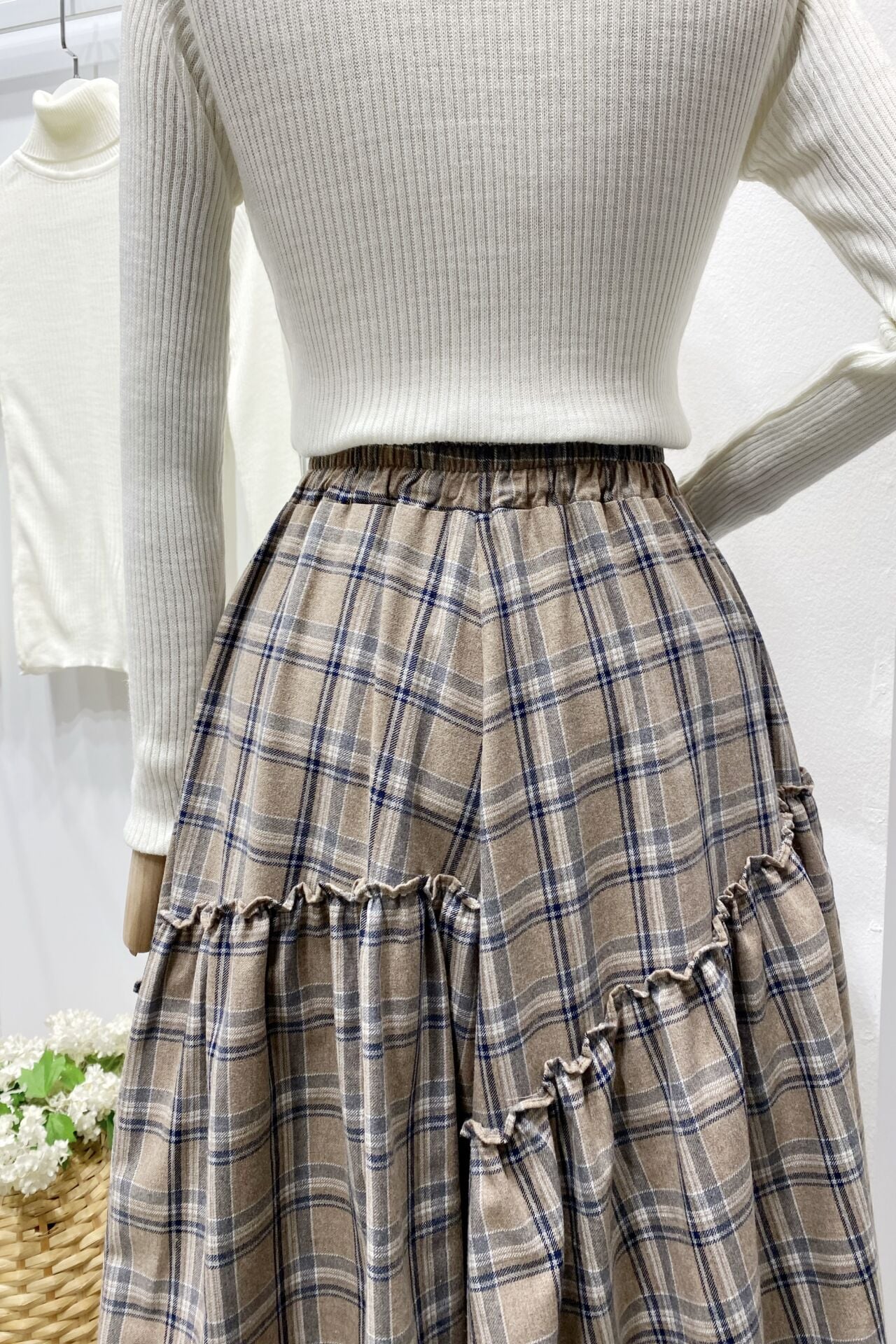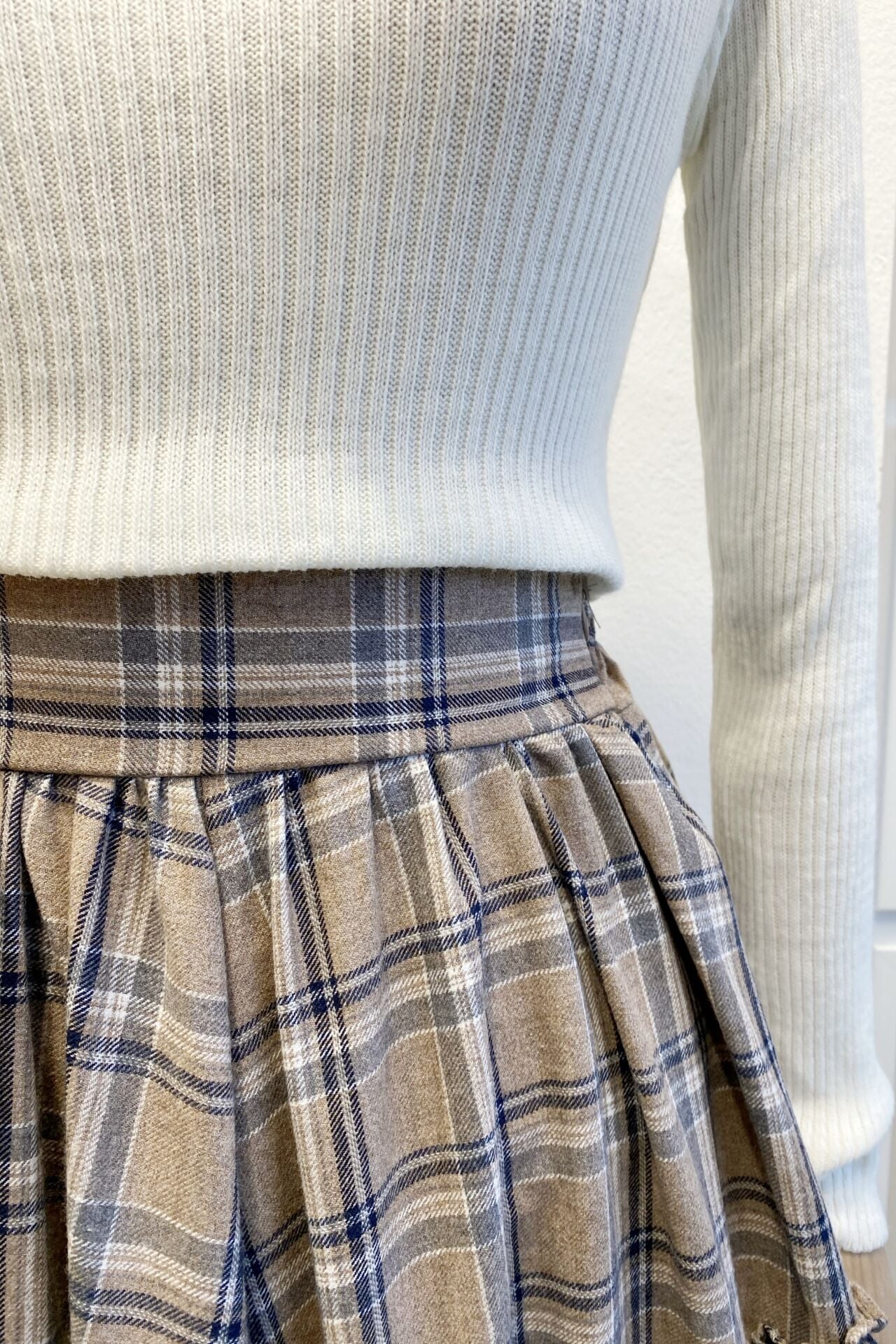 Beli Fermuarlı Ekose Desenli Vizon Ajouter Etek