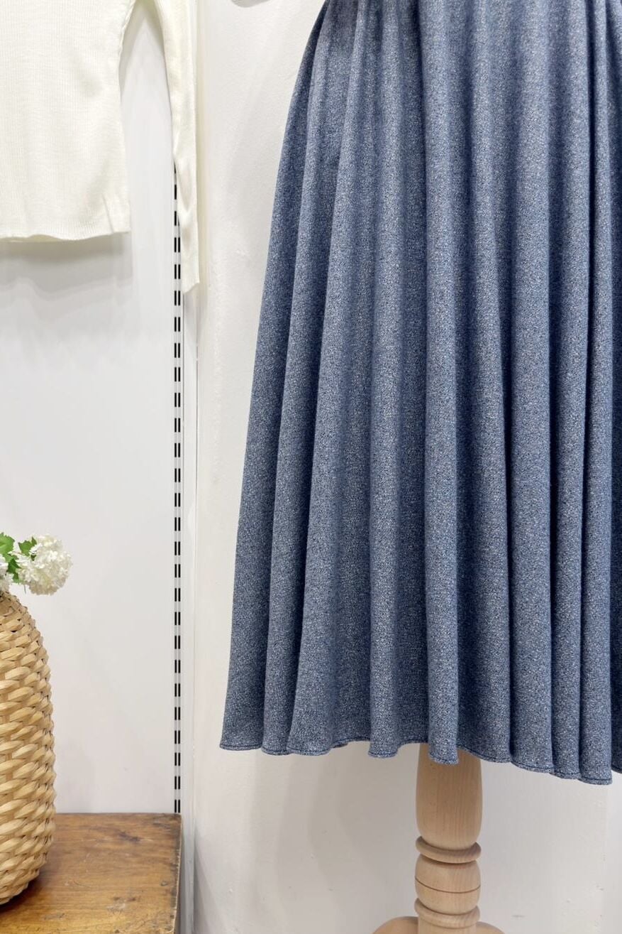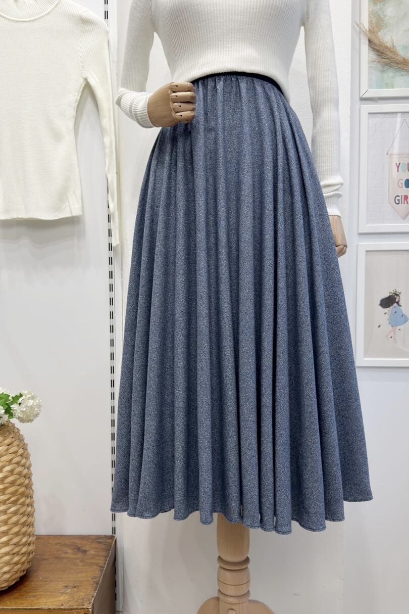 Beli Lastikli İndigo Mavi Melanj Desenli Kloş Etek