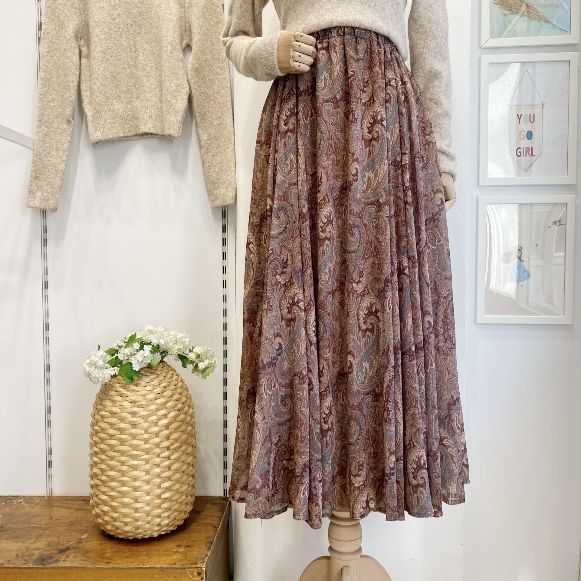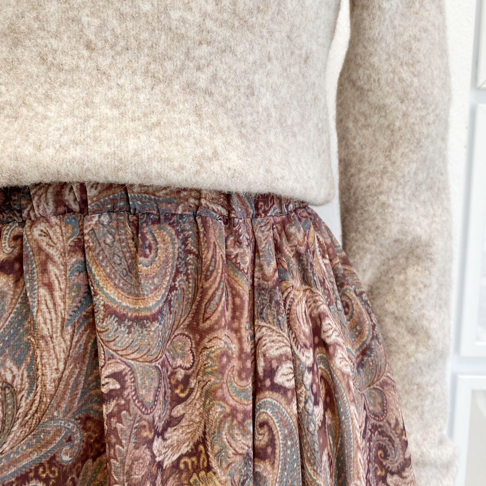 Beli Lastikli Kahverengi Şal Desen Şifon Etek