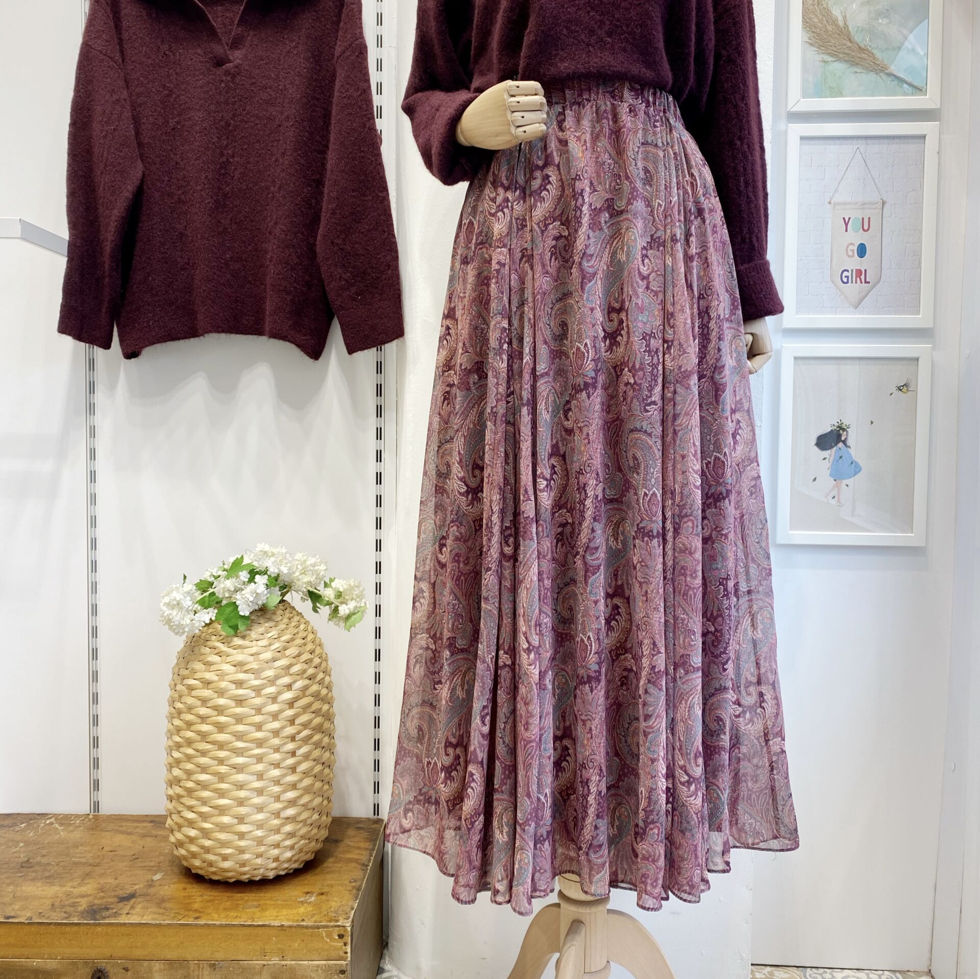 Beli Lastikli Mürdüm Şal Desen Şifon Etek