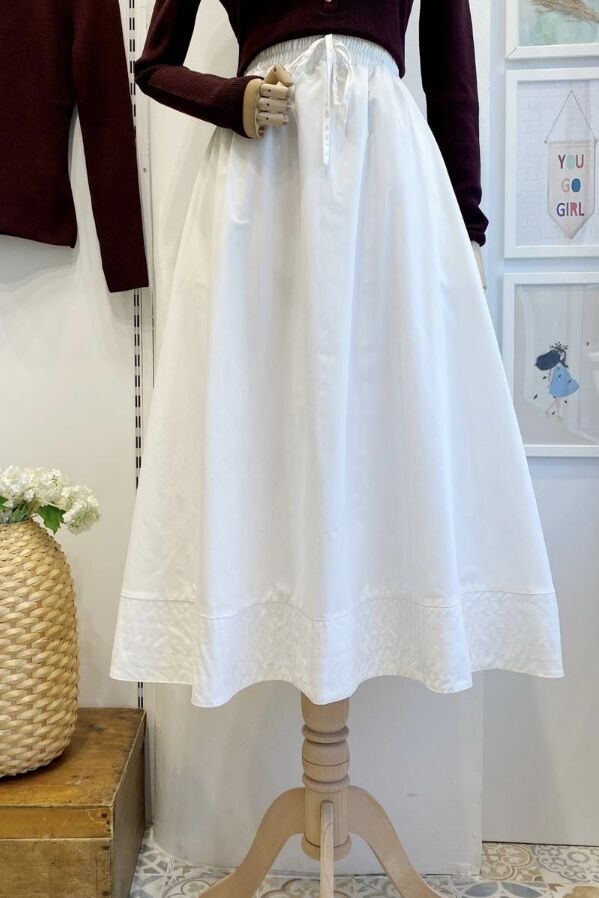 Beyaz Beli Lastikli Zeran Etek