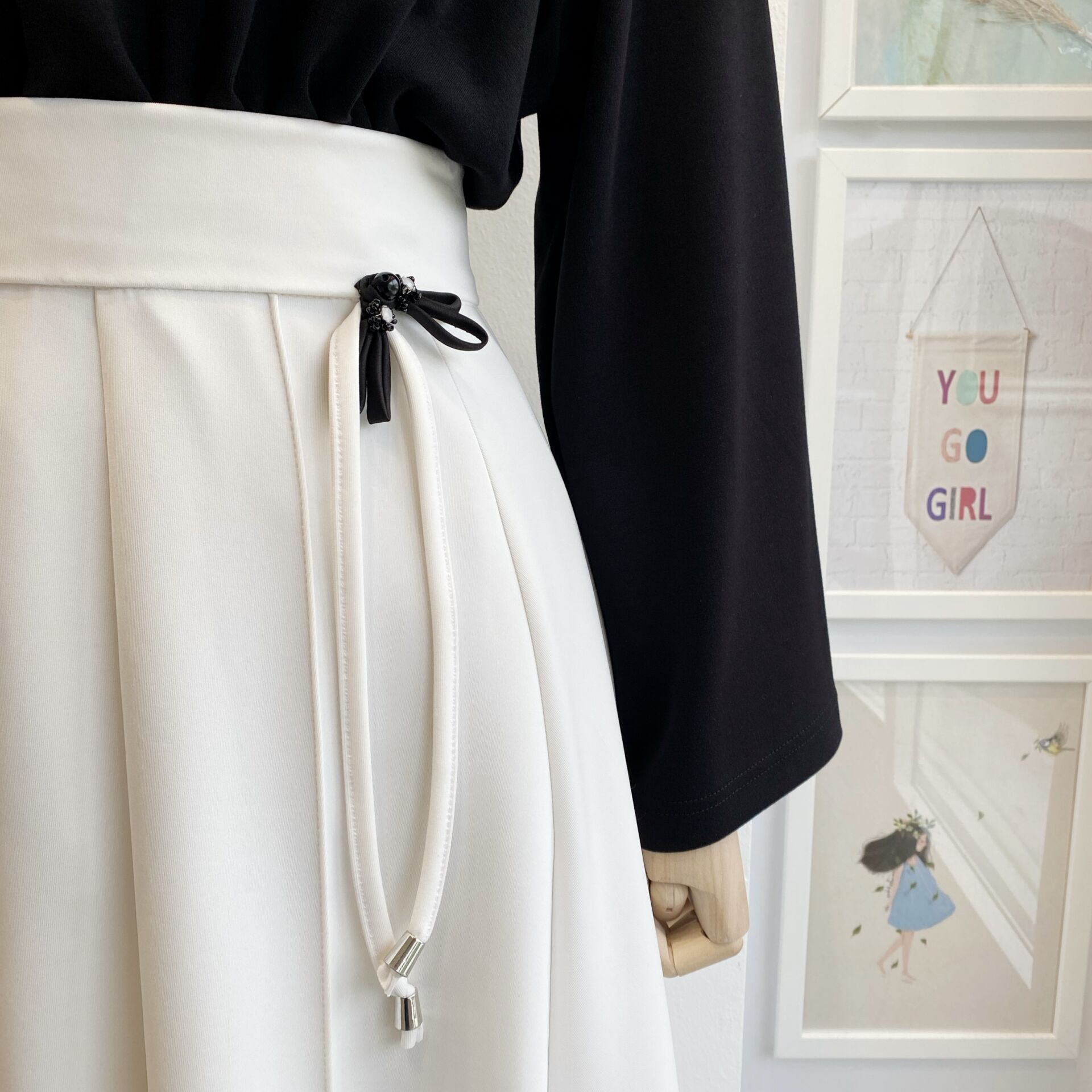 Beyaz Broşlu Scuba Etek