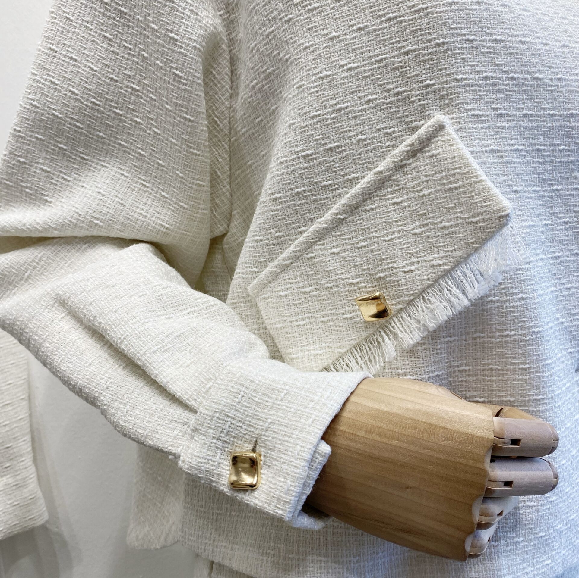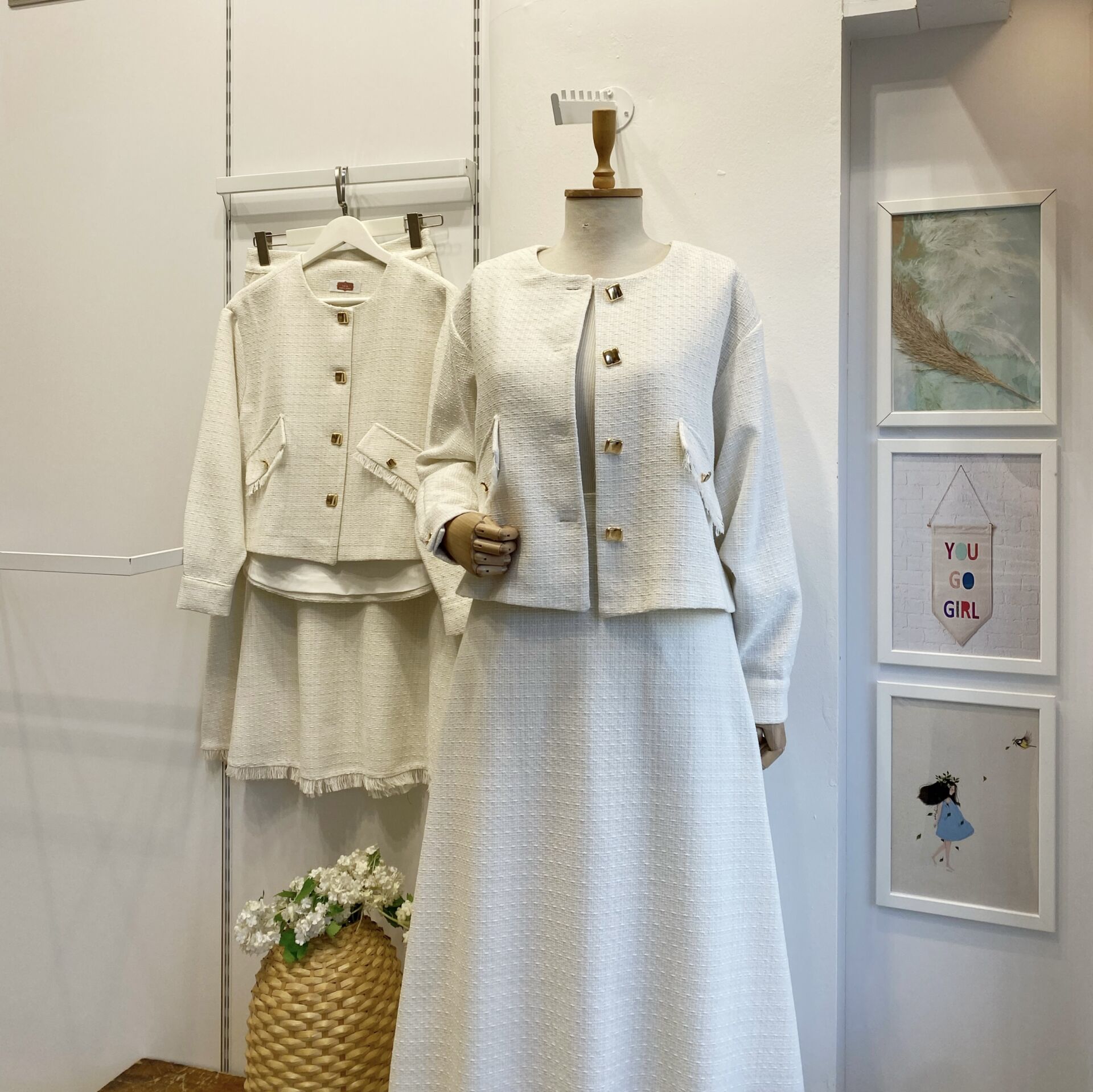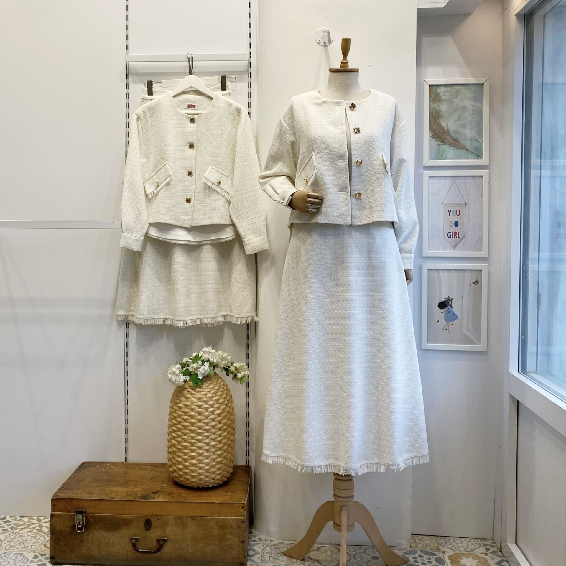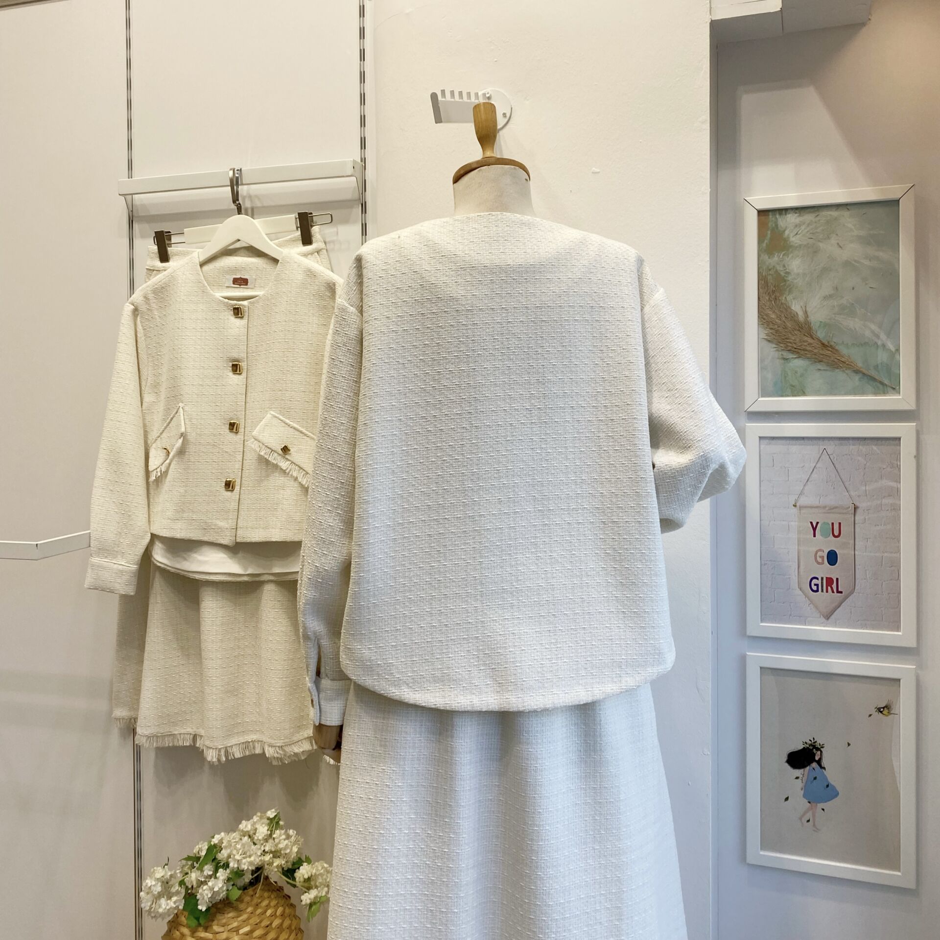 Beyaz Cep Detaylı Ceketli Tüvit Takım