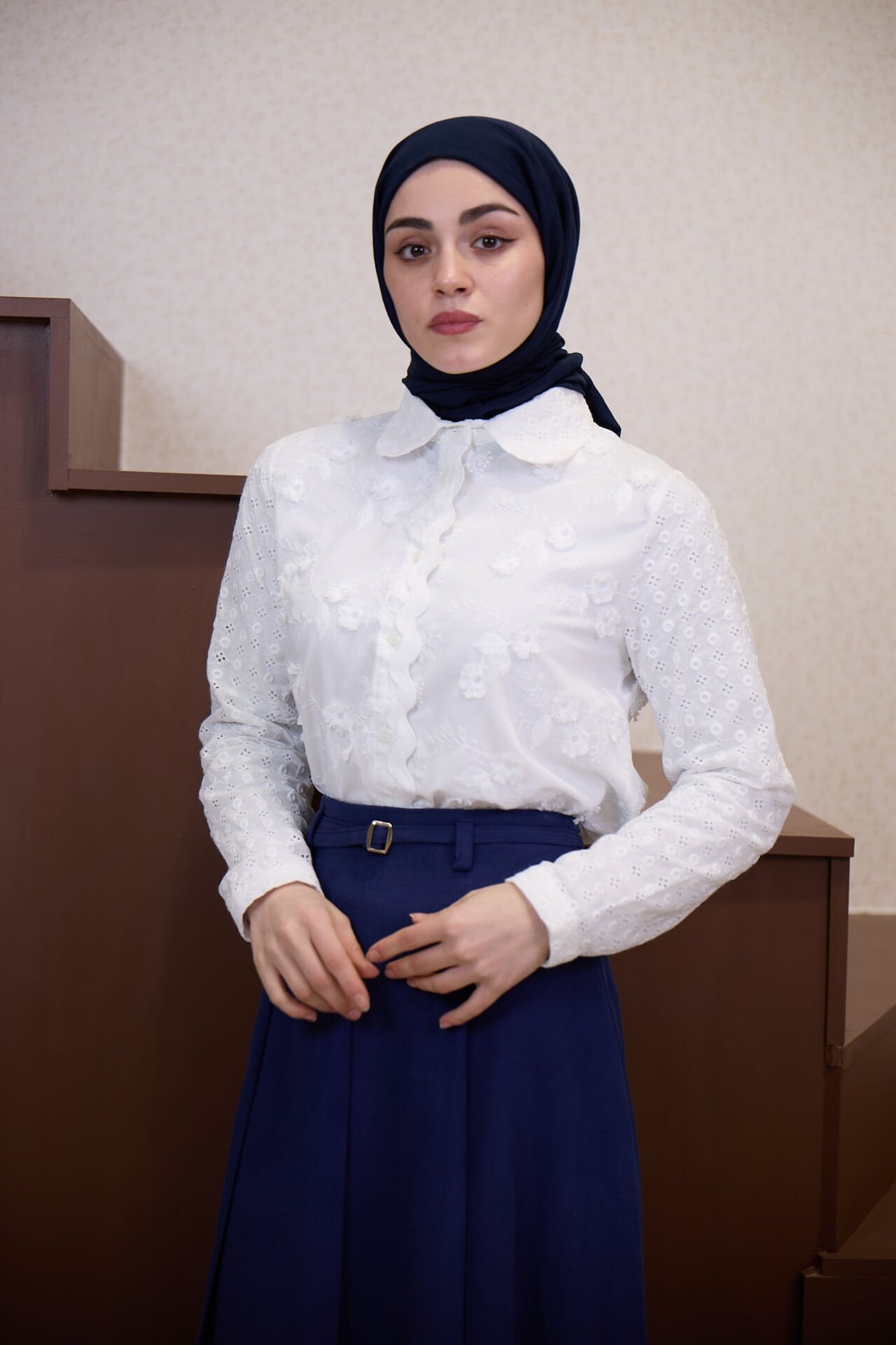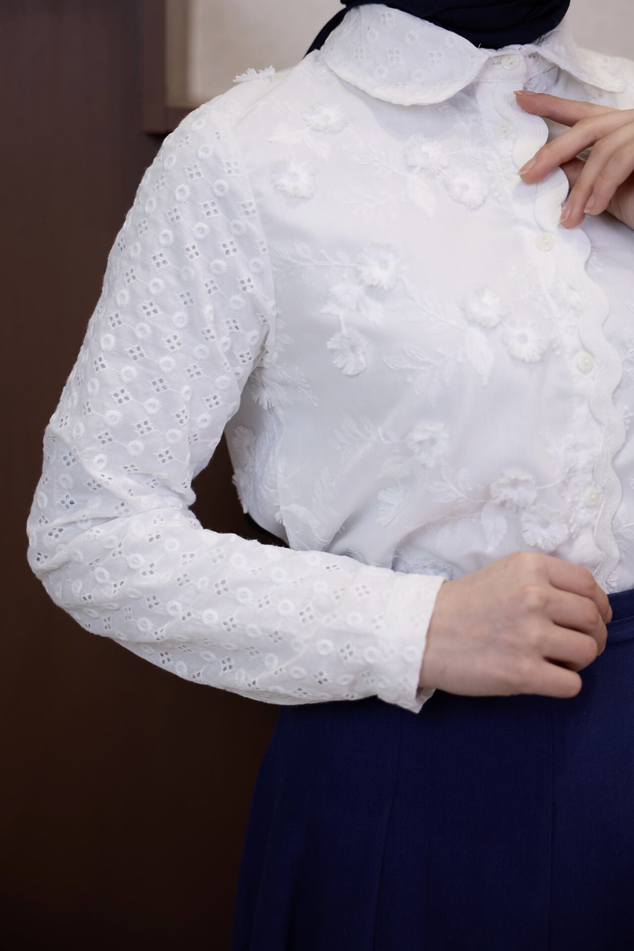 Beyaz Çiçek Nakışlı Flowers Gömlek