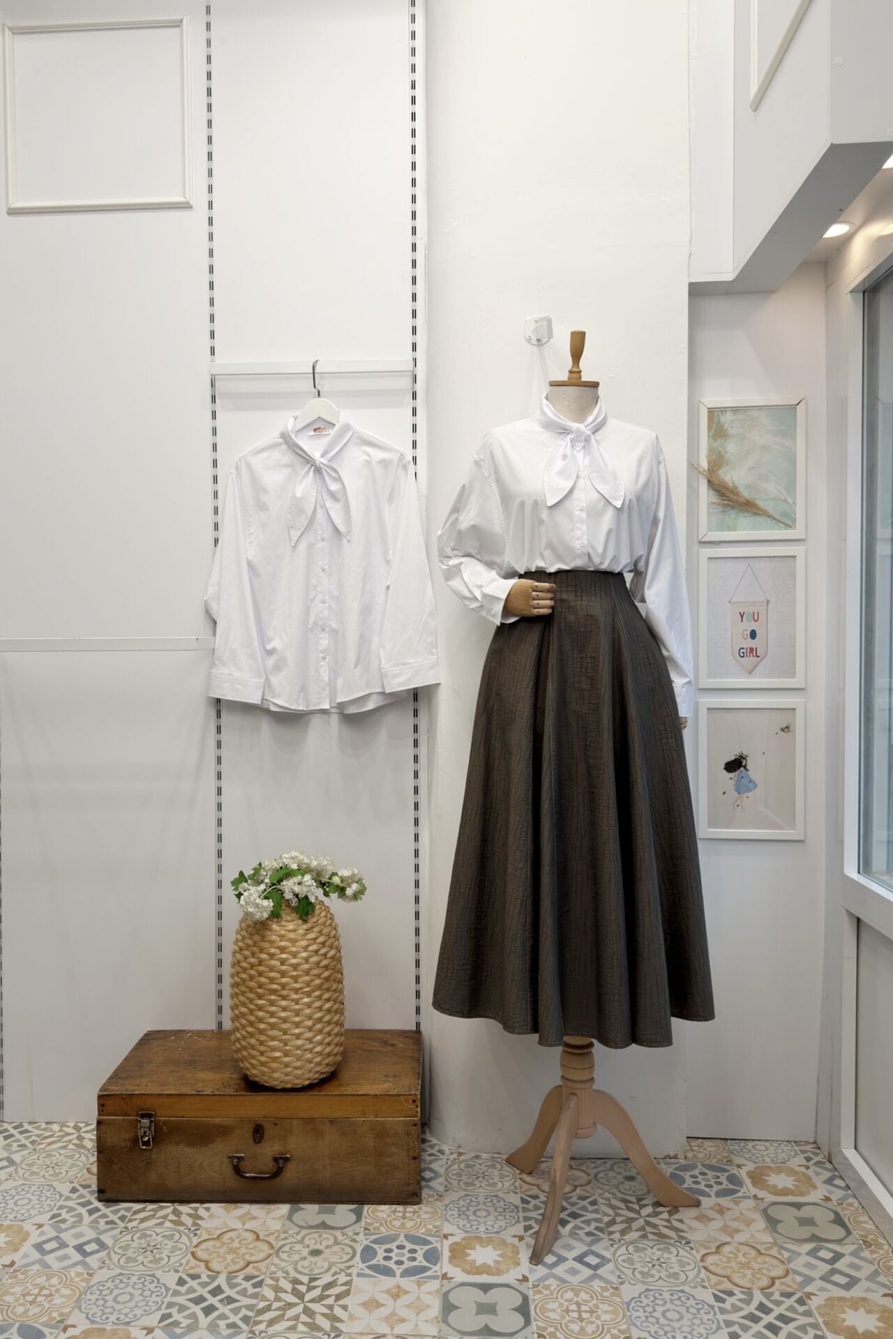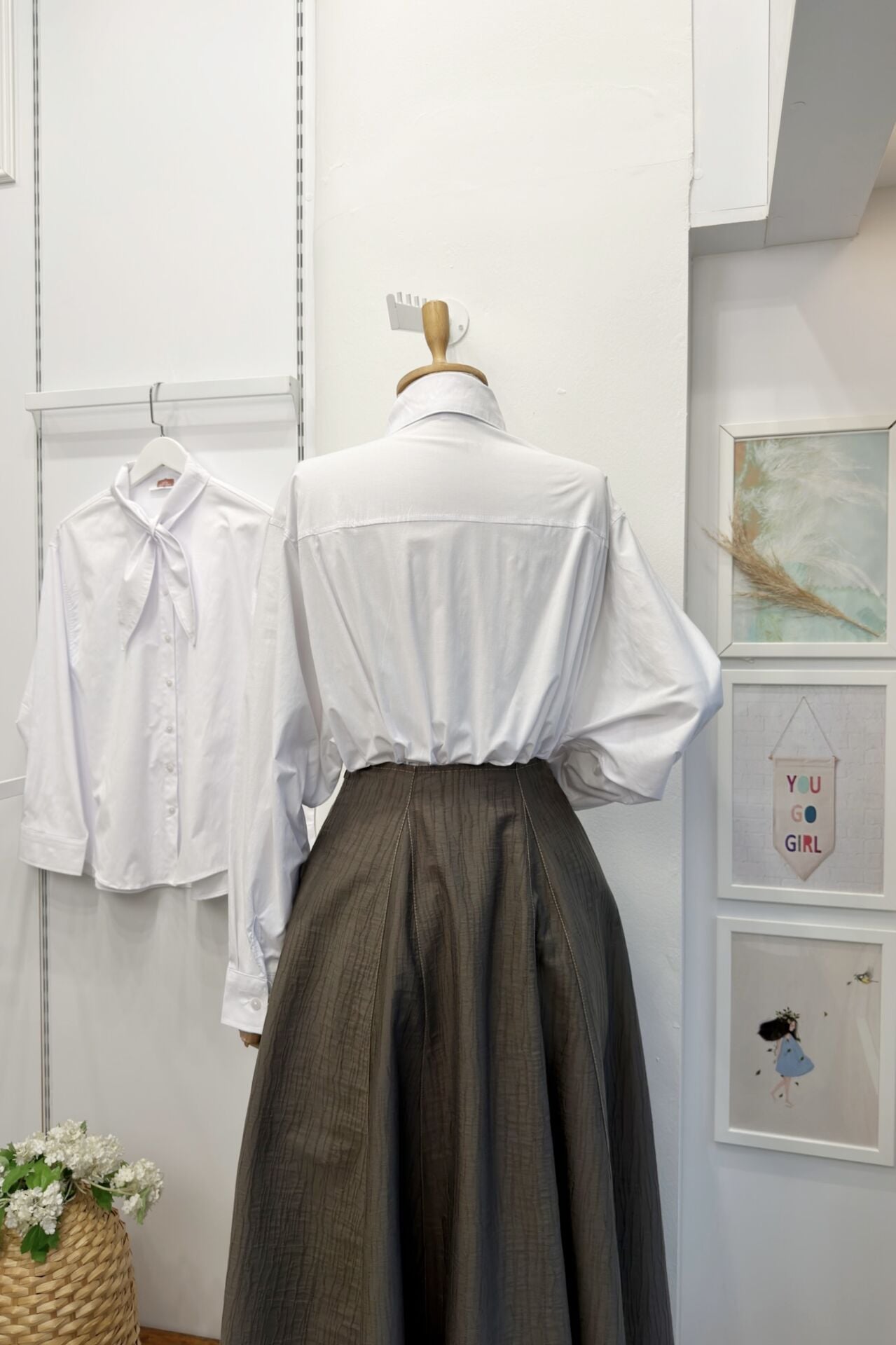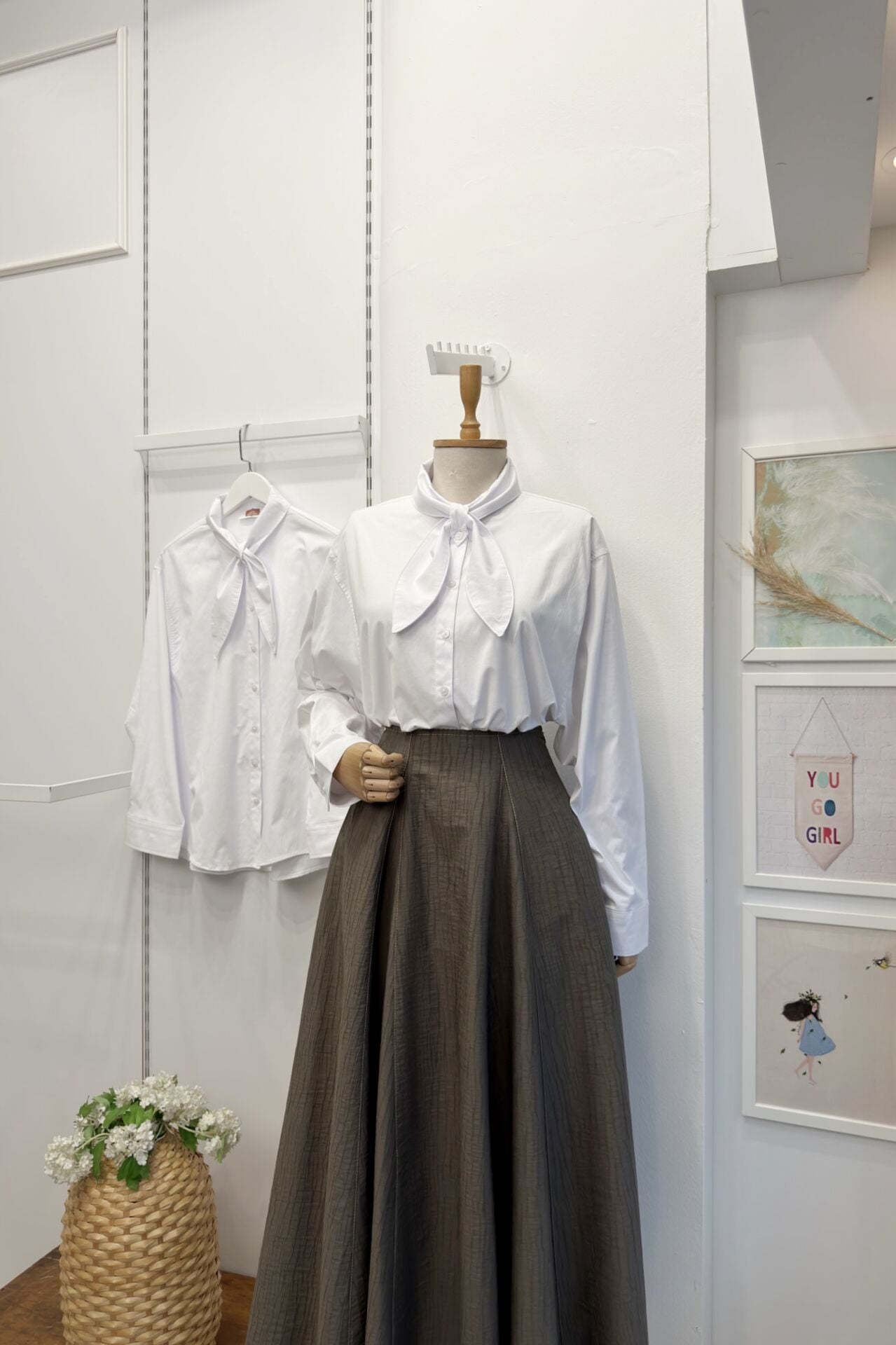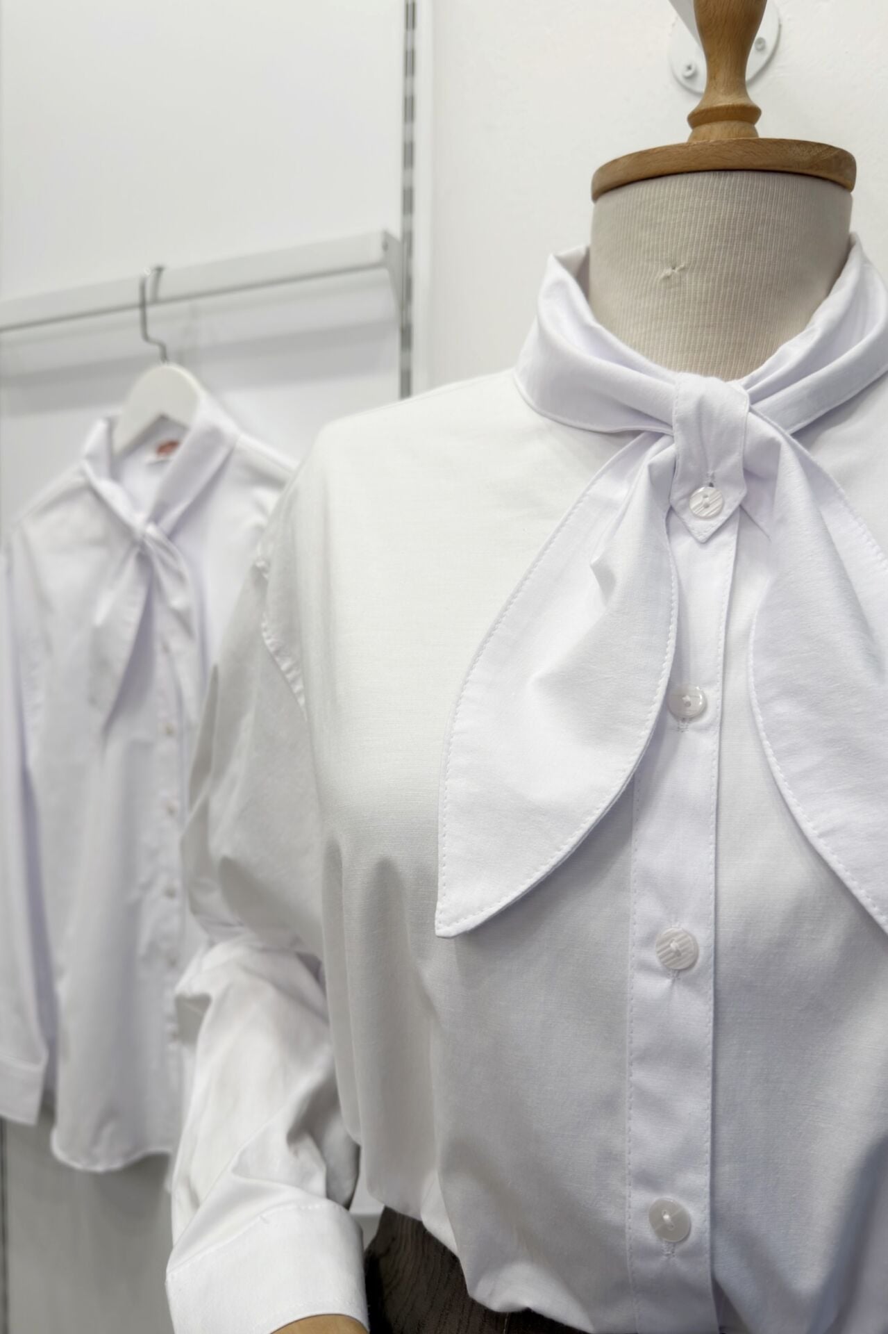 Beyaz Fular Detaylı Poplin Gömlek