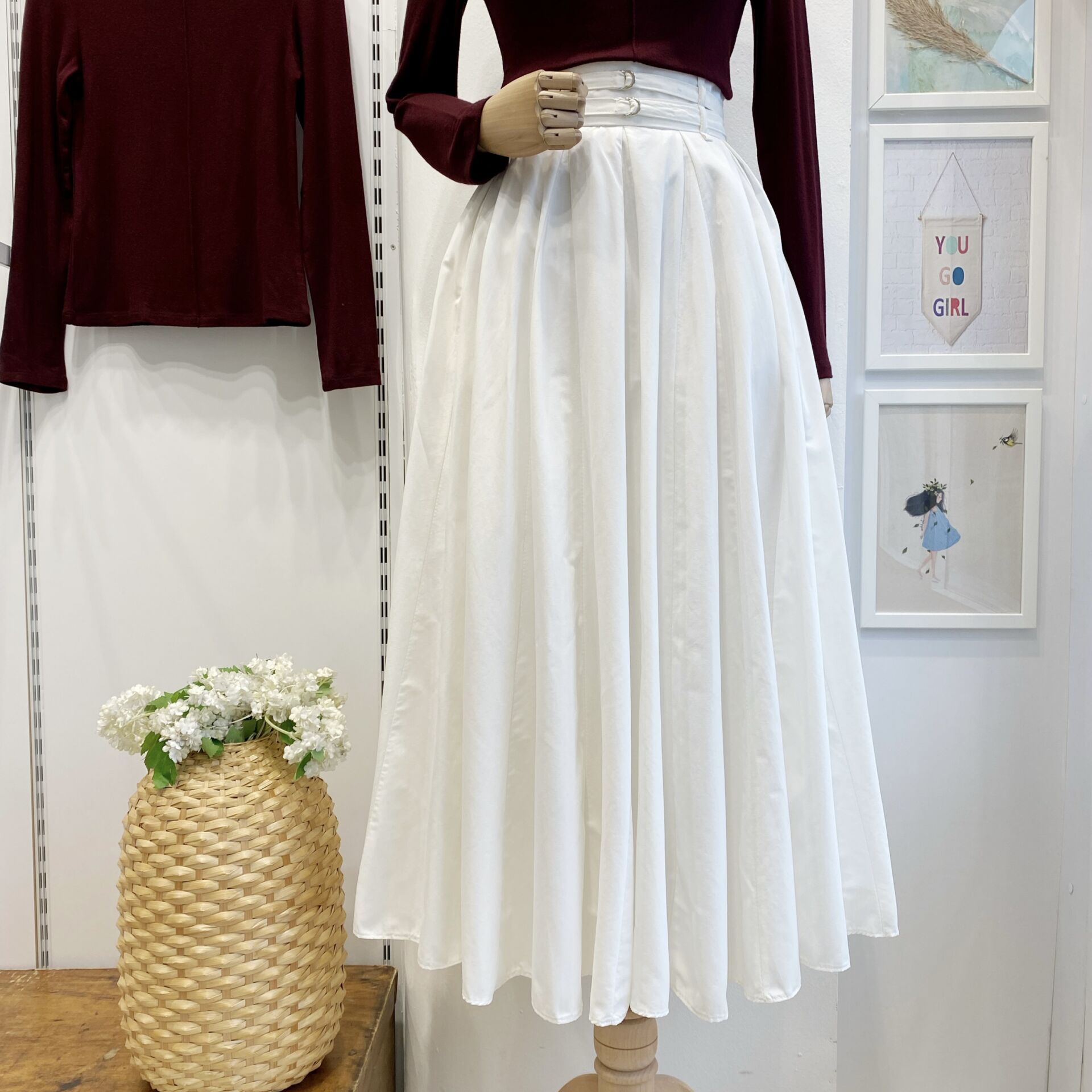 Beyaz İki Kemerli Fiorita Poplin Etek
