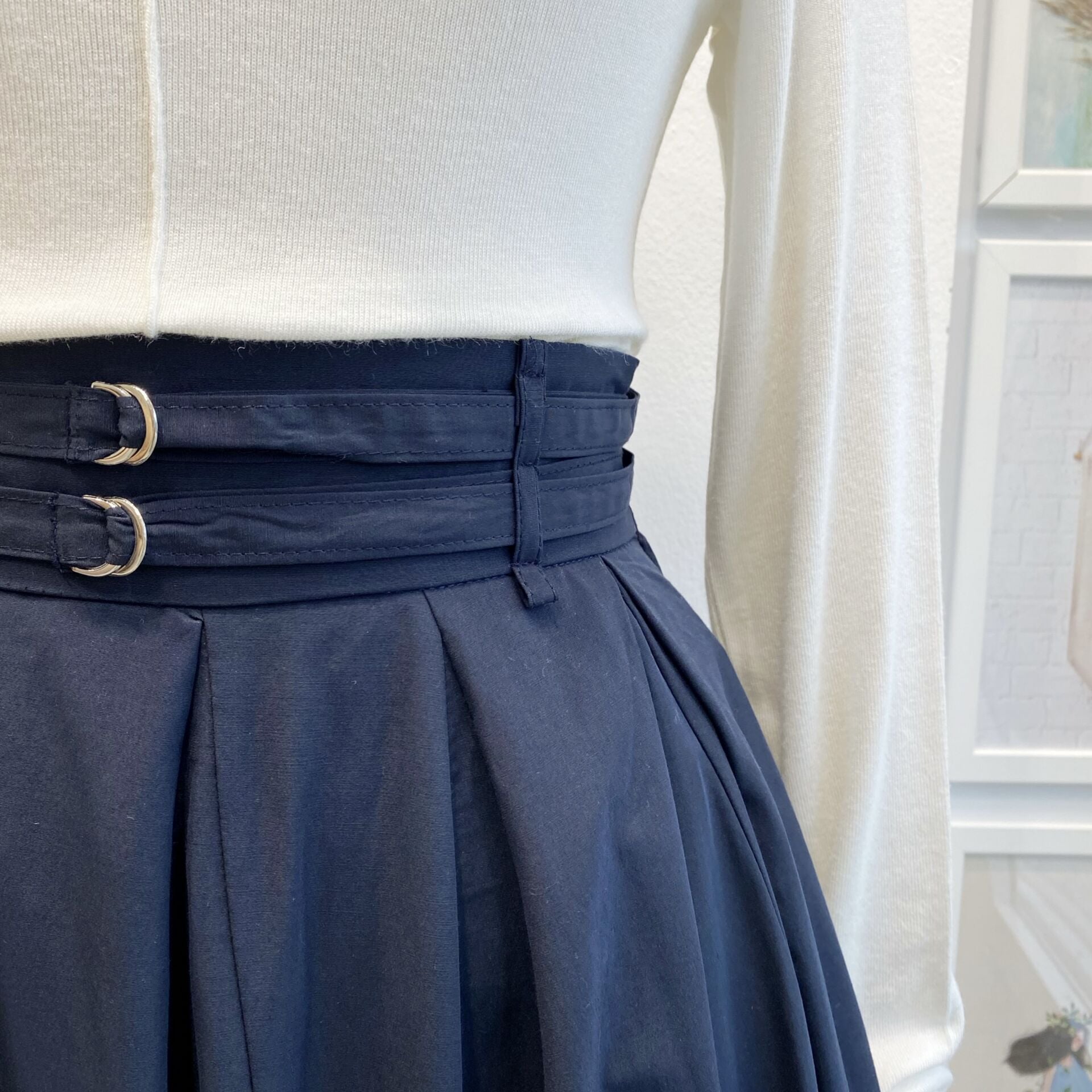 Lacivert İki Kemerli Fiorite Etek
