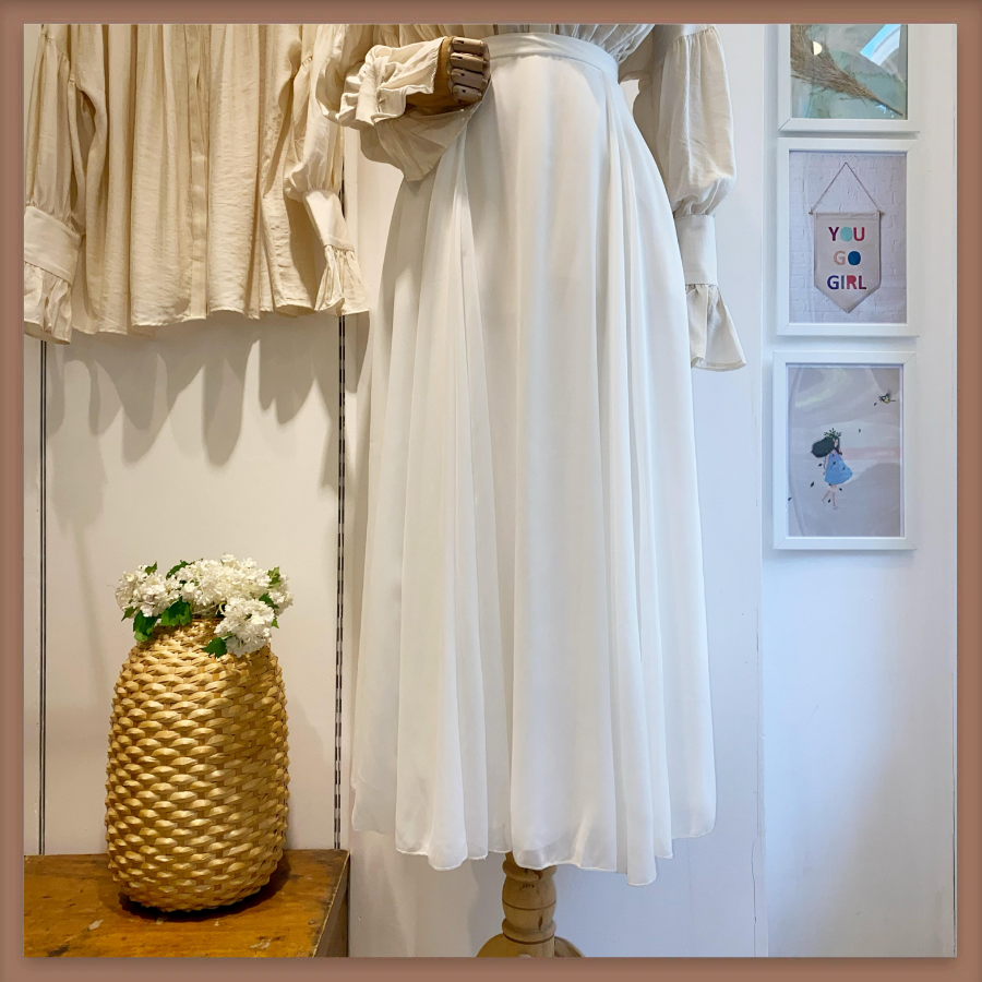 Beyaz İki Pileli Şifon Etek