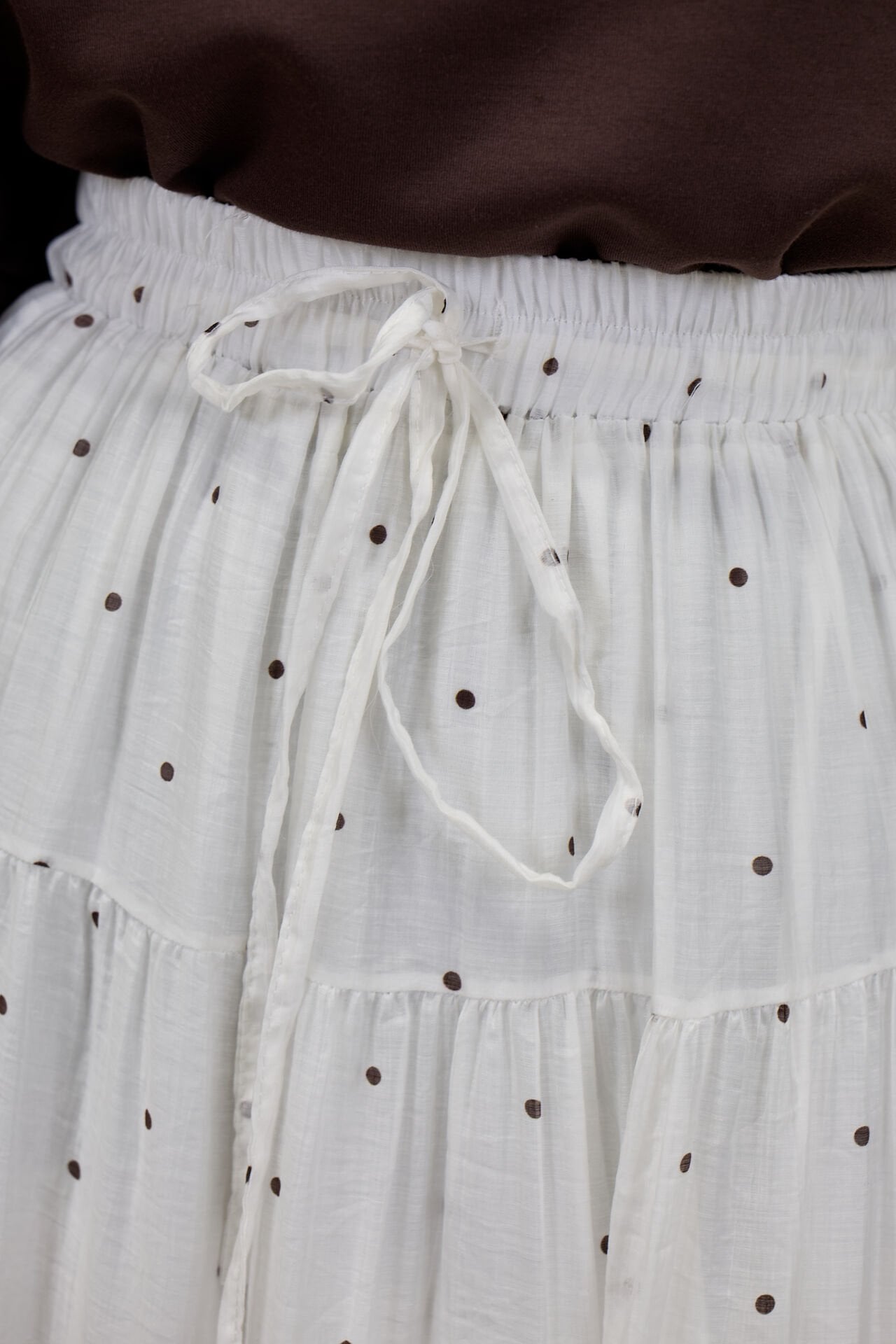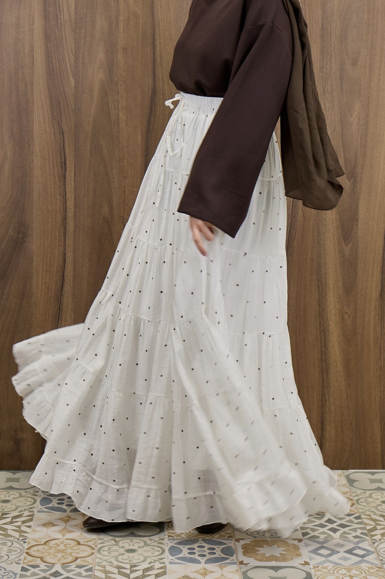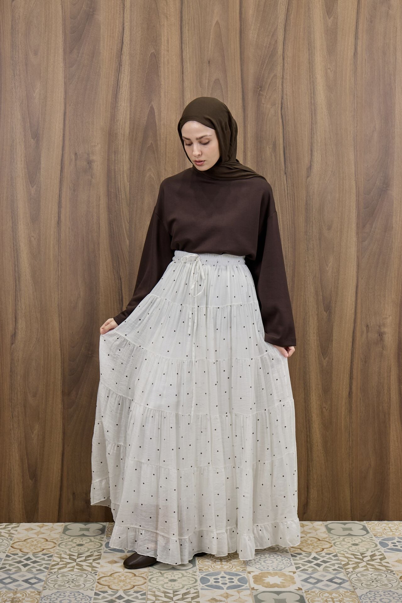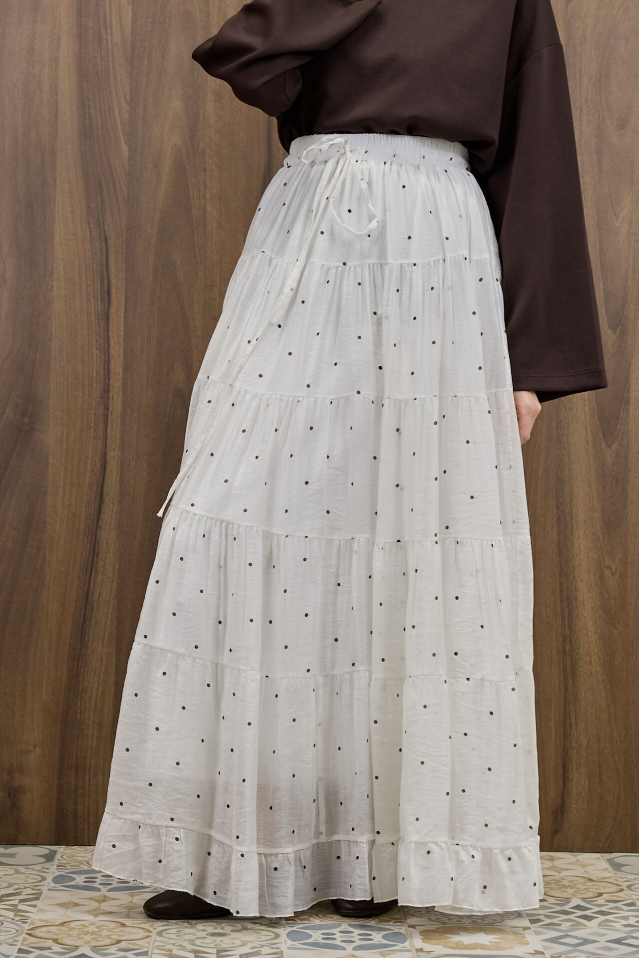 Beyaz Polka Puantiye Desenli Şifon Etek