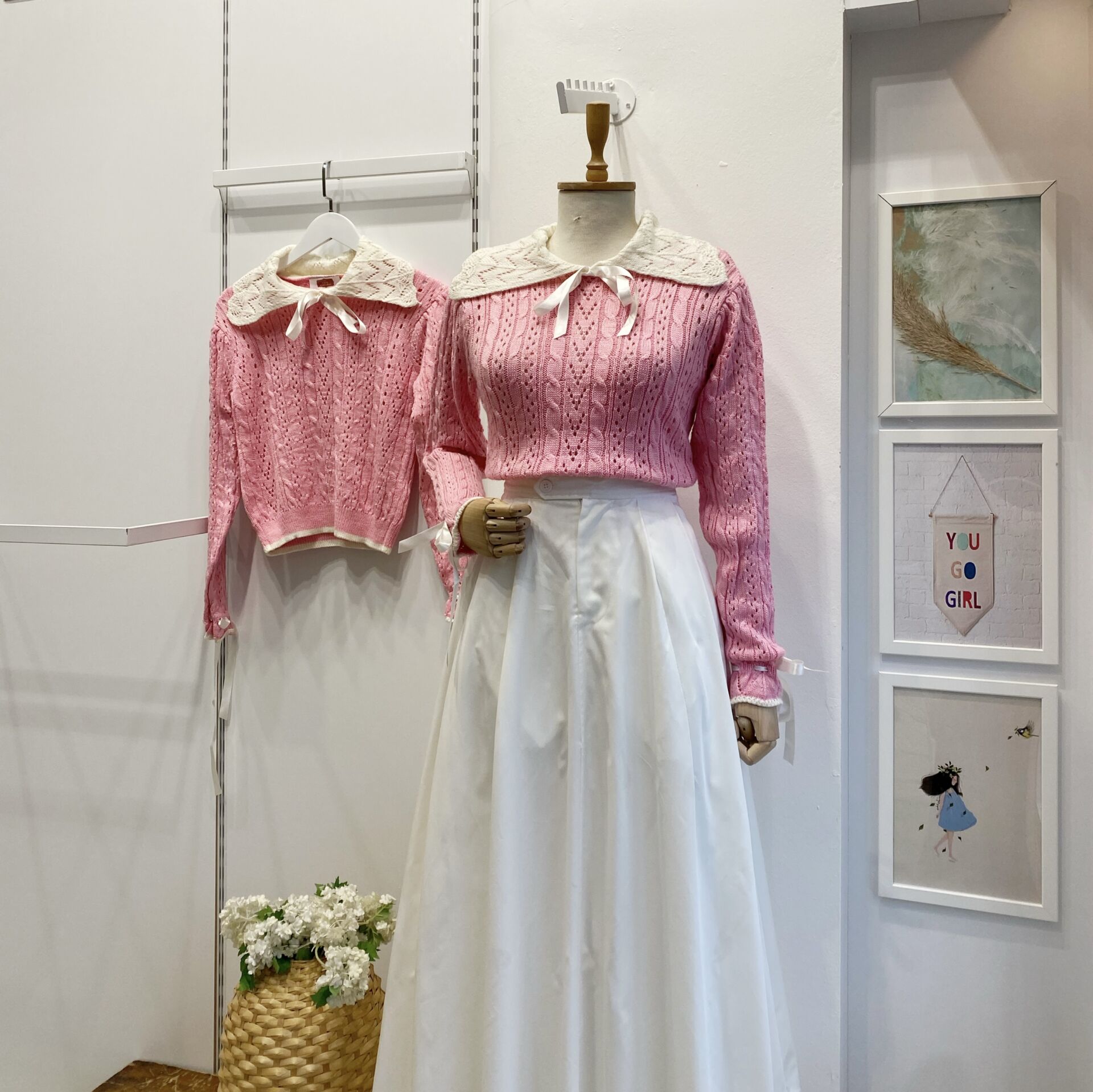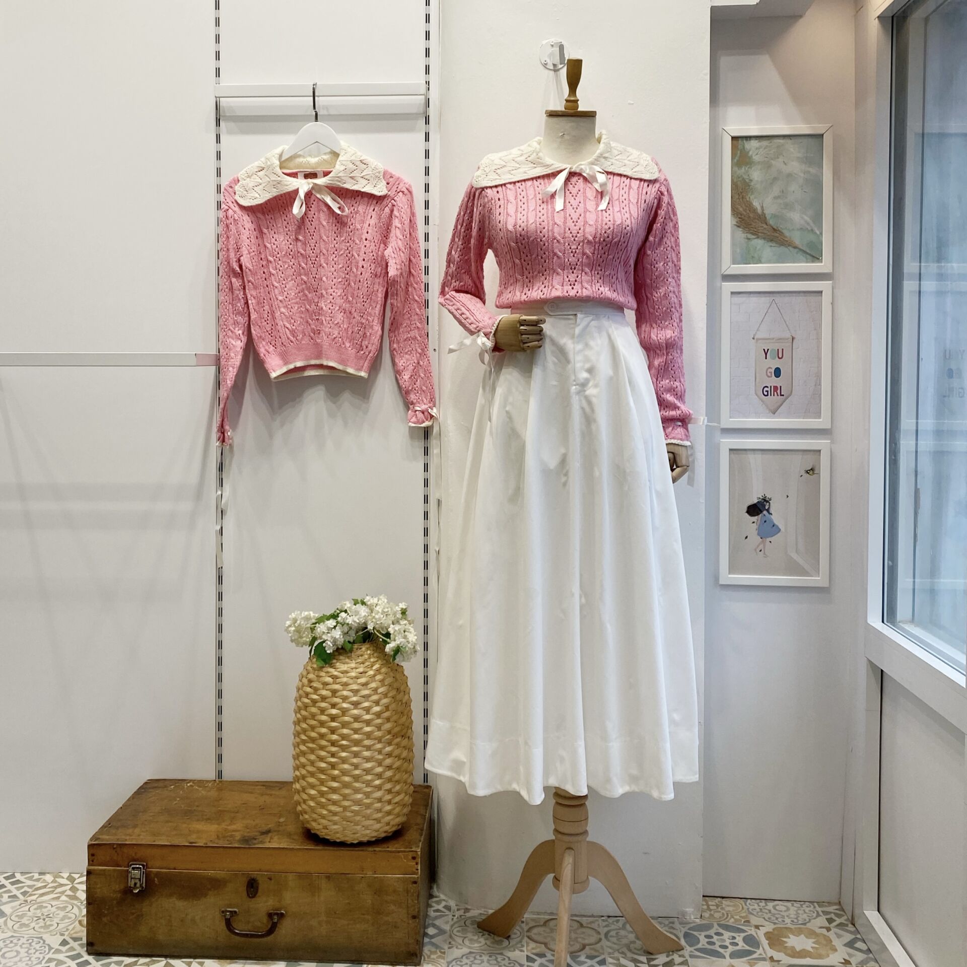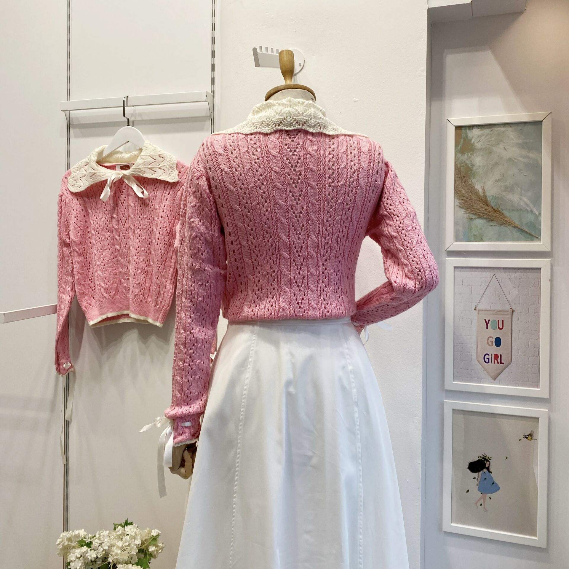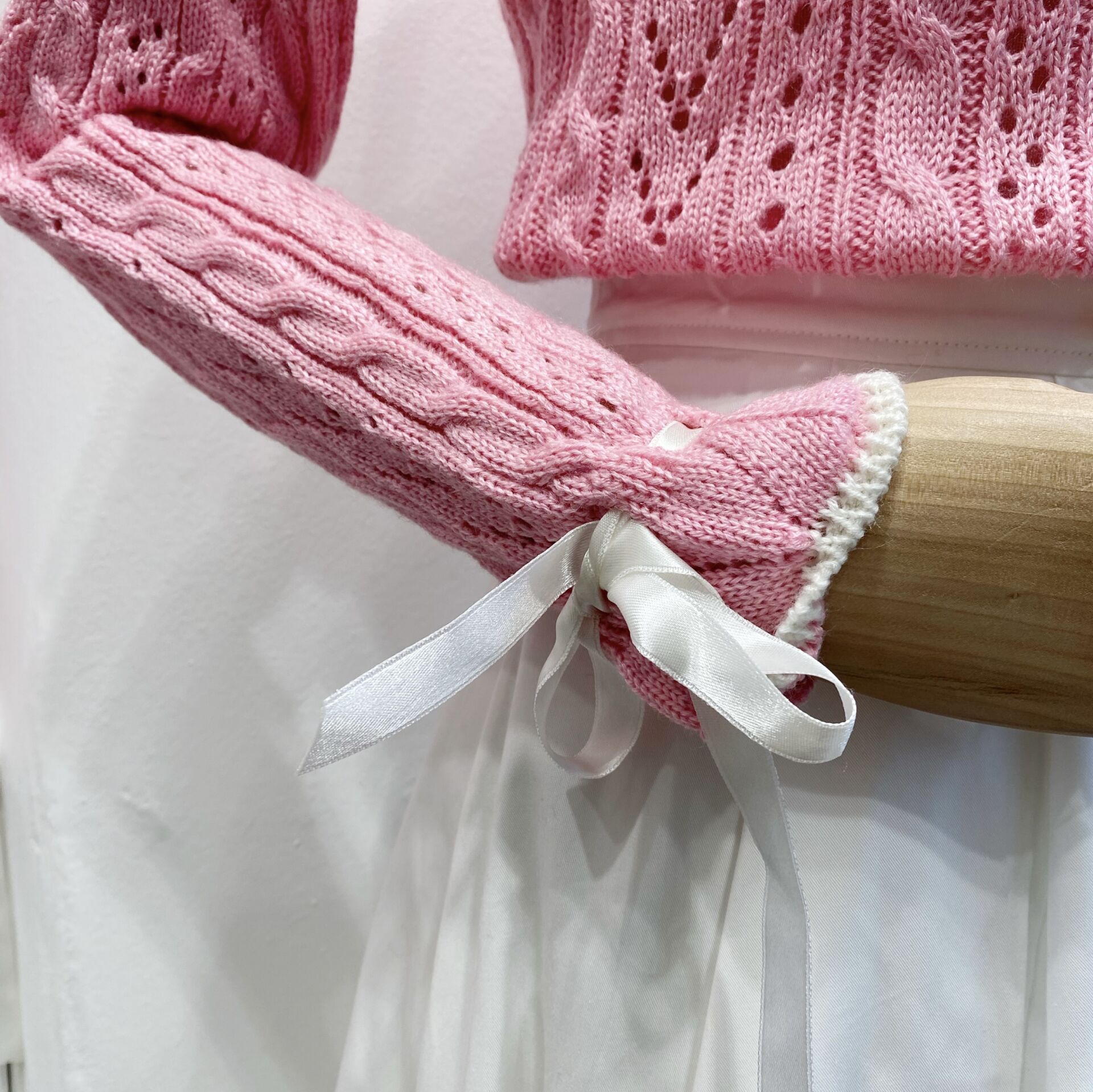 Beyaz Yakalı Kurdeleli Pembe Kazak