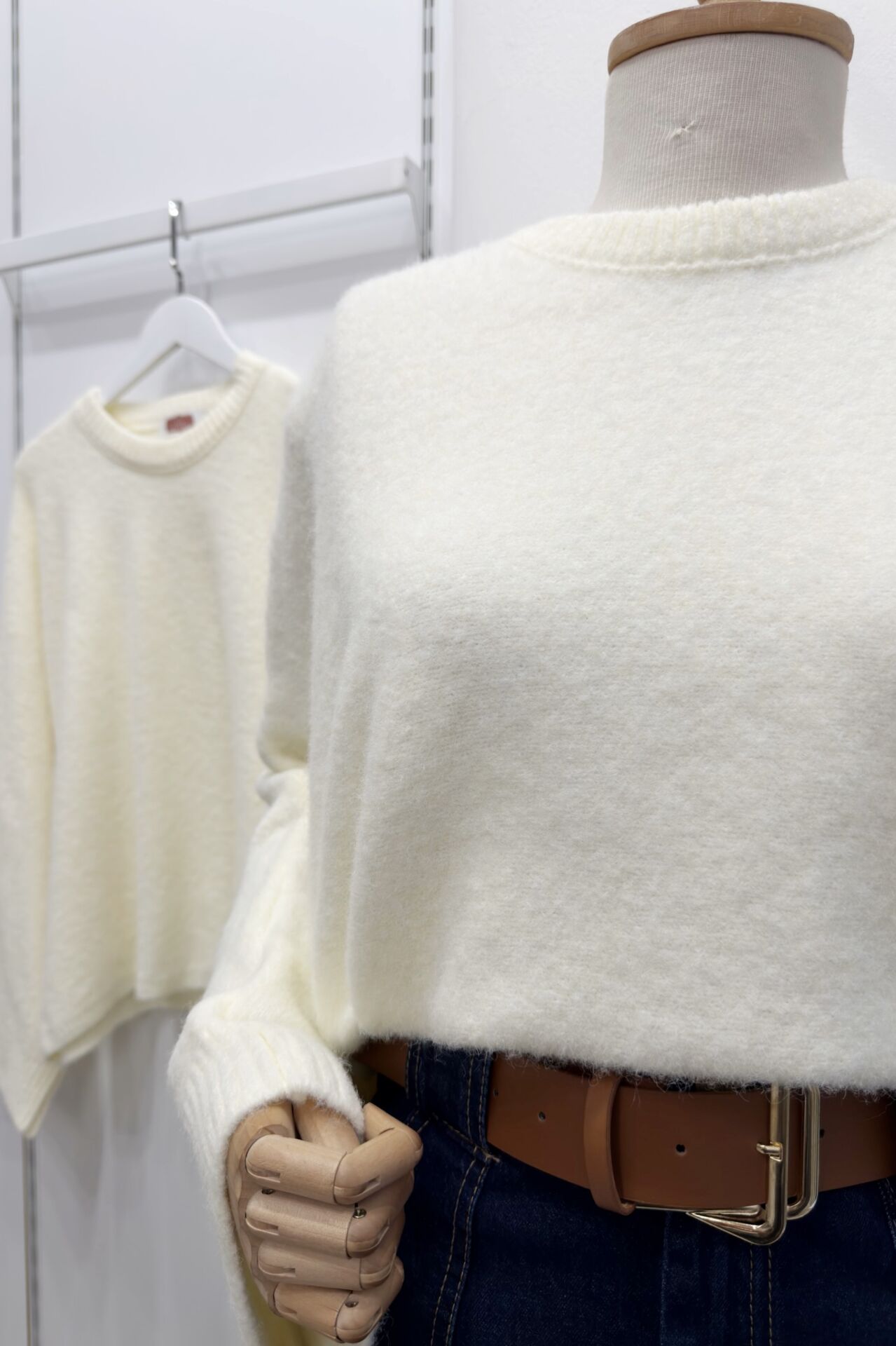 Beyaz Yumuşak Dokulu Yarasa Kol Kazak