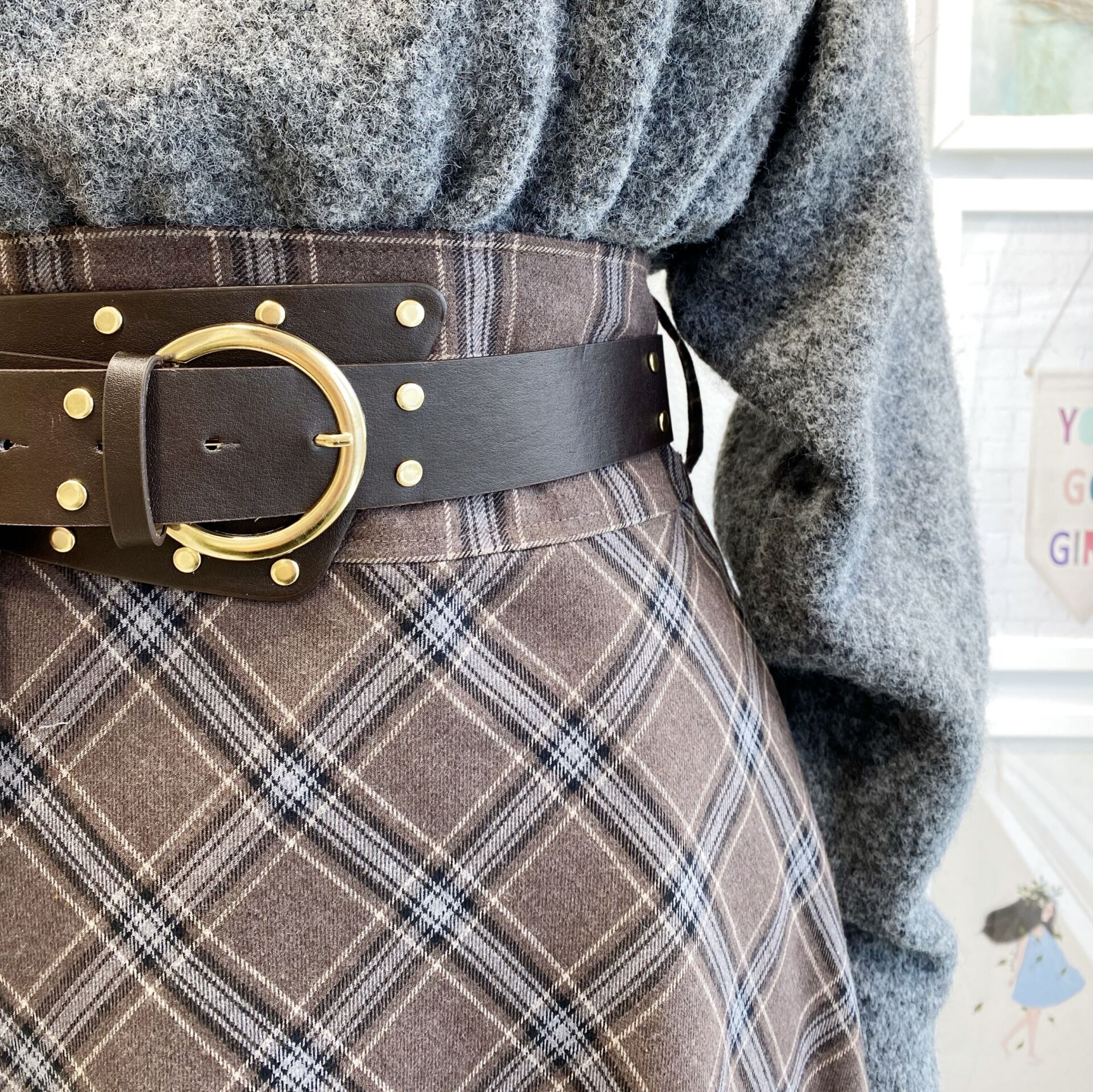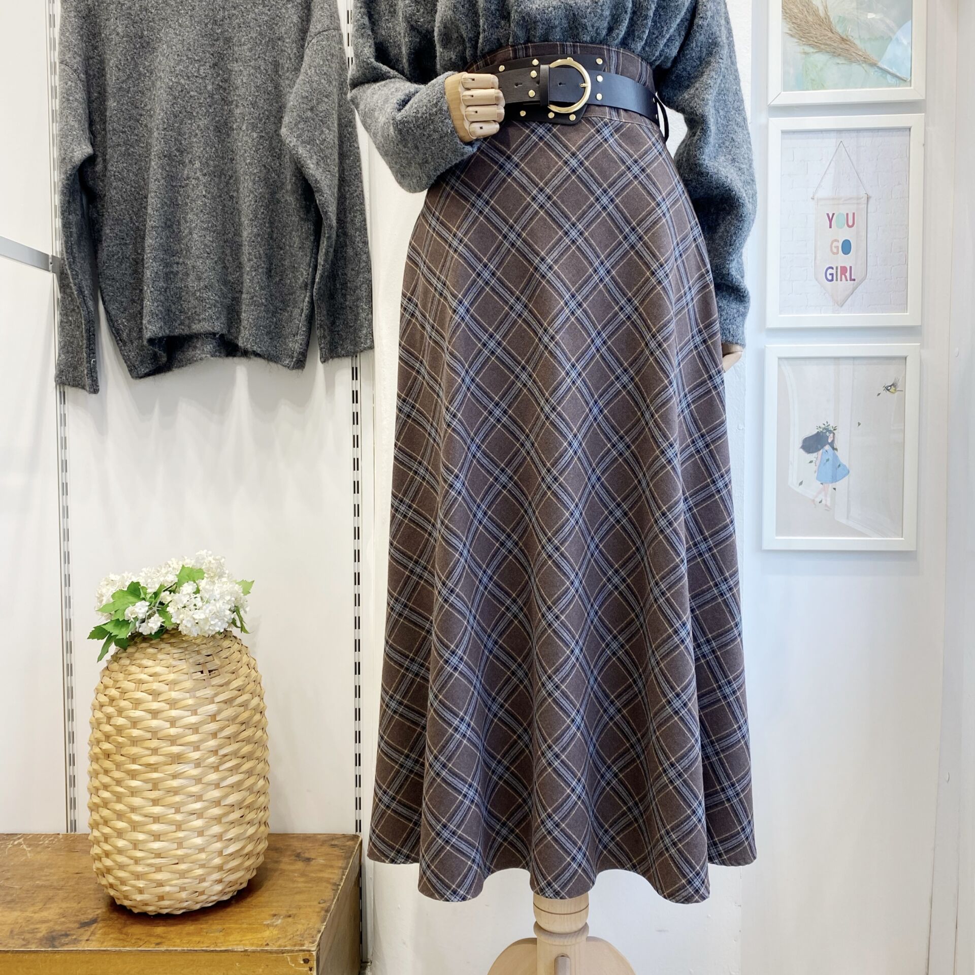 Bohem Kemerli Ekose Desenli Kahverengi Etek