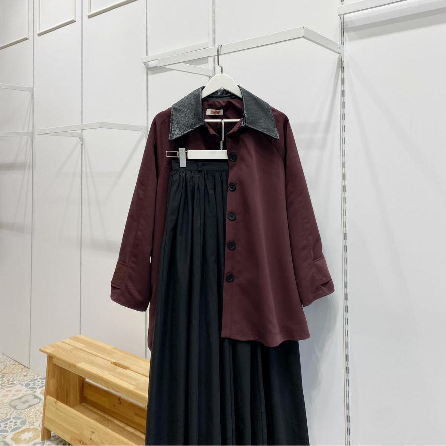 Bordo Deri Yakalı Kuşaklı Ceket