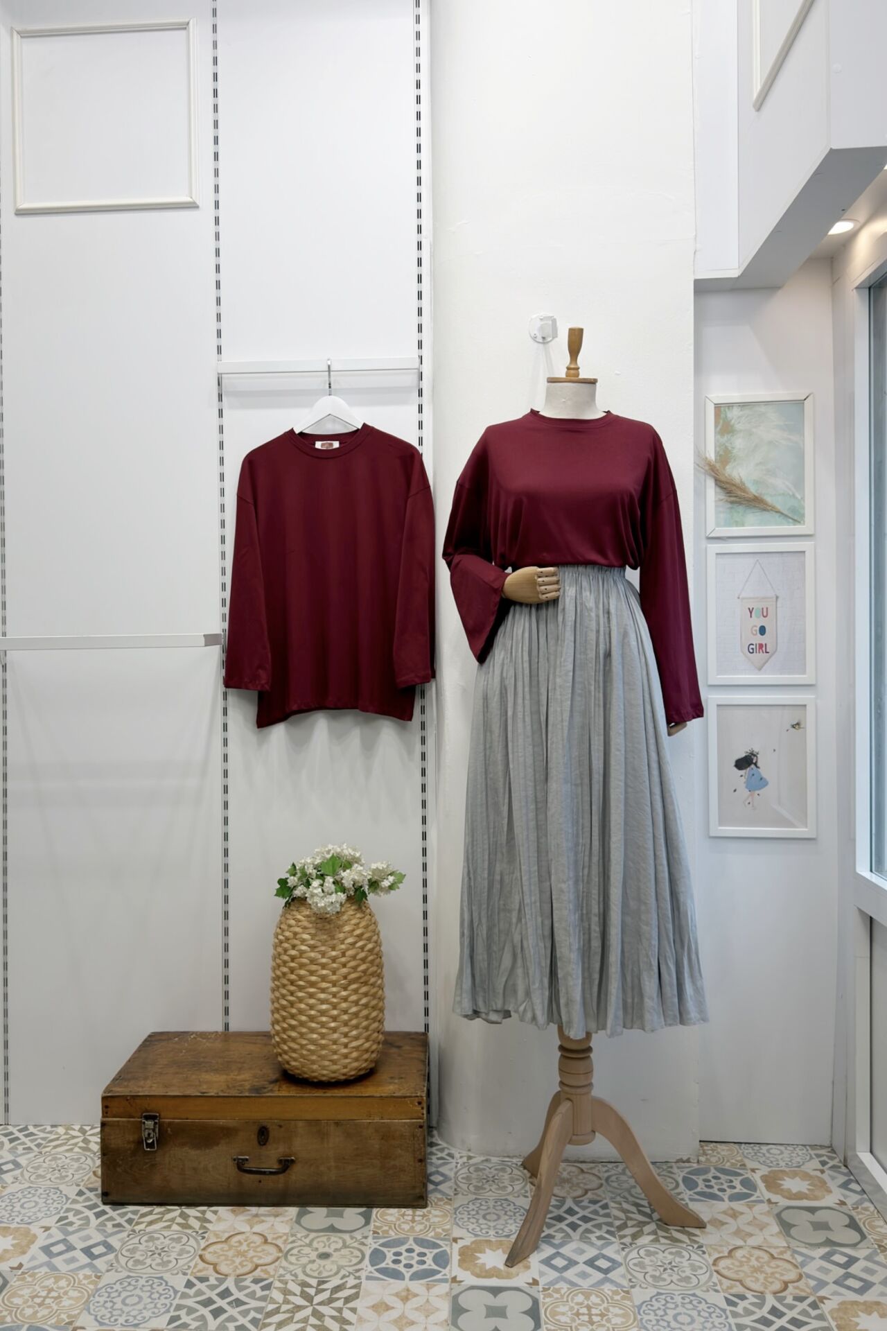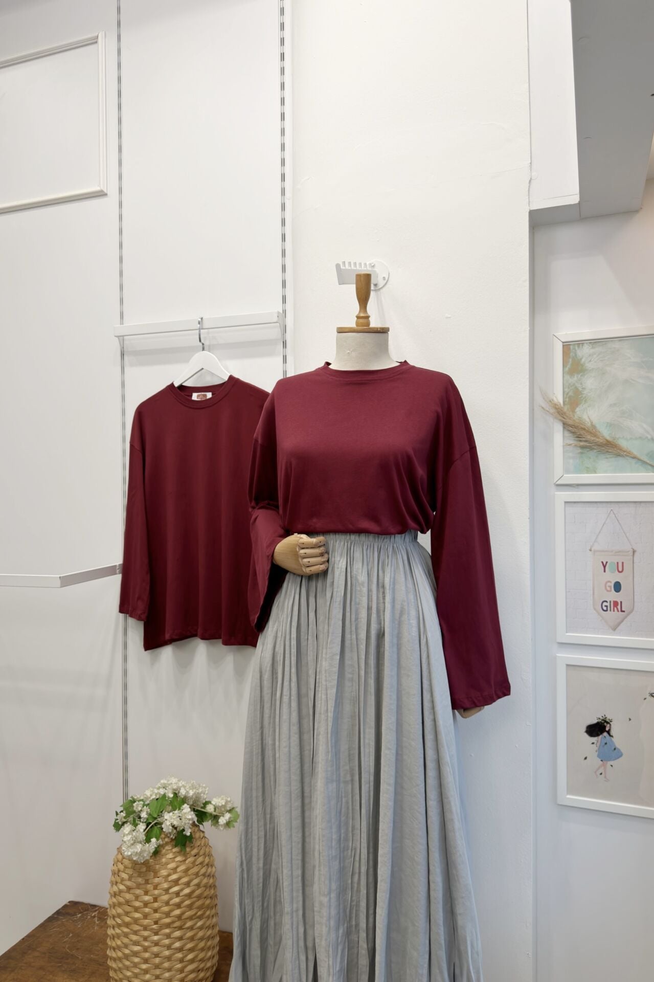 Bordo Dökümlü Basic Bluz