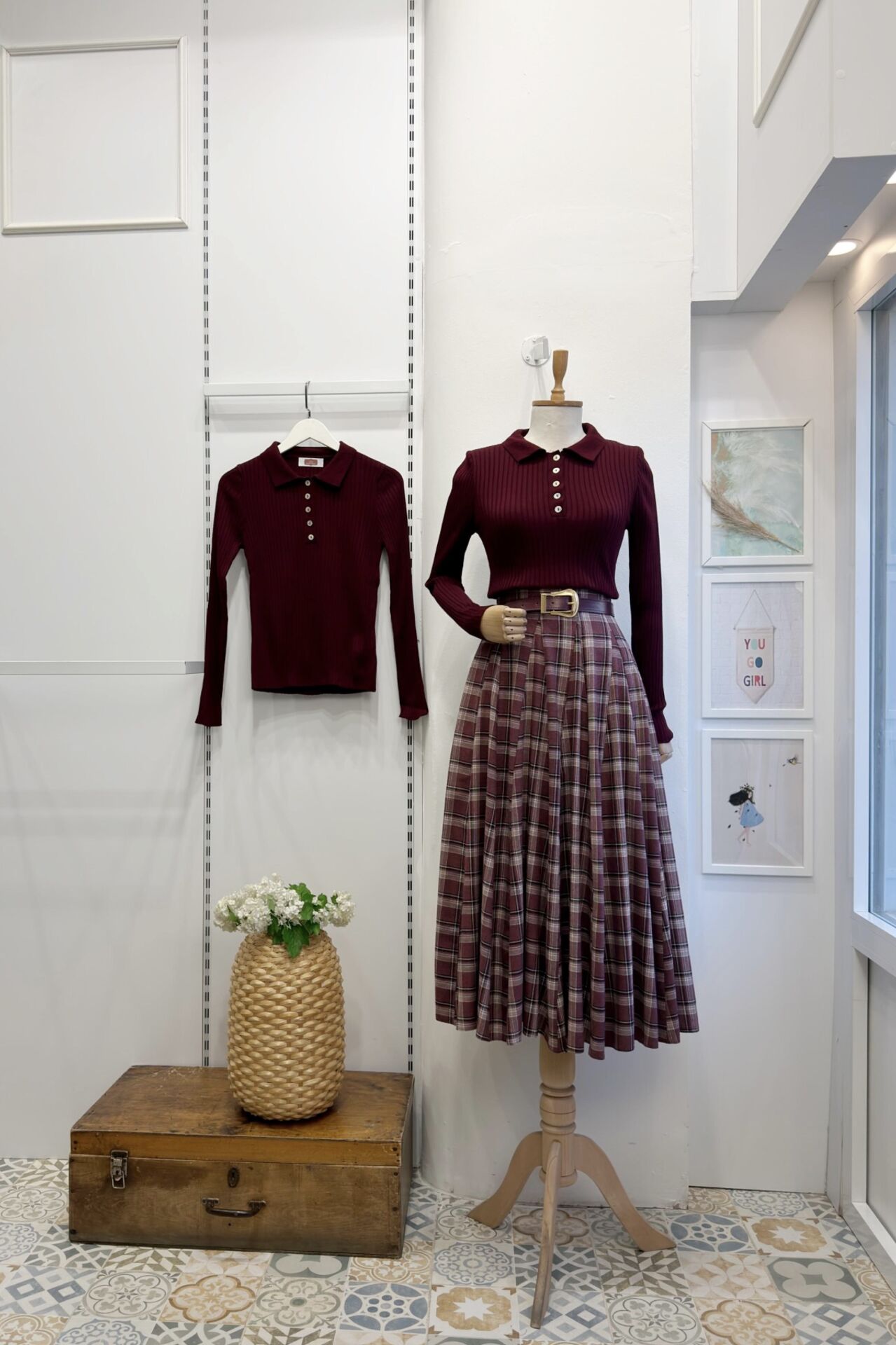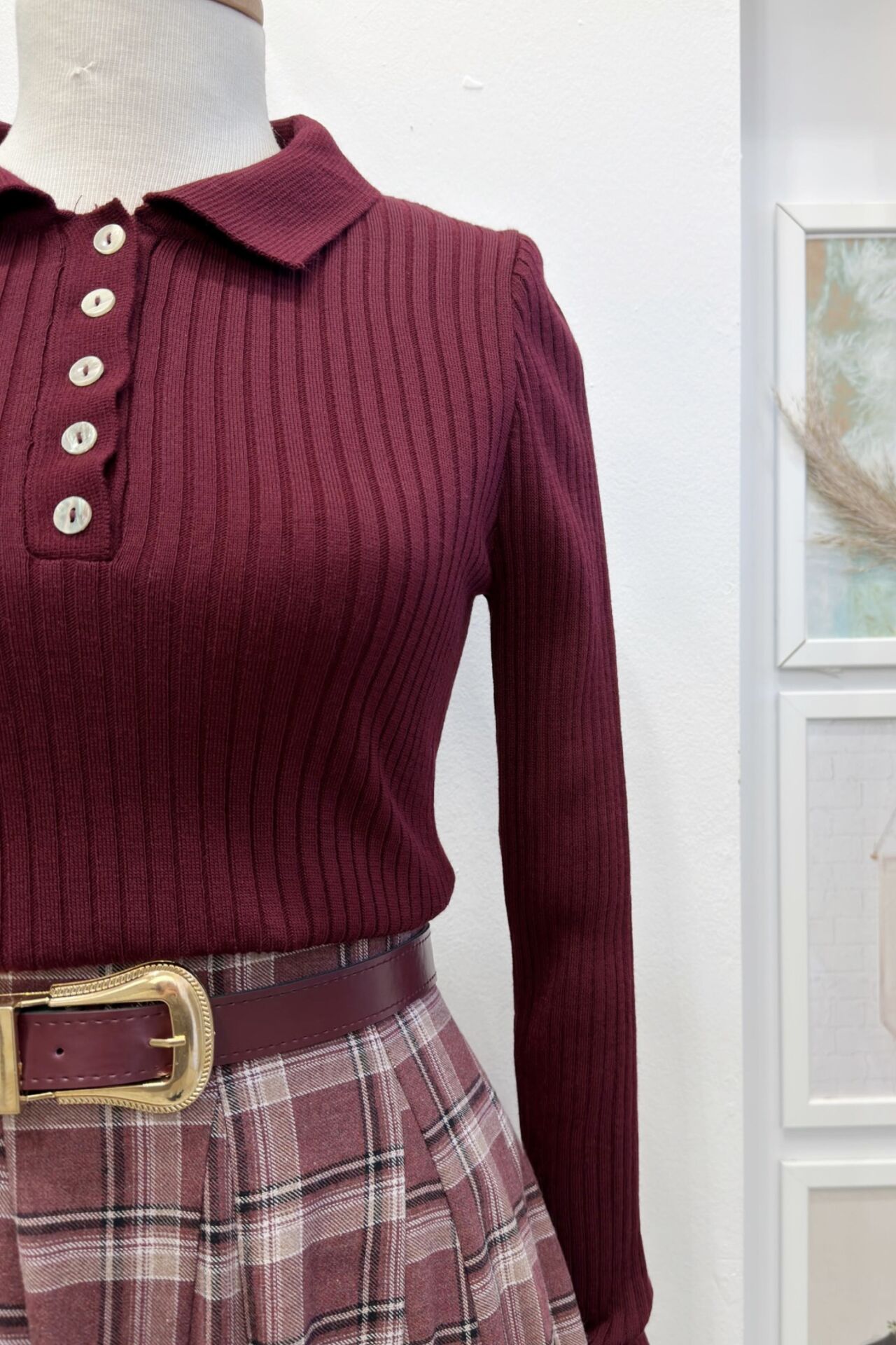 Bordo Düğme Detaylı Isabelle Triko Bluz
