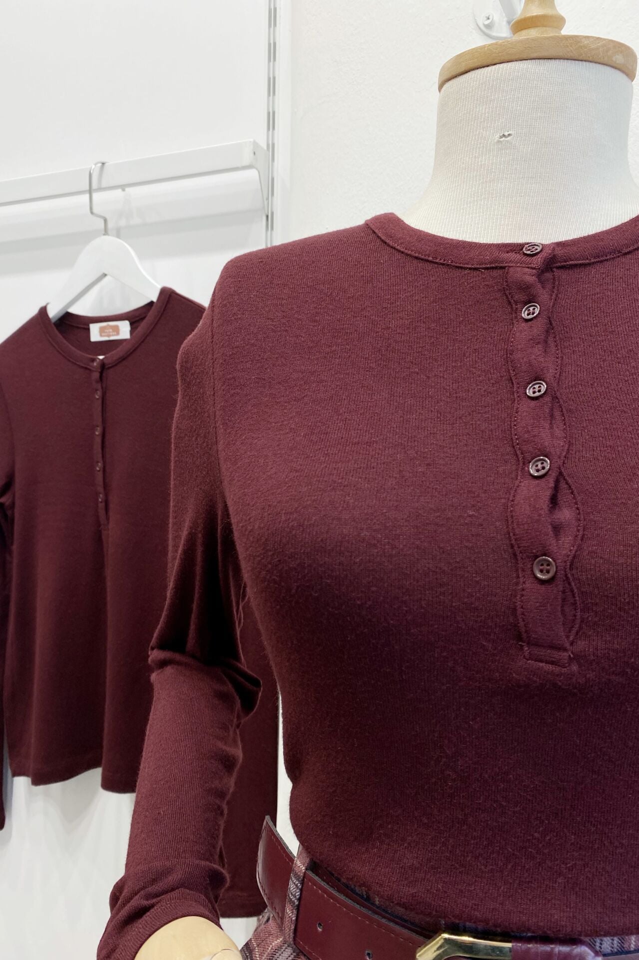 Bordo Düğmeli Blair Triko Bluz