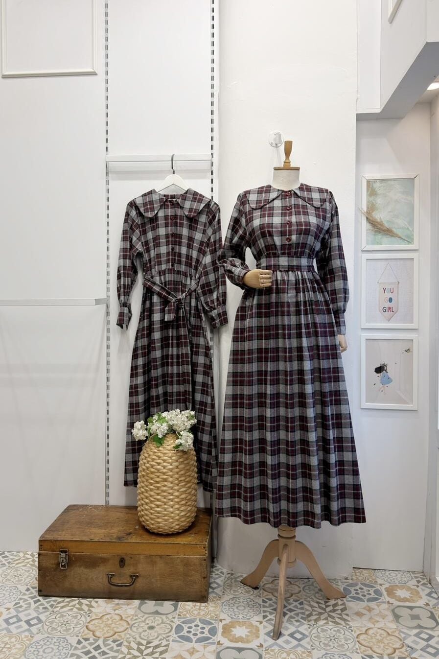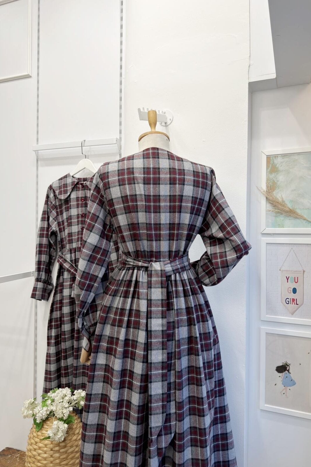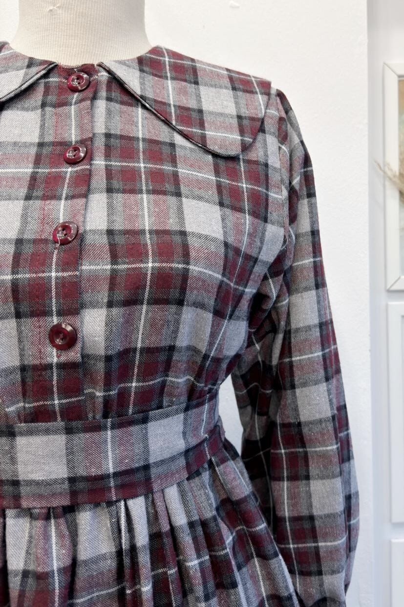 Bordo Ekoseli Adeline Elbise