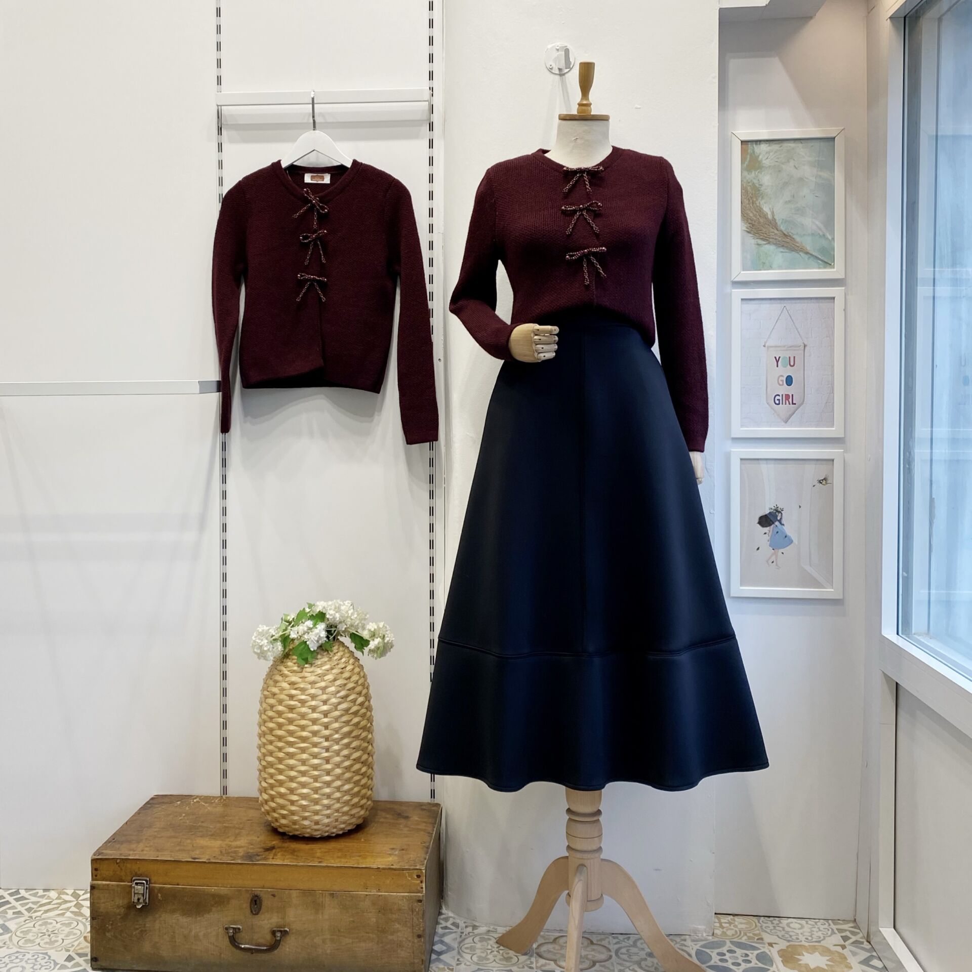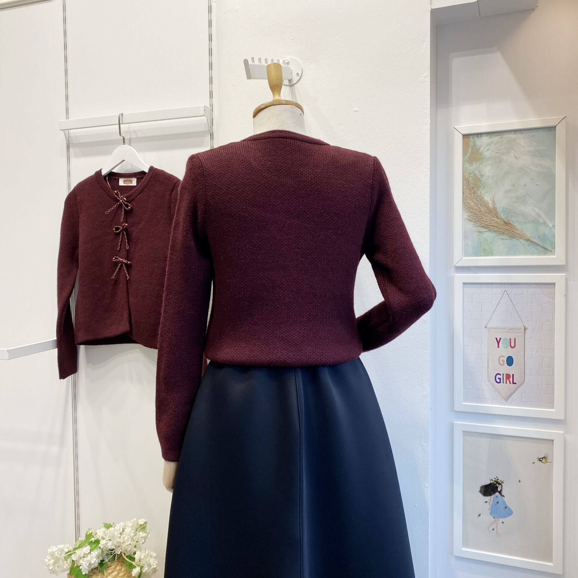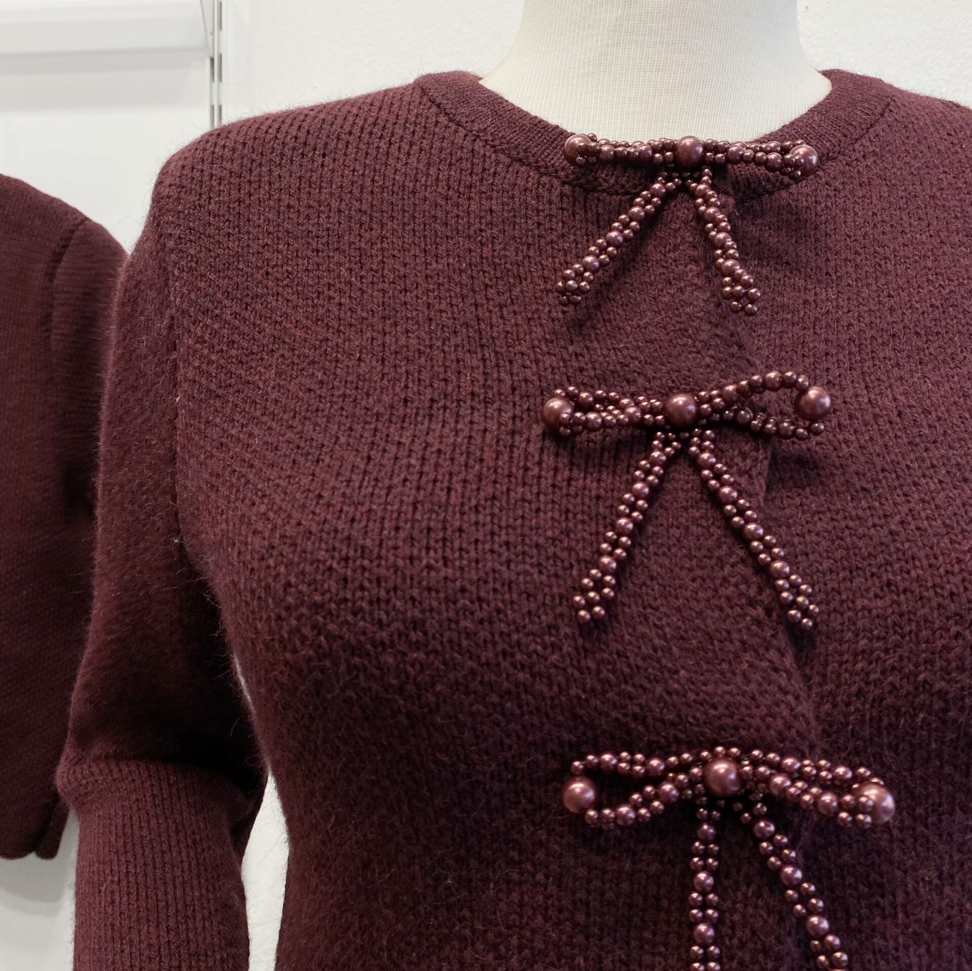 Bordo İncili Fiyonk Aksesuarlı Triko Hırka
