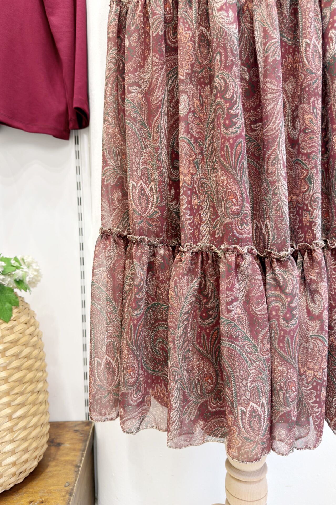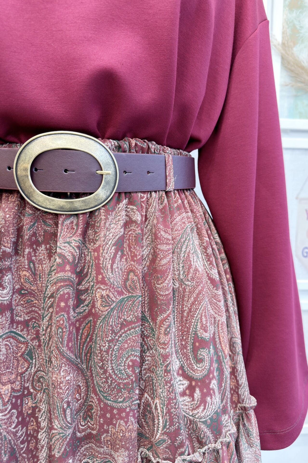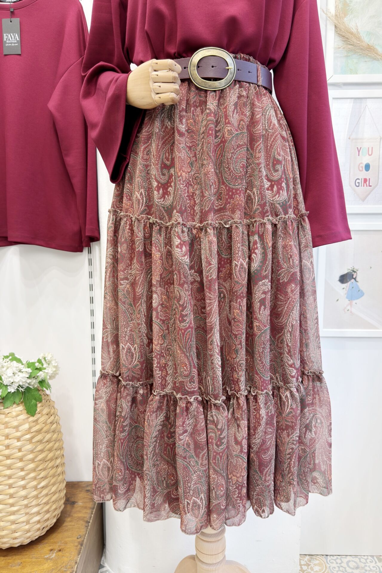 Bordo Kat Kat Kemerli Şifon Etek