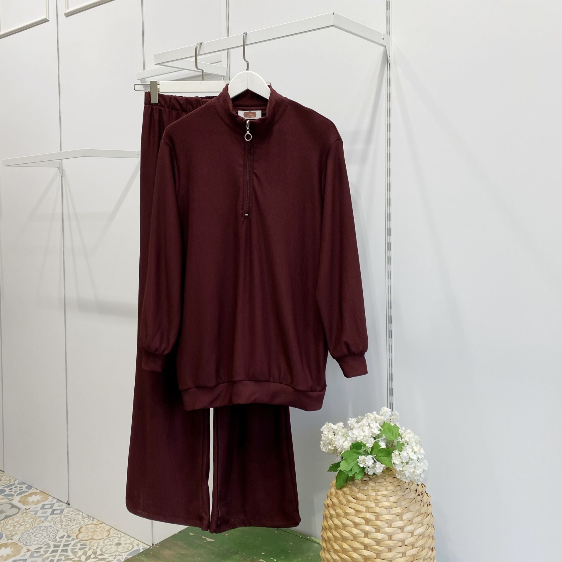 Bordo Pelerin Detaylı Pantolon Takım