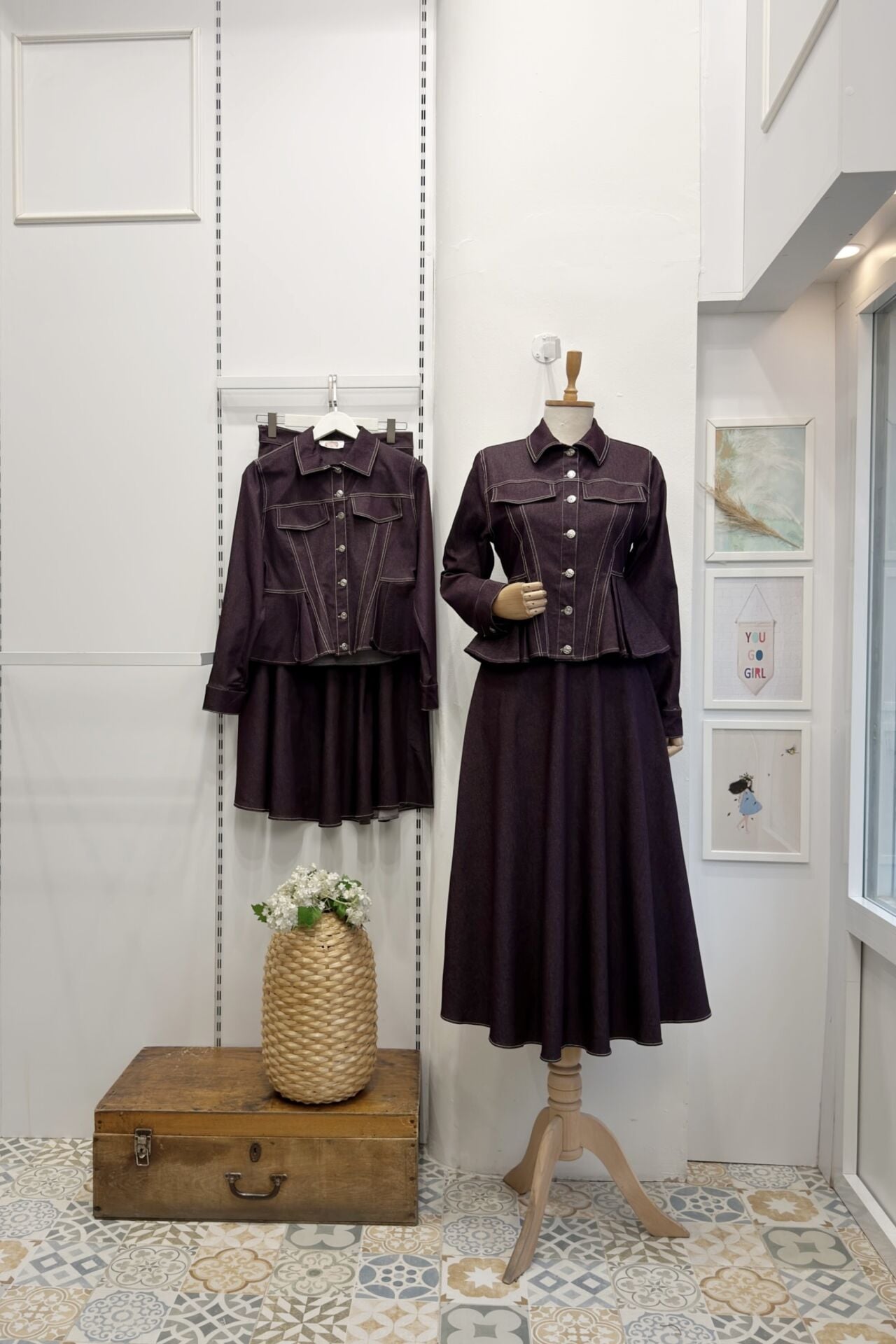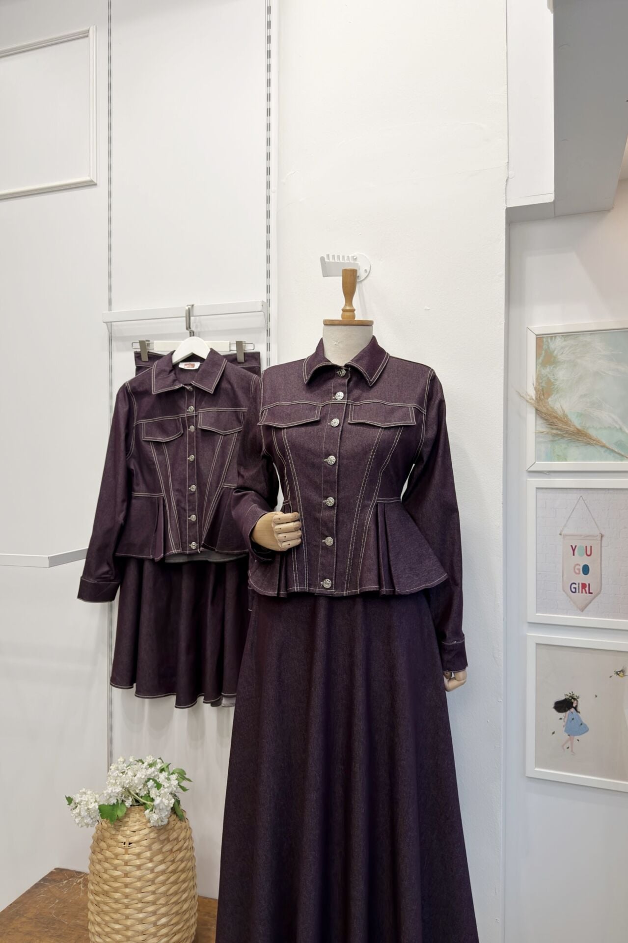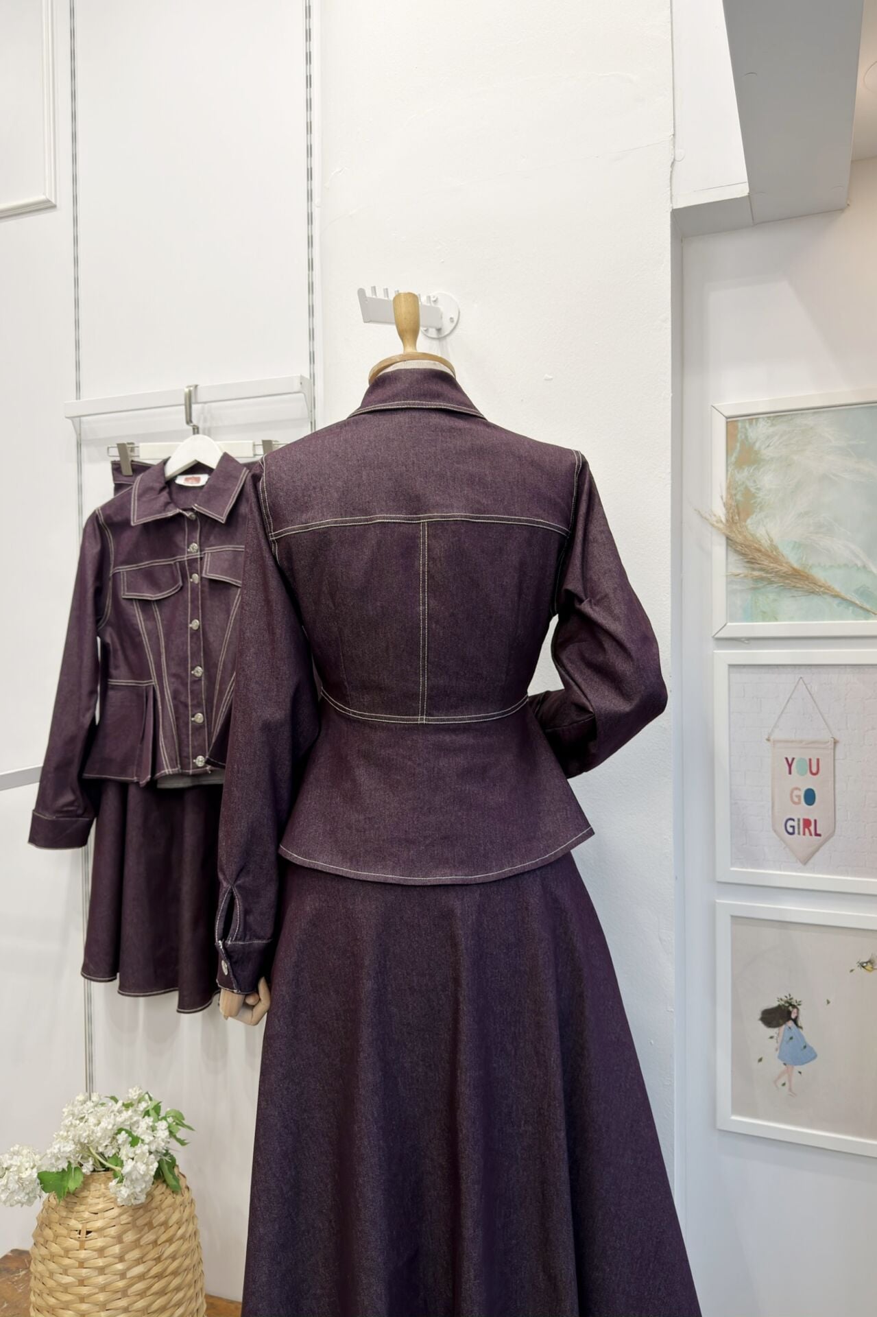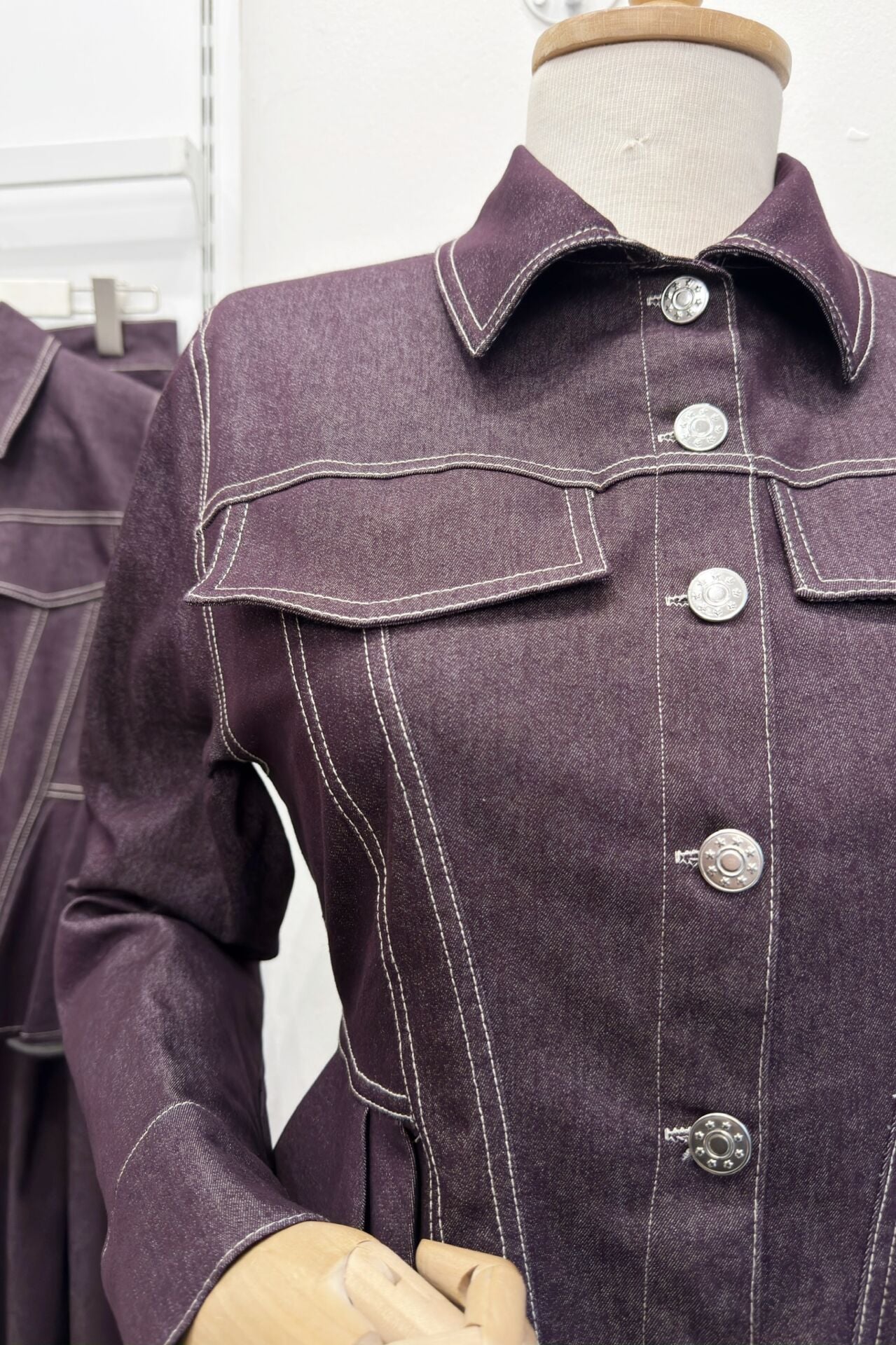 Bordo Pile Detaylı Plumetis Kot Takım