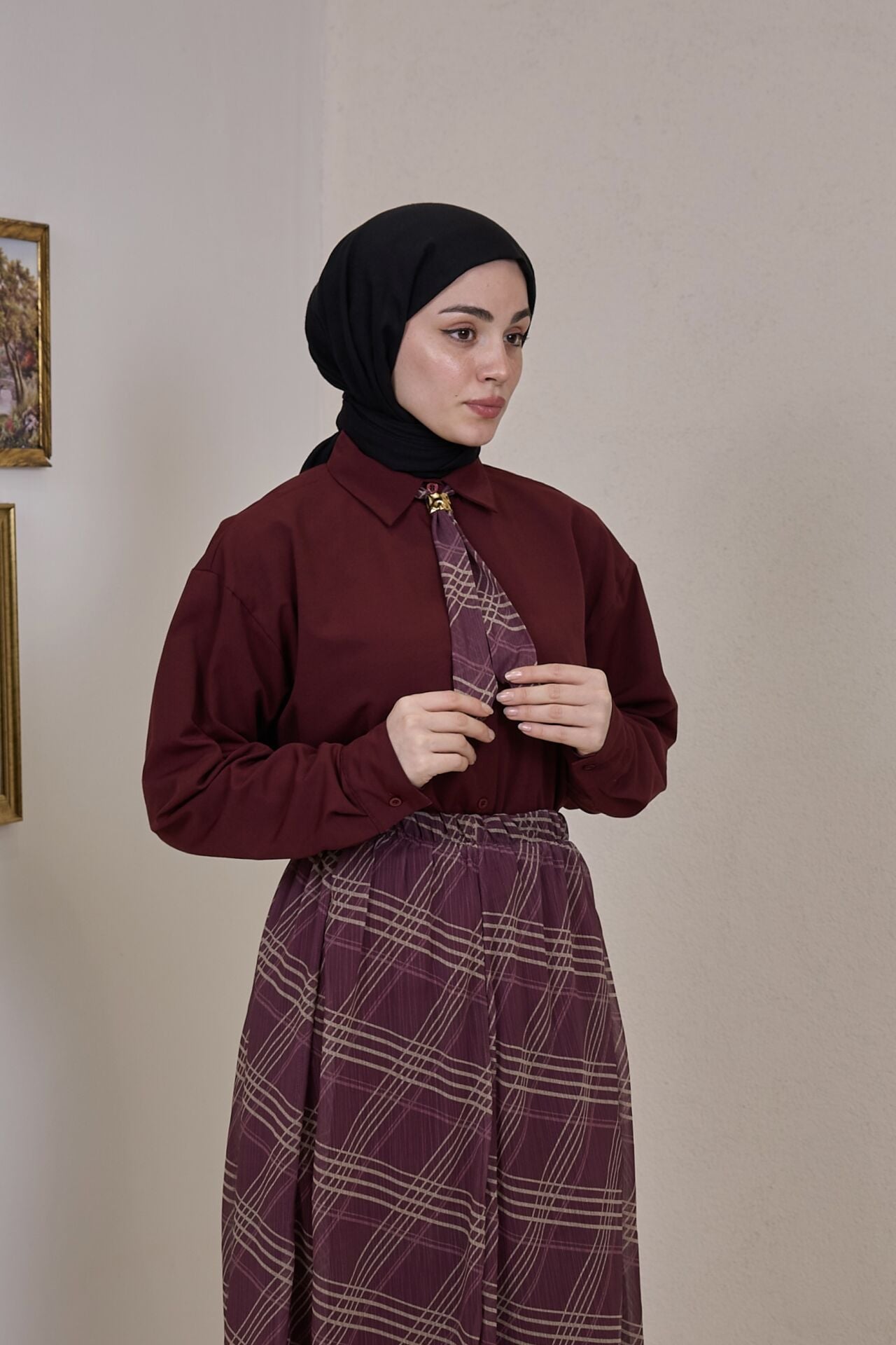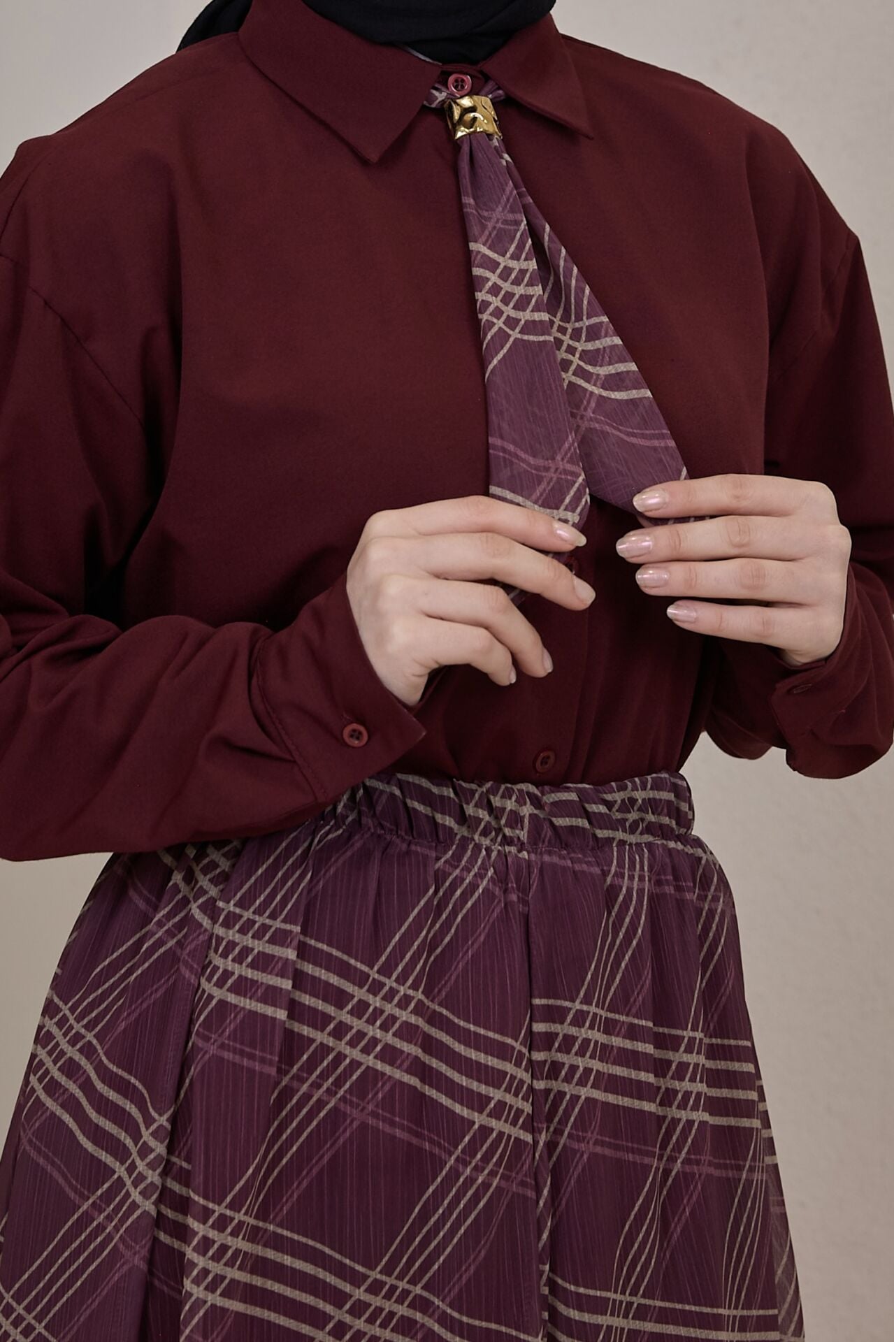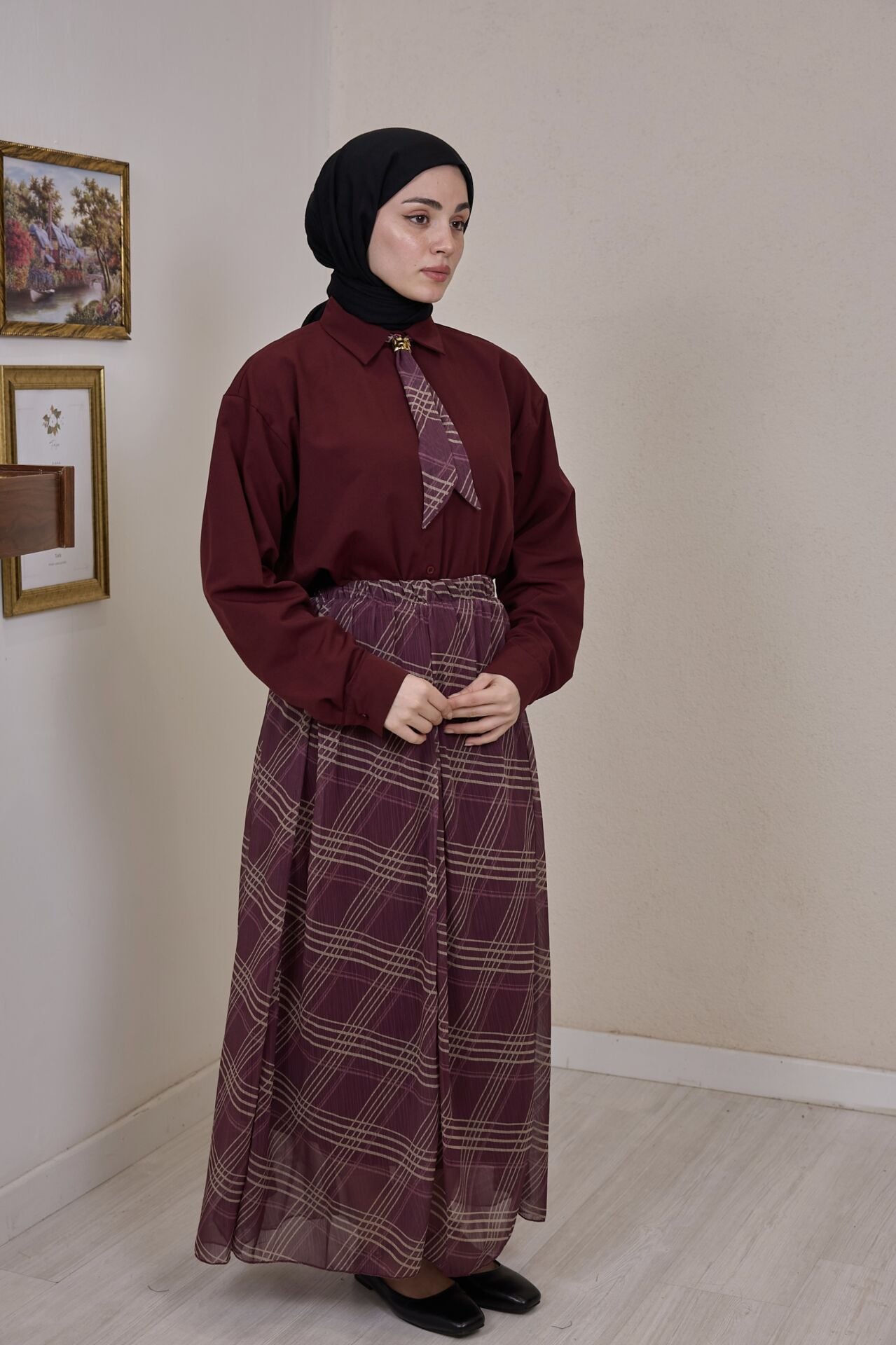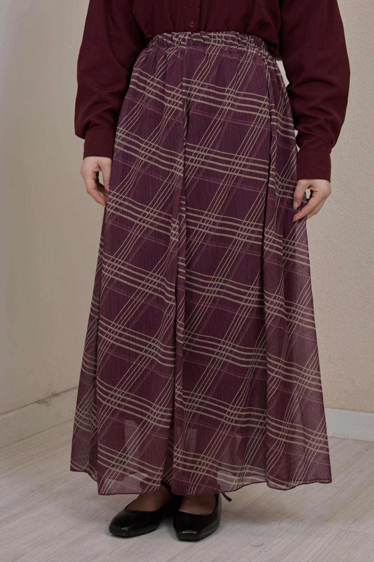 Bordo Şifon Etekli Artician Takım