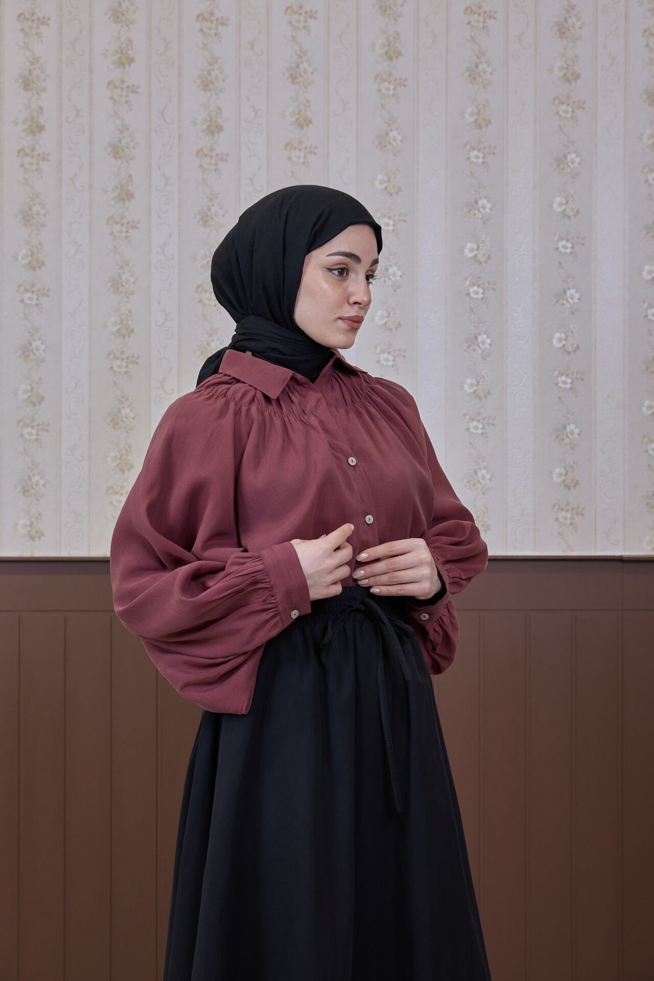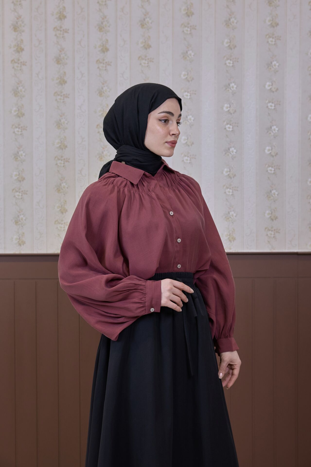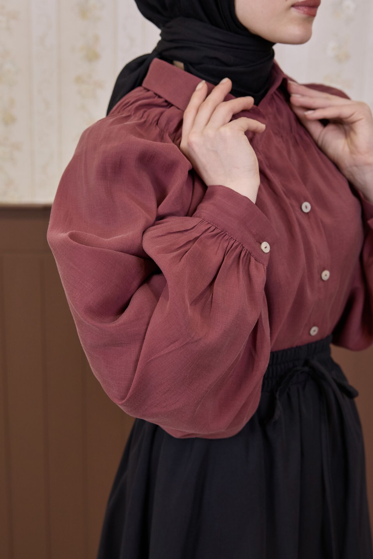 Bordo Tensel Elise Gömlek