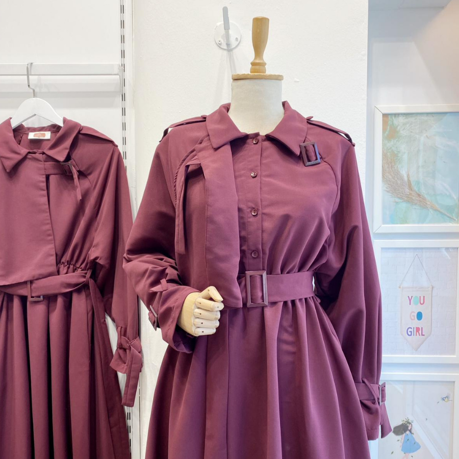 Bordo Trenç Model Elbise