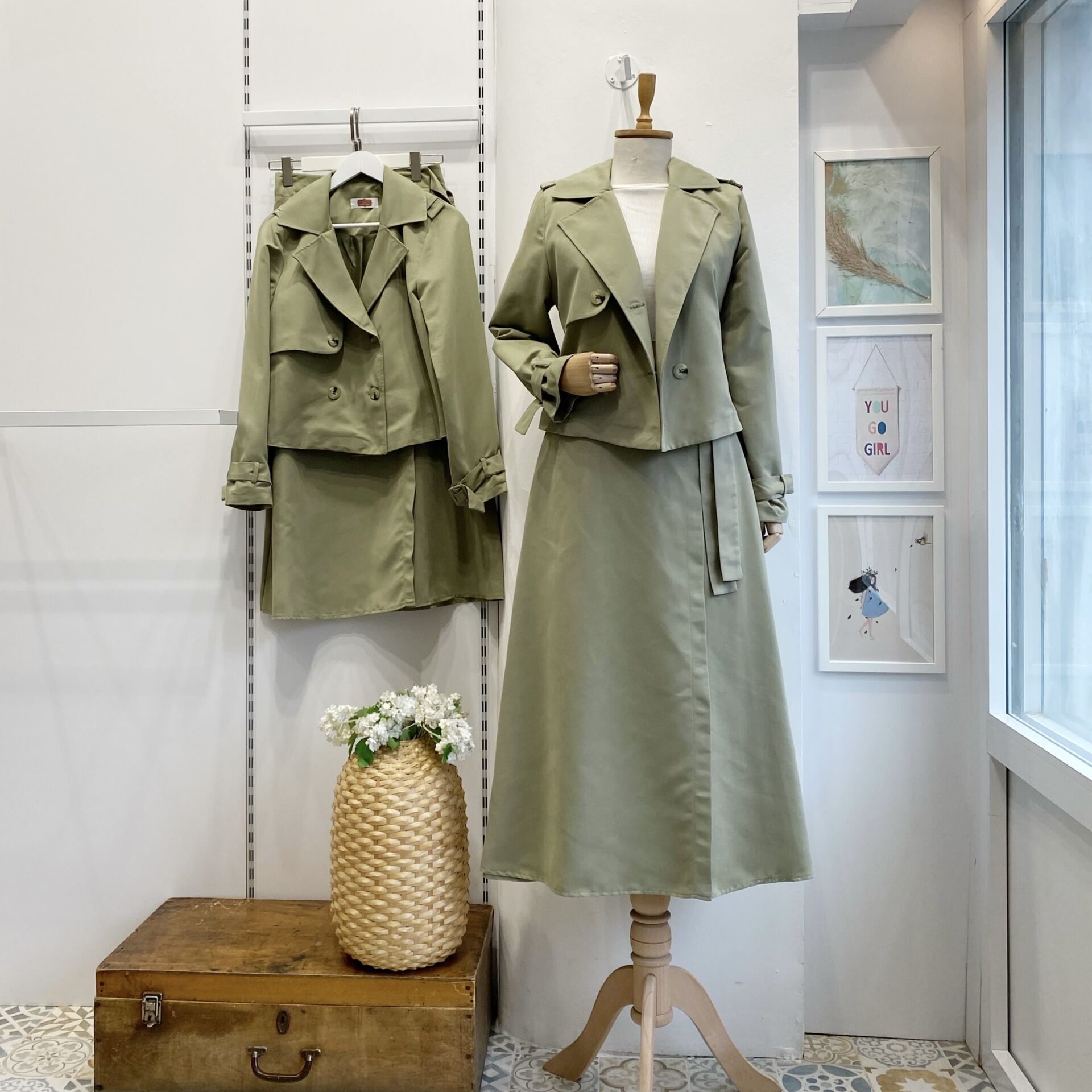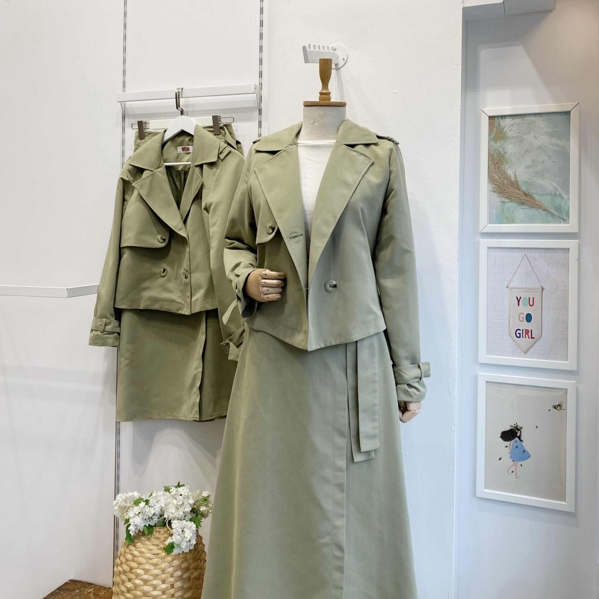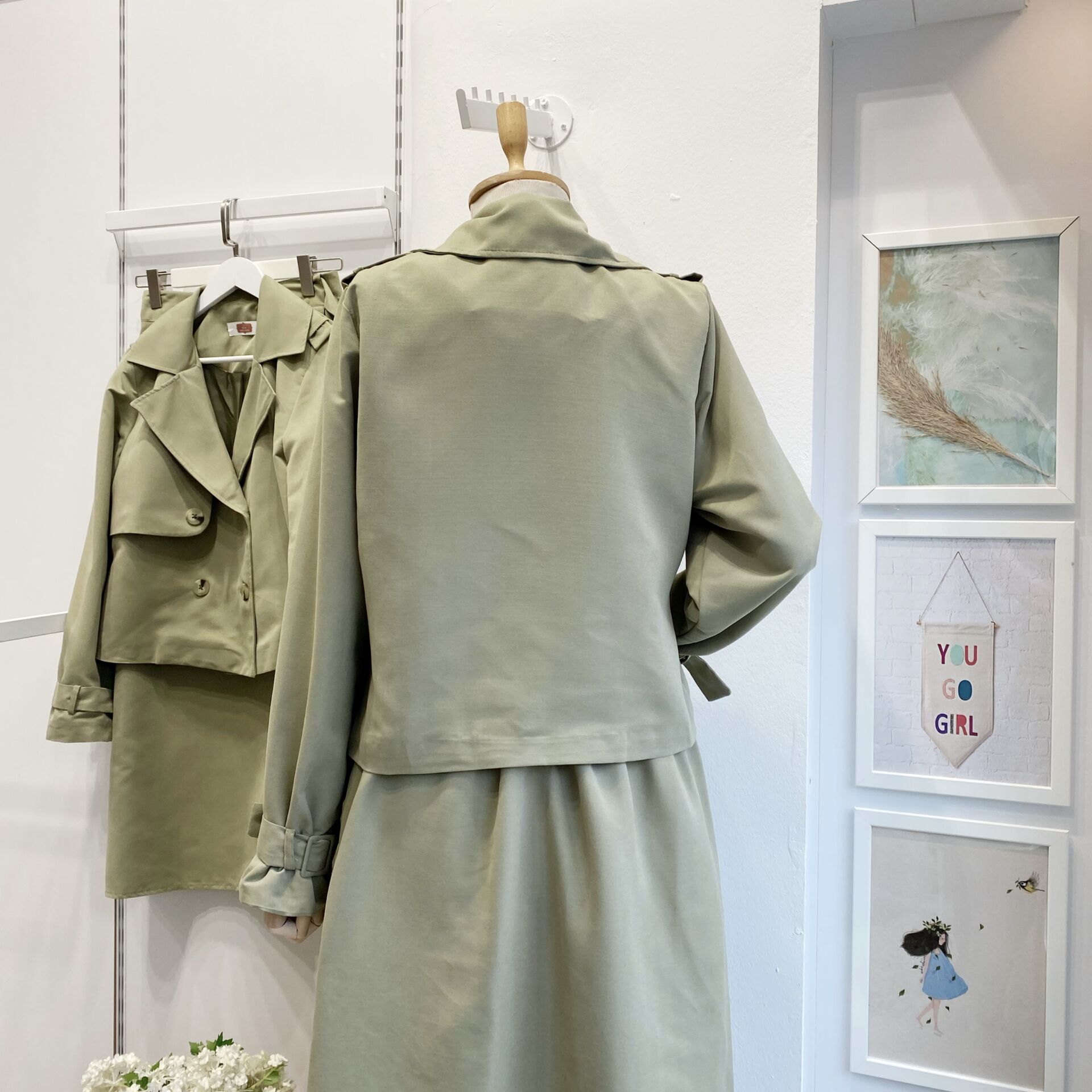 Çağla Yeşili Anvelop Etekli Trenç Takım
