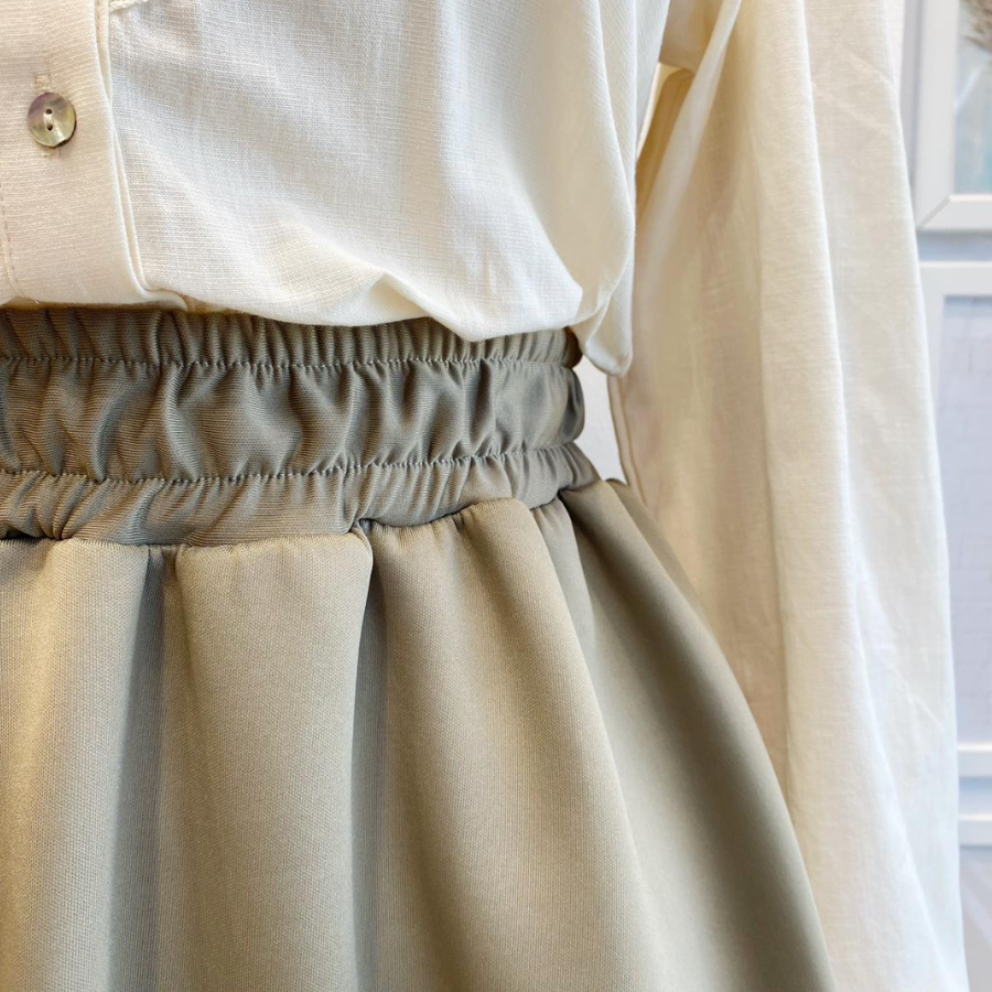 Çağla Yeşili Beli Lastikli Kloş Model Scuba Etek