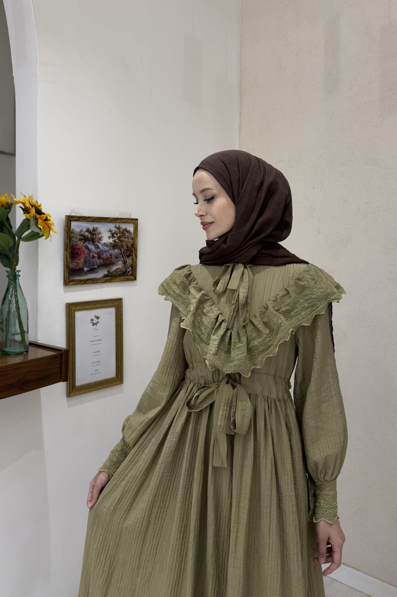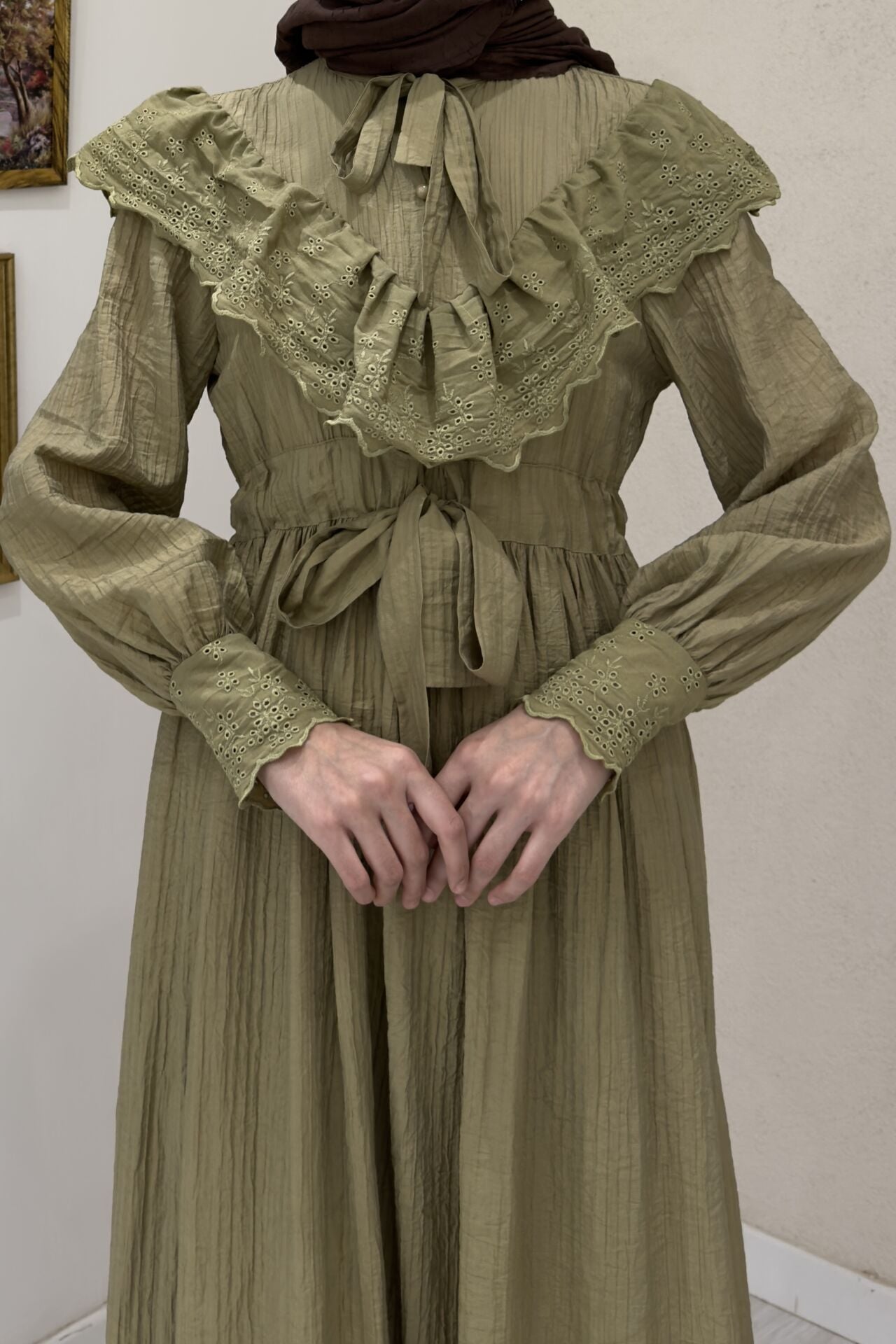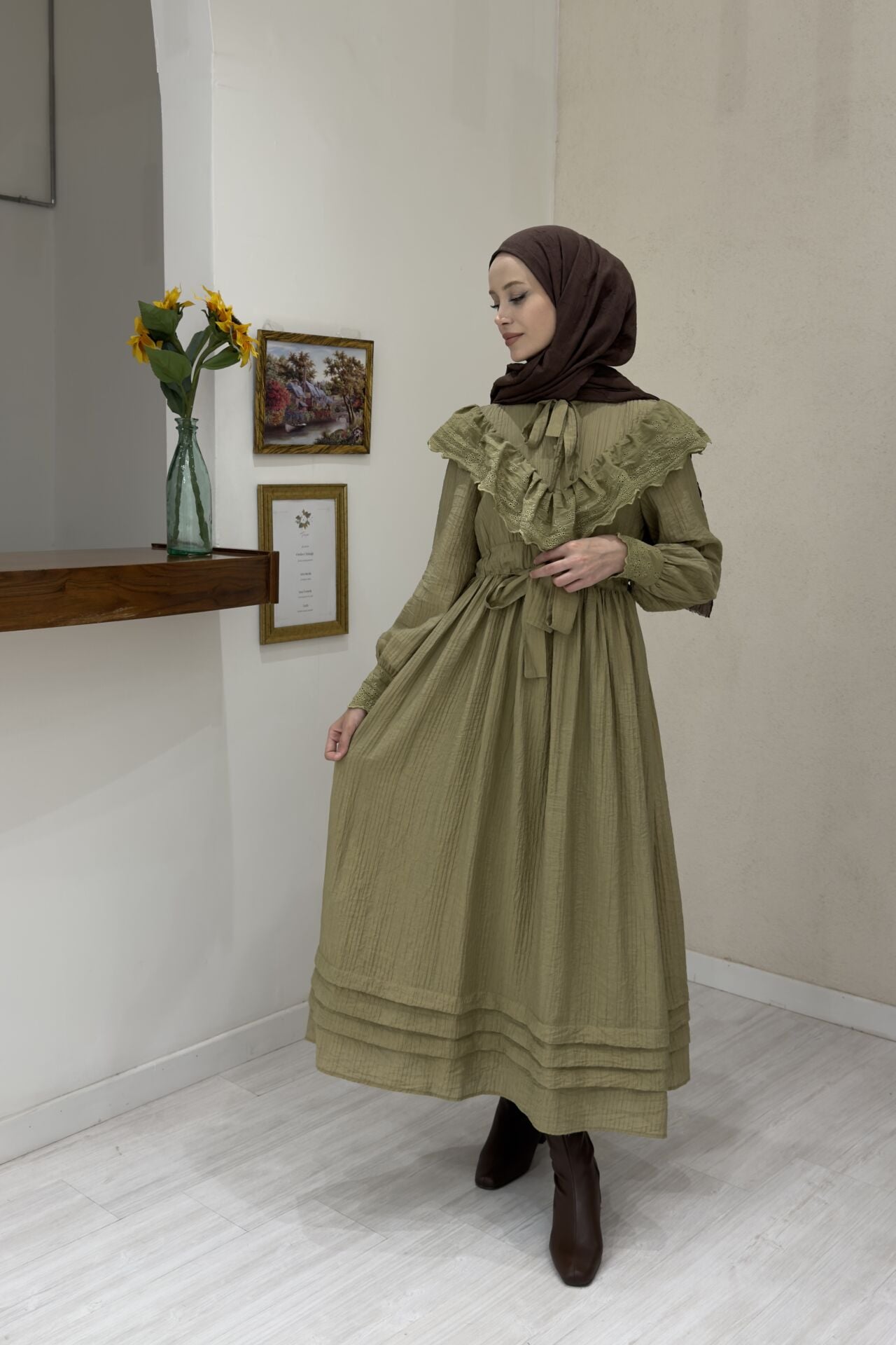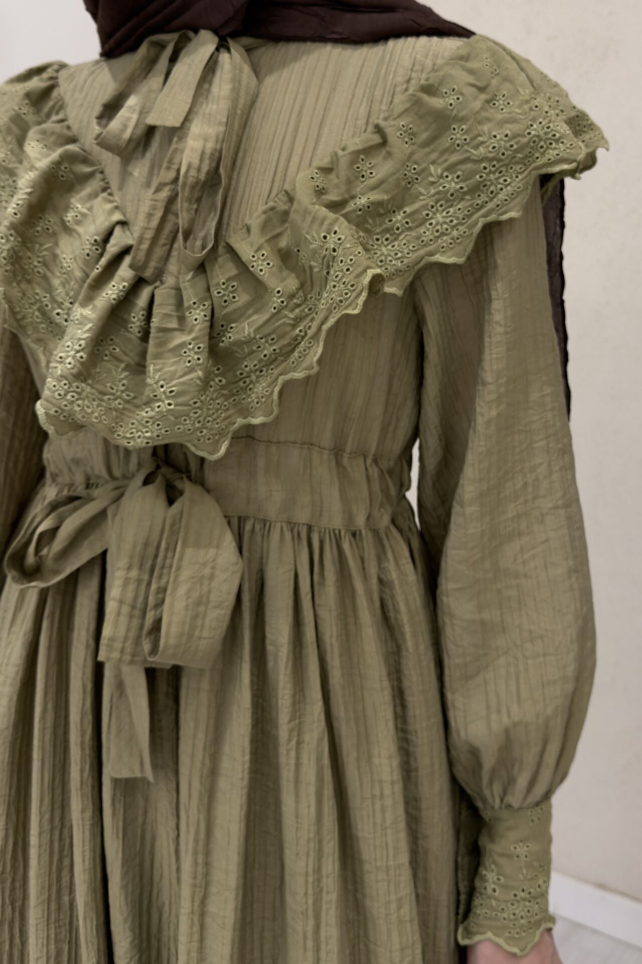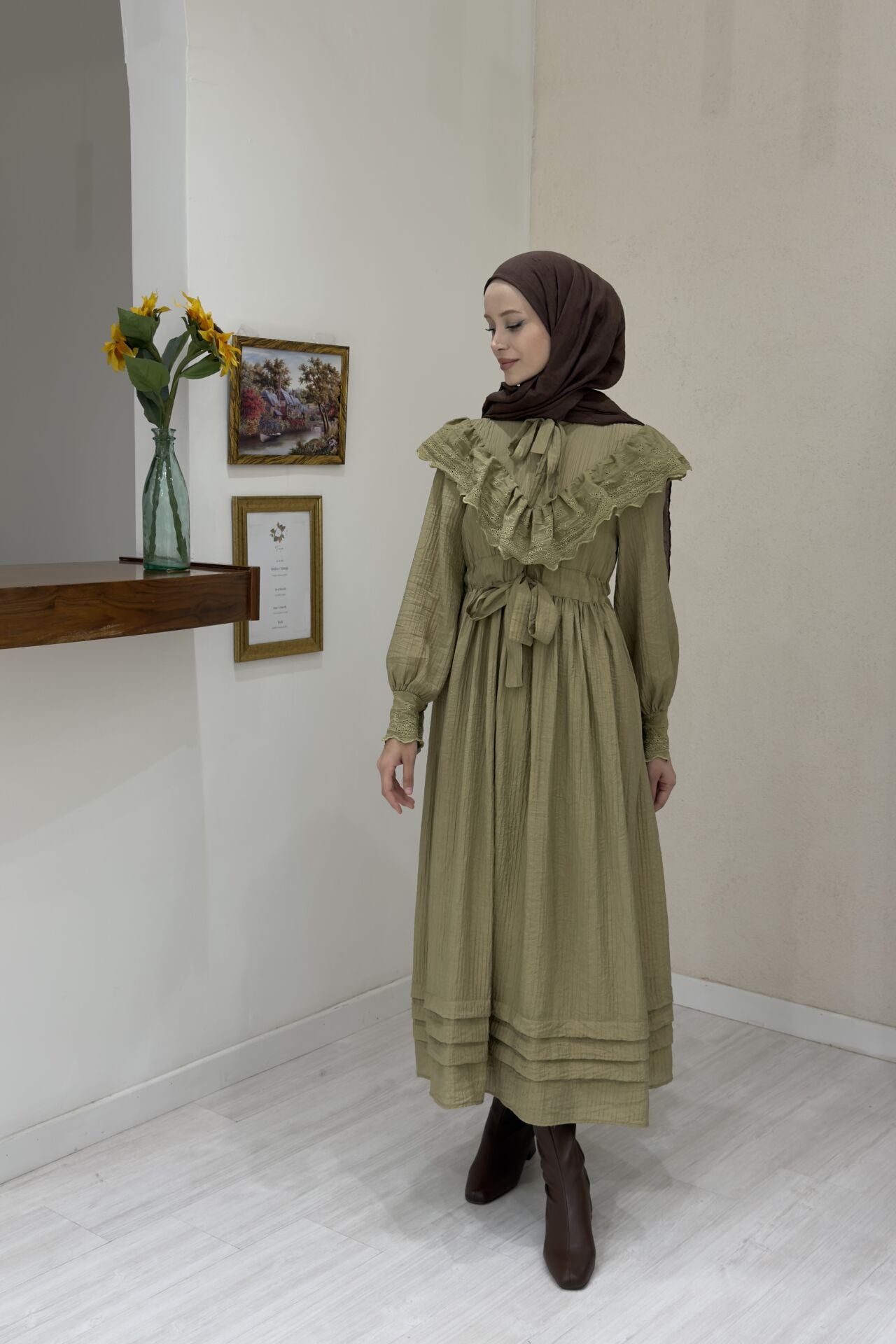 Çağla Yeşili Fisto Volanlı Valeria Elbise