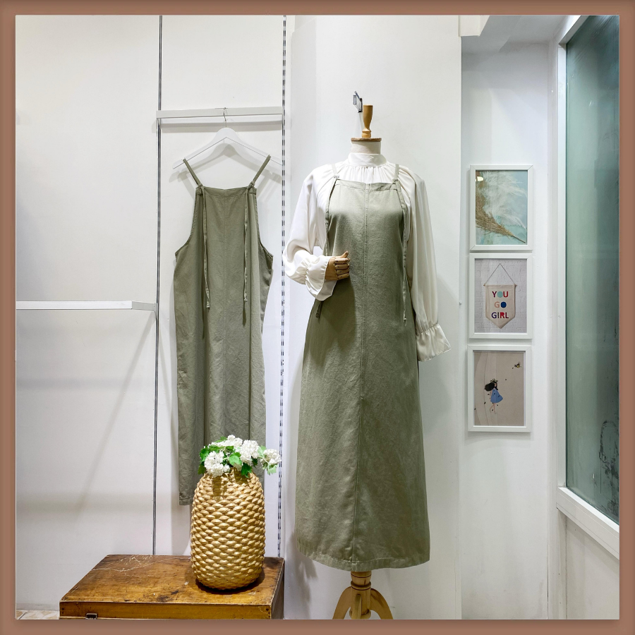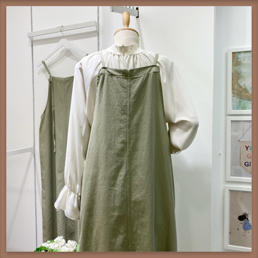 Çağla Yeşili İnce Gabardin Askı Detaylı Jile