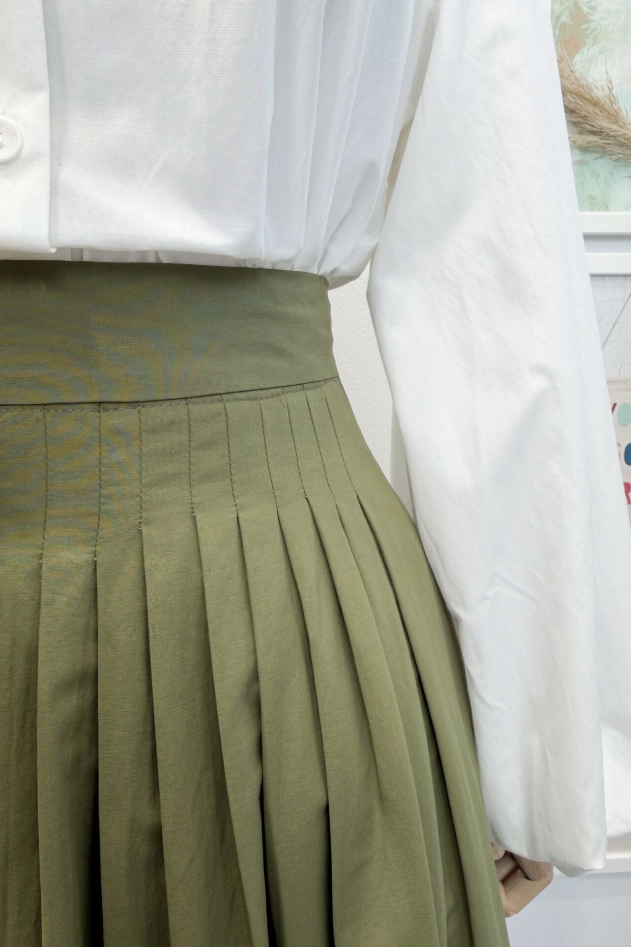 Çağla Yeşili Minik Pileli Poplin Sofia Etek