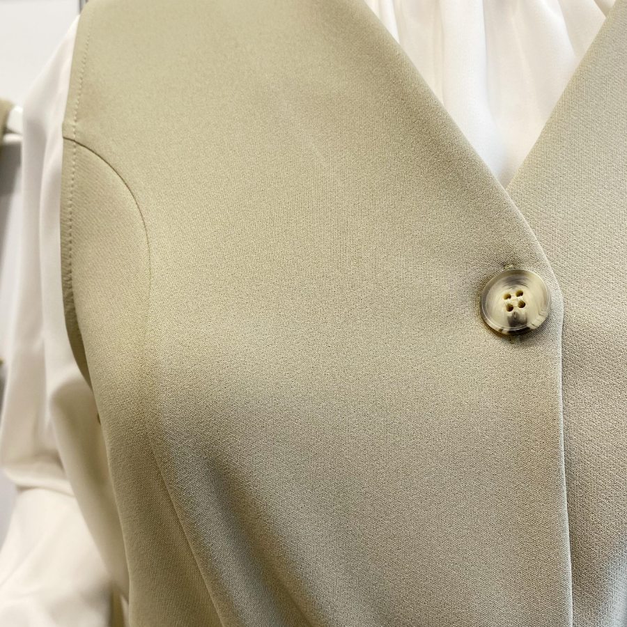 Çağla Yeşili Önü Düğmeli Double Crep Jile