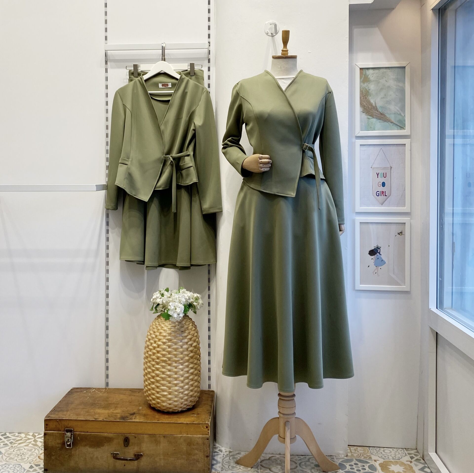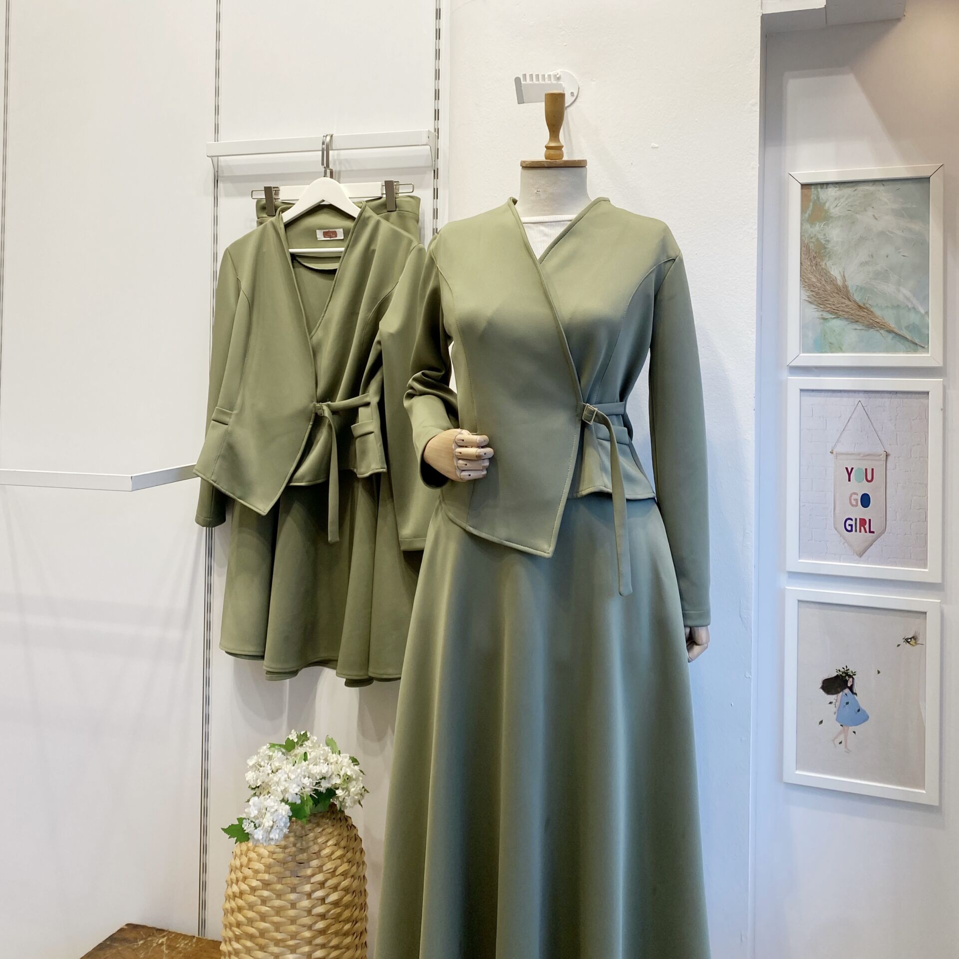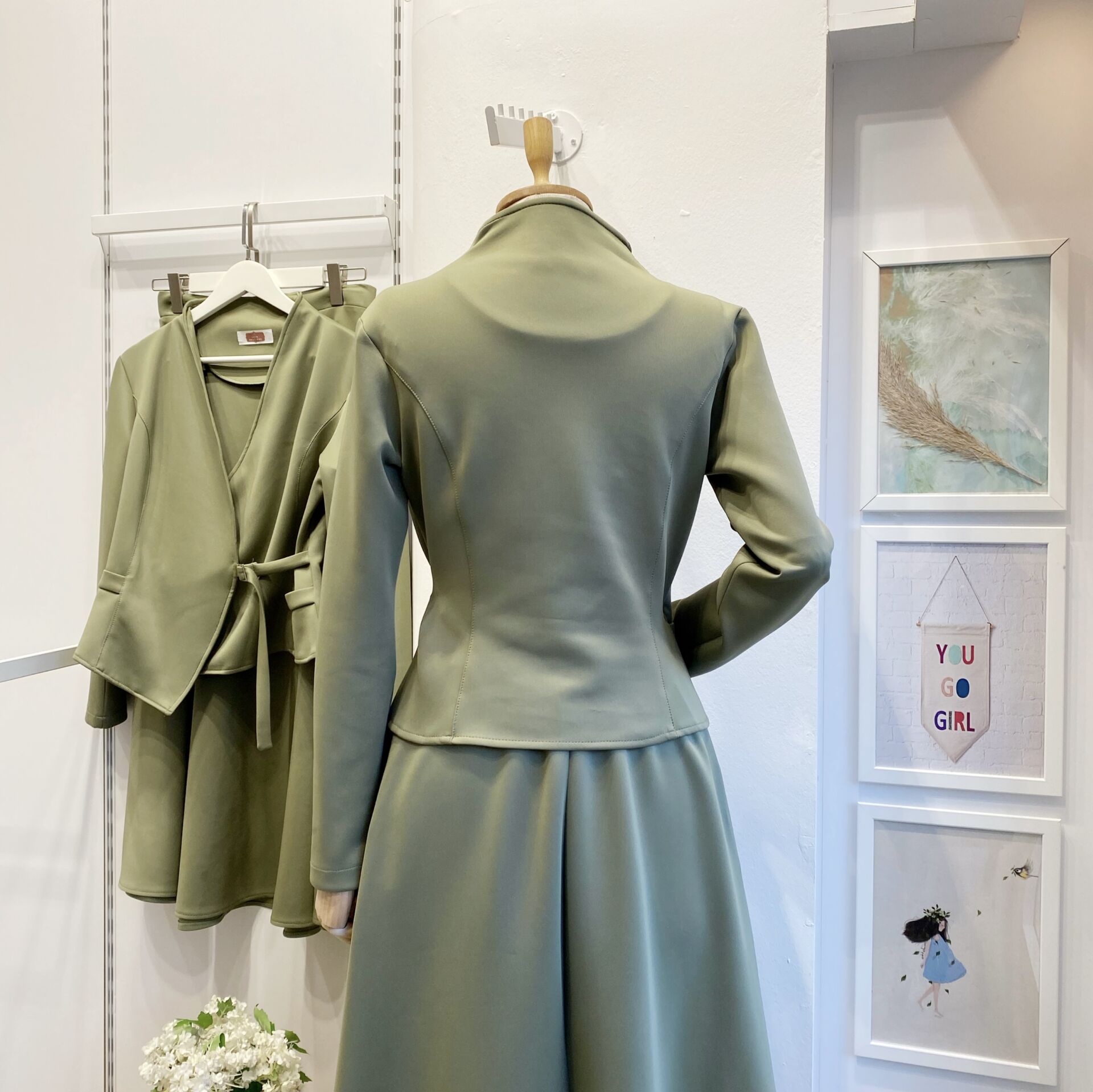 Çağla Yeşili Scuba Kumaş Anvelop Ceketli Takım