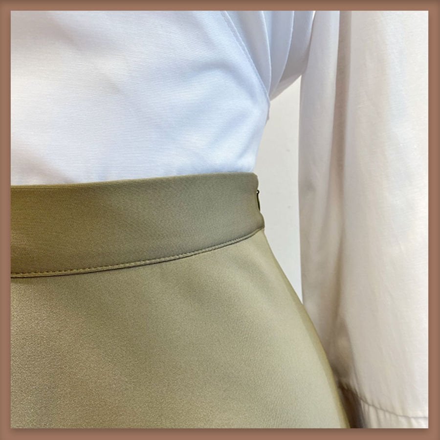 Beli fermuarlı ve astarsızdır.