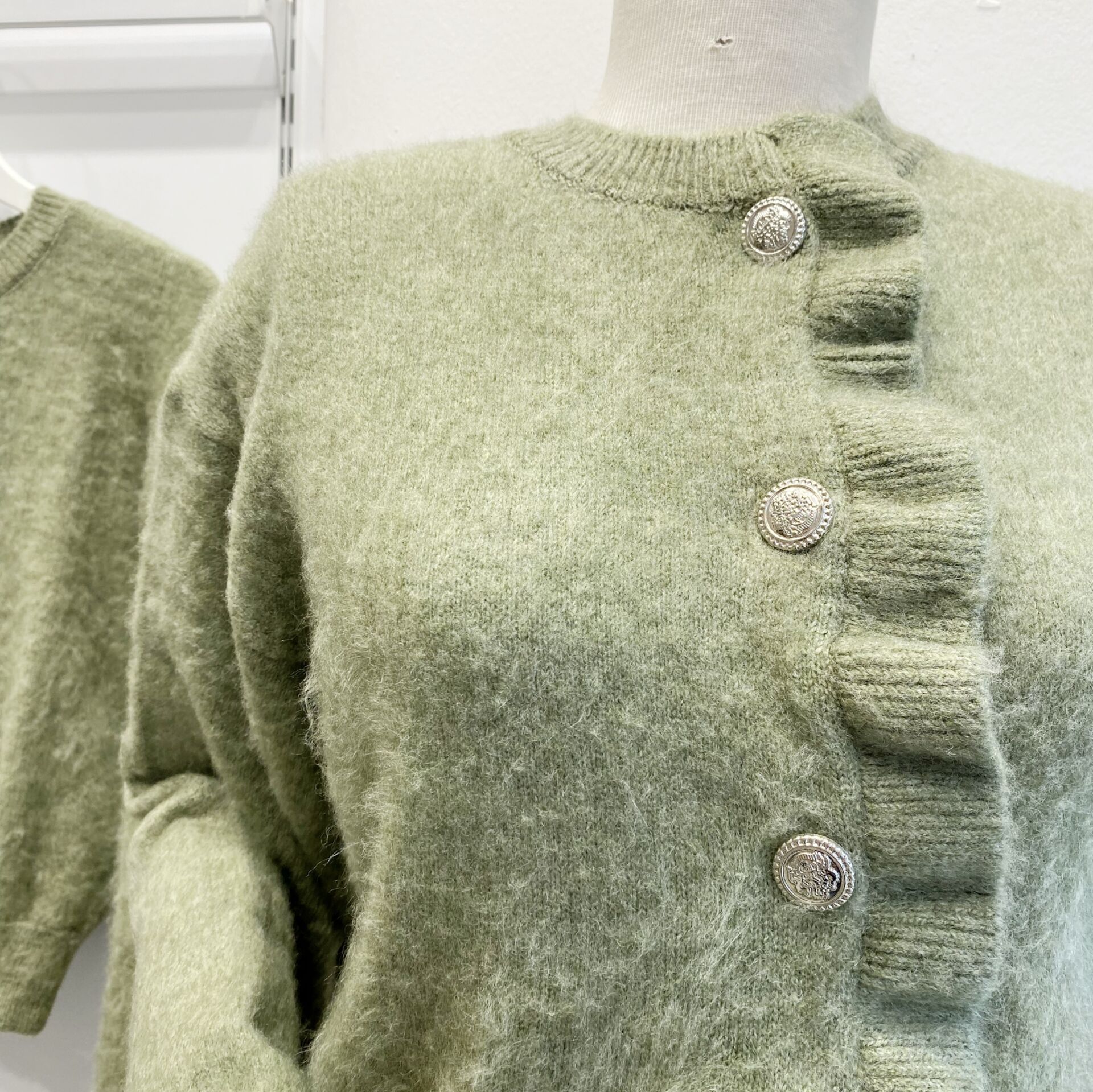 Çağla Yeşili Silver Düğmeli Asimetrik Hırka