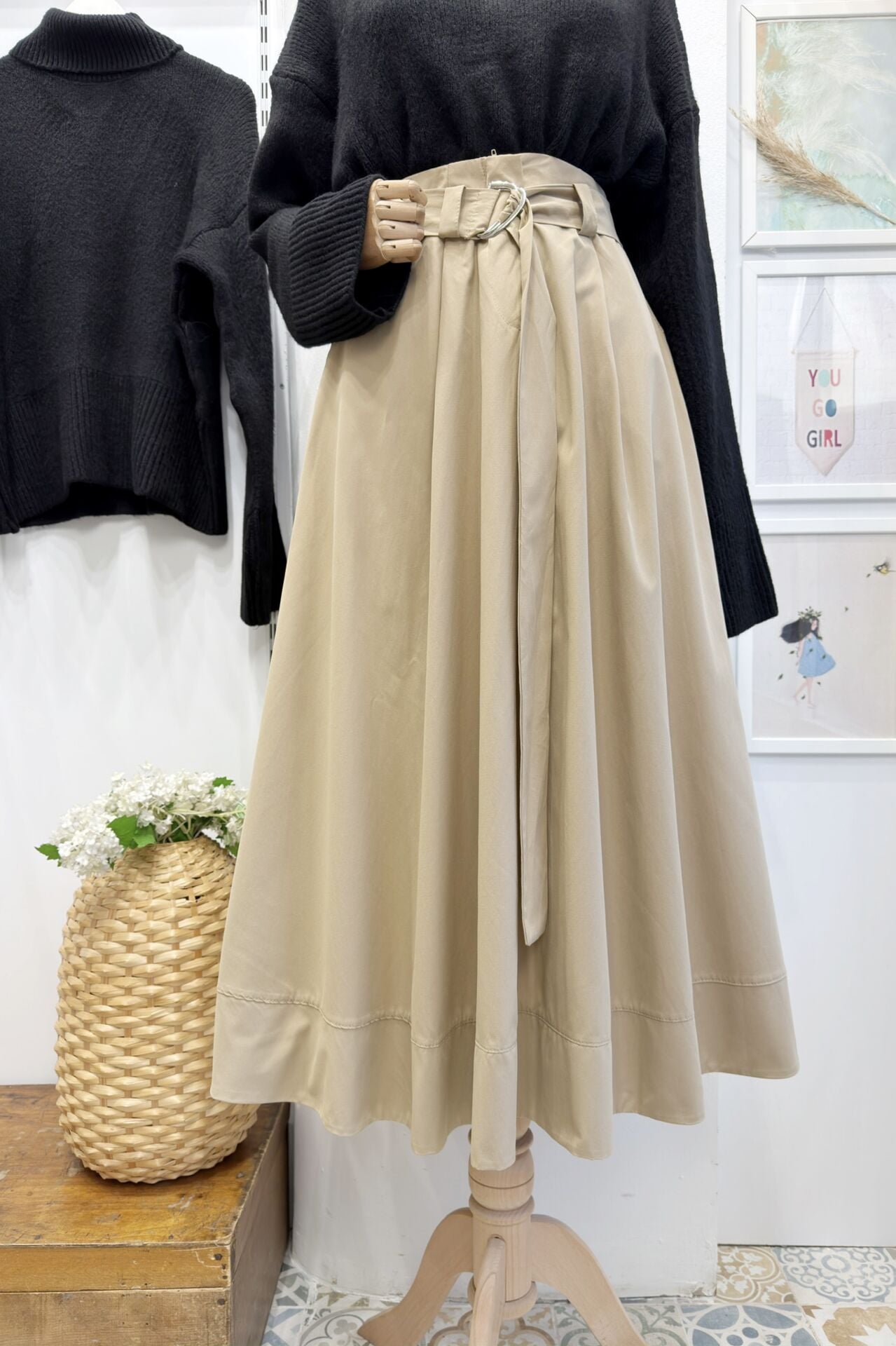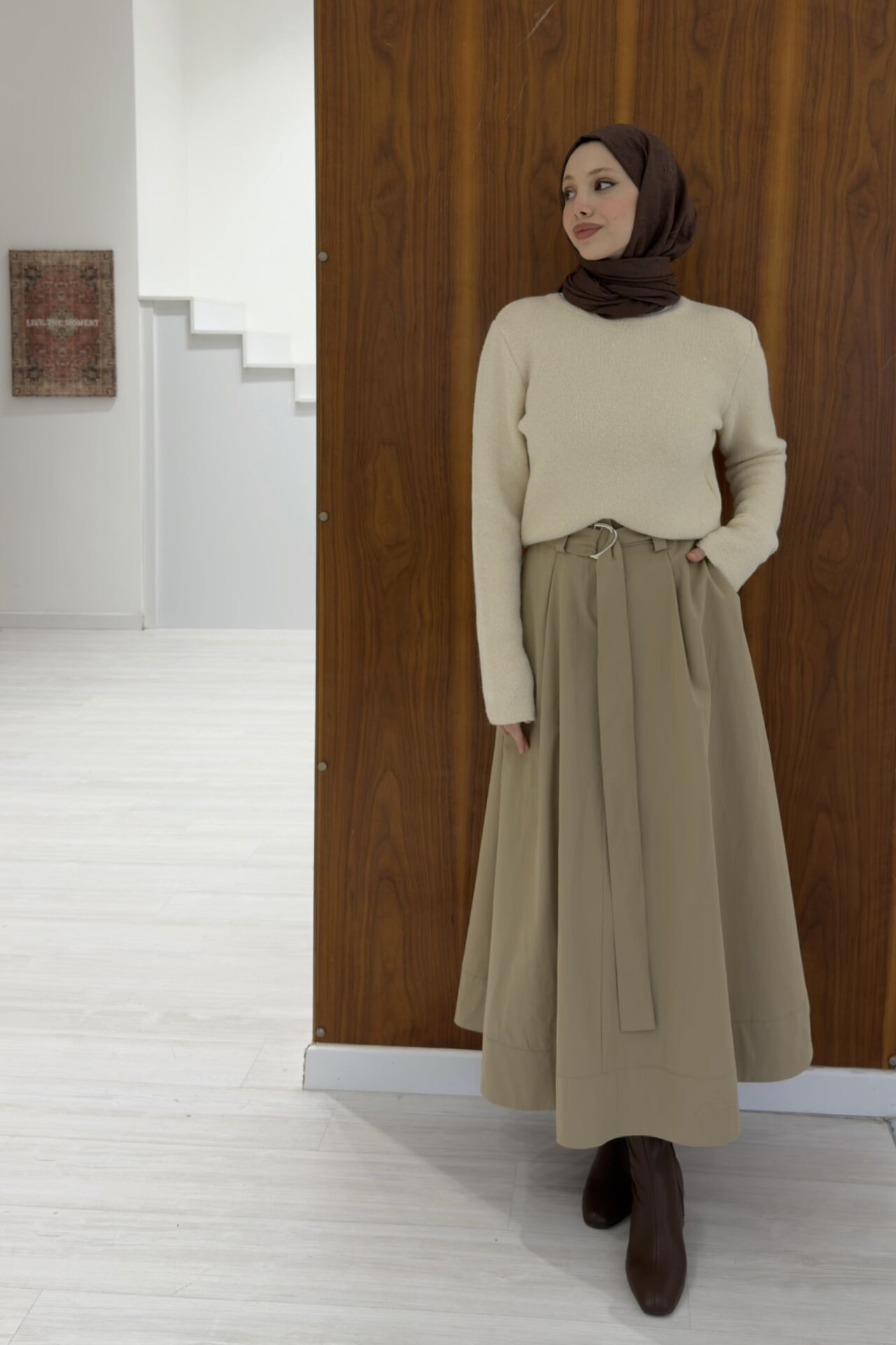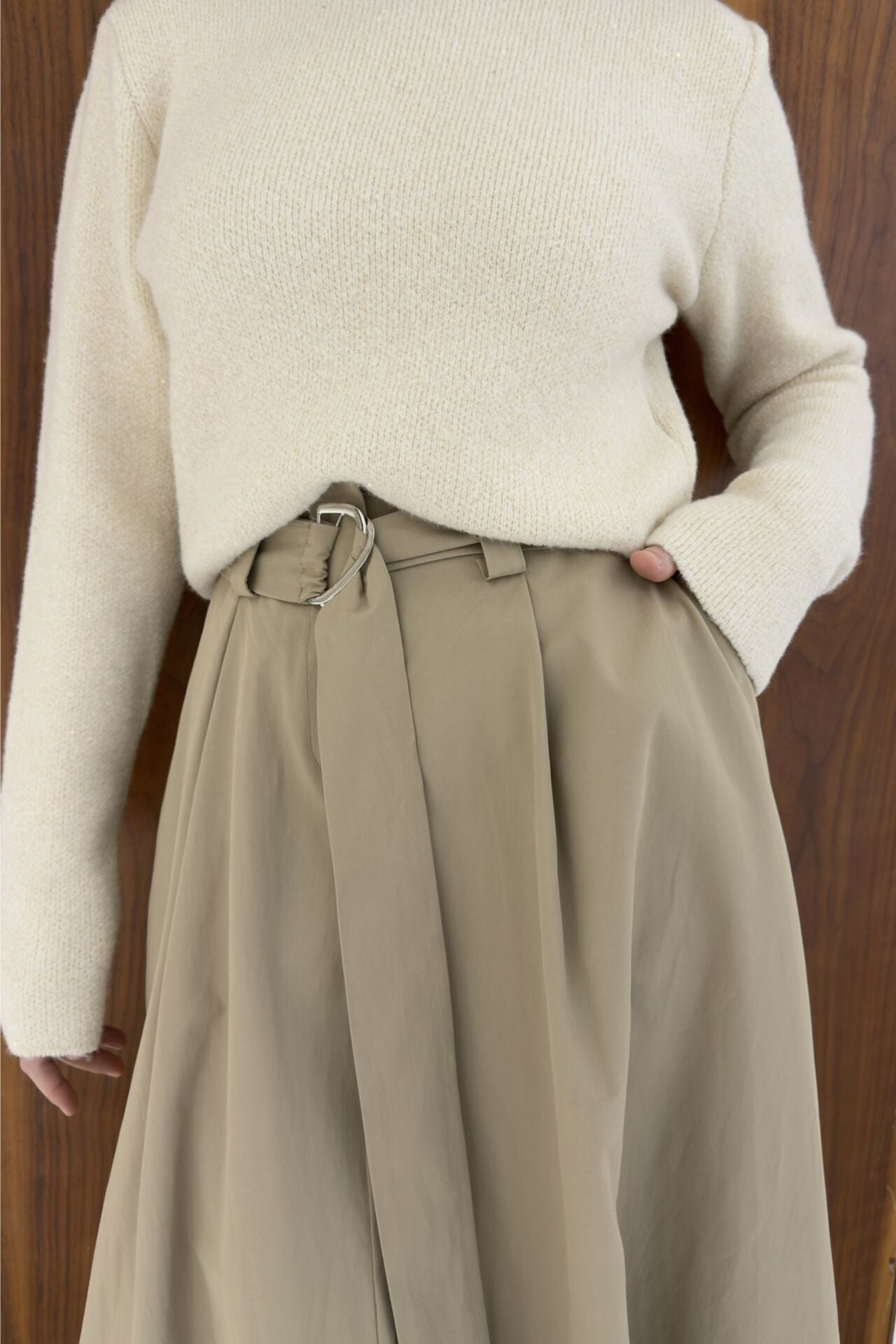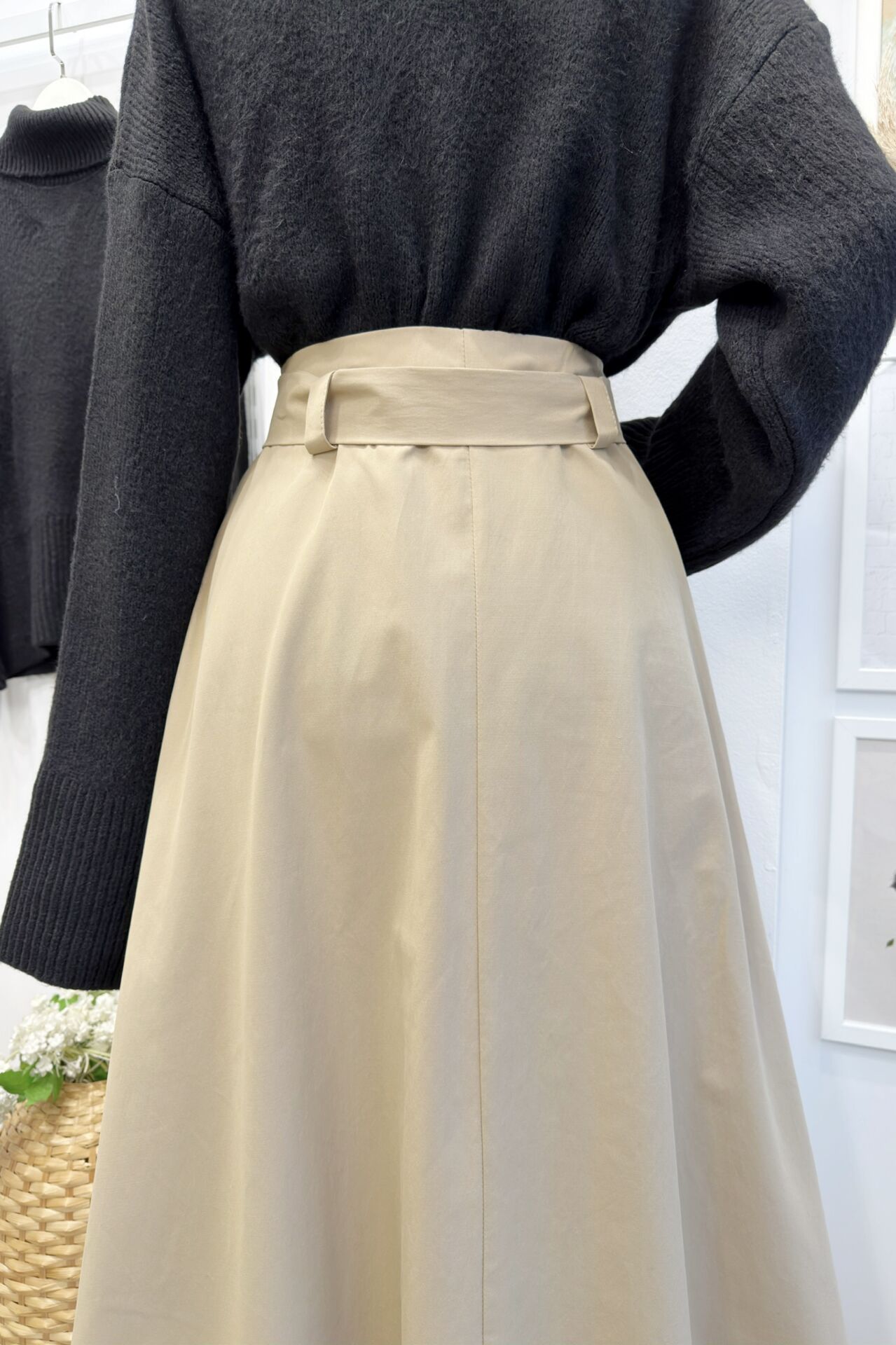 Camel Kuşak Detaylı Terra Poplin Etek