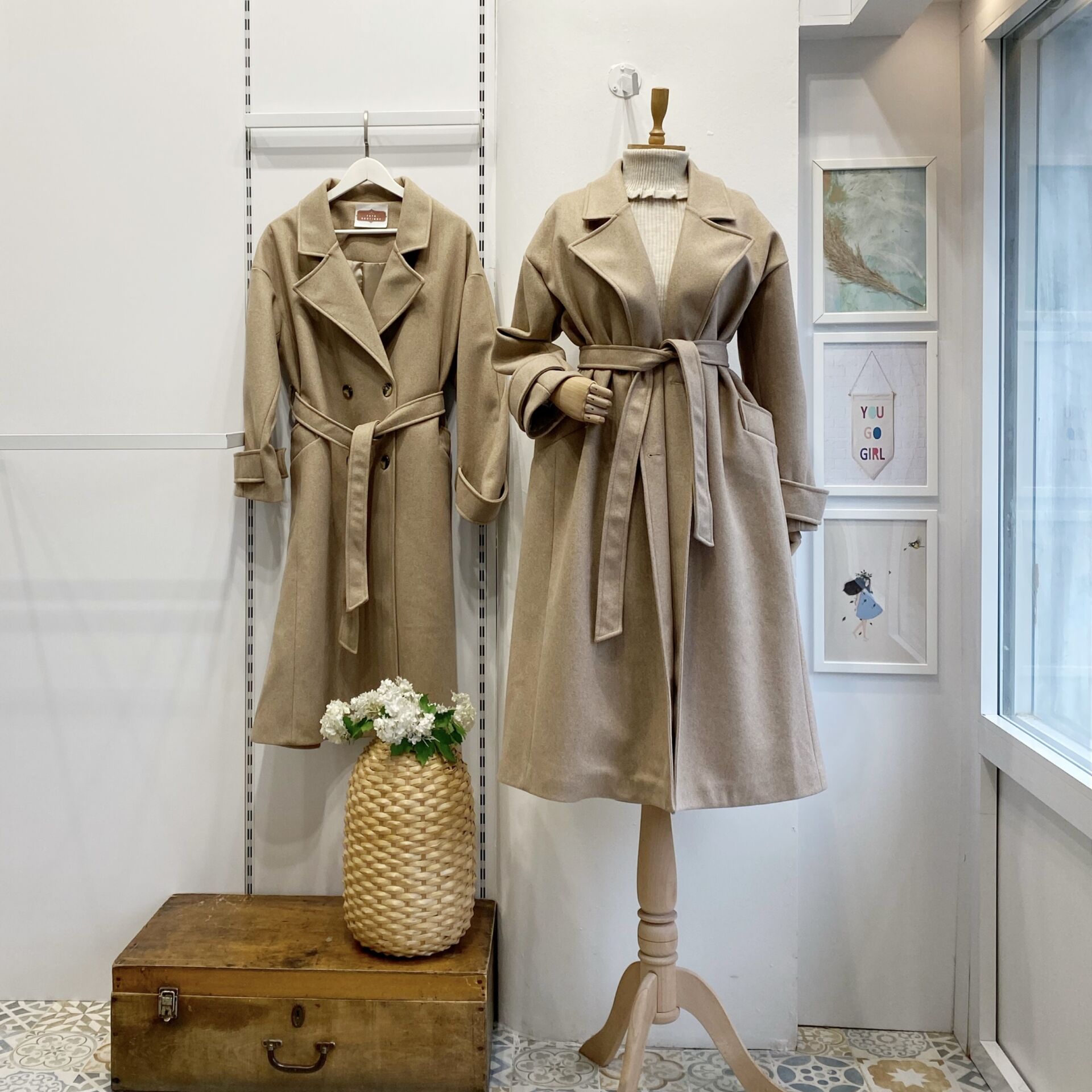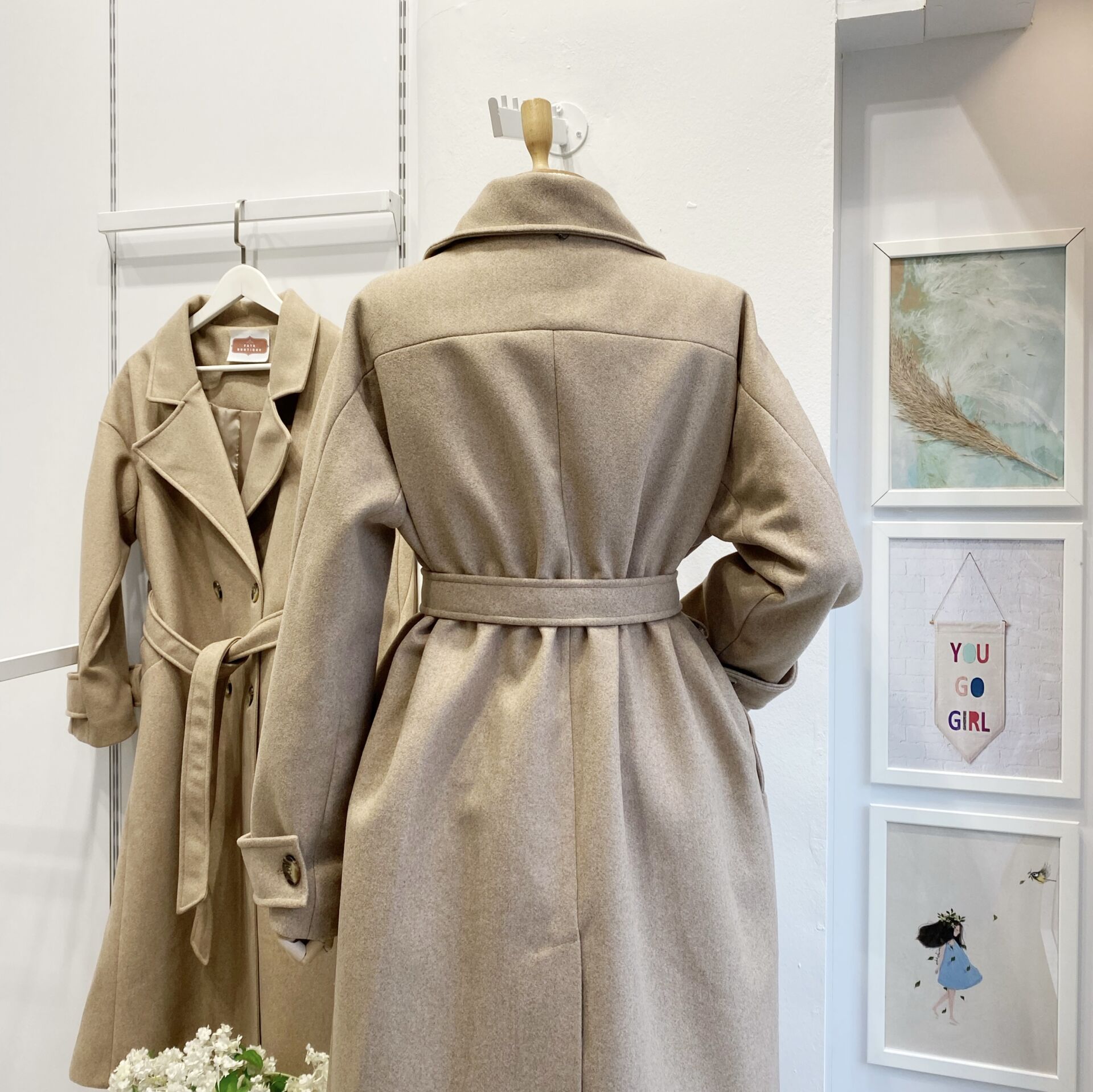 Camel Kuşaklı Kaşe Kaban