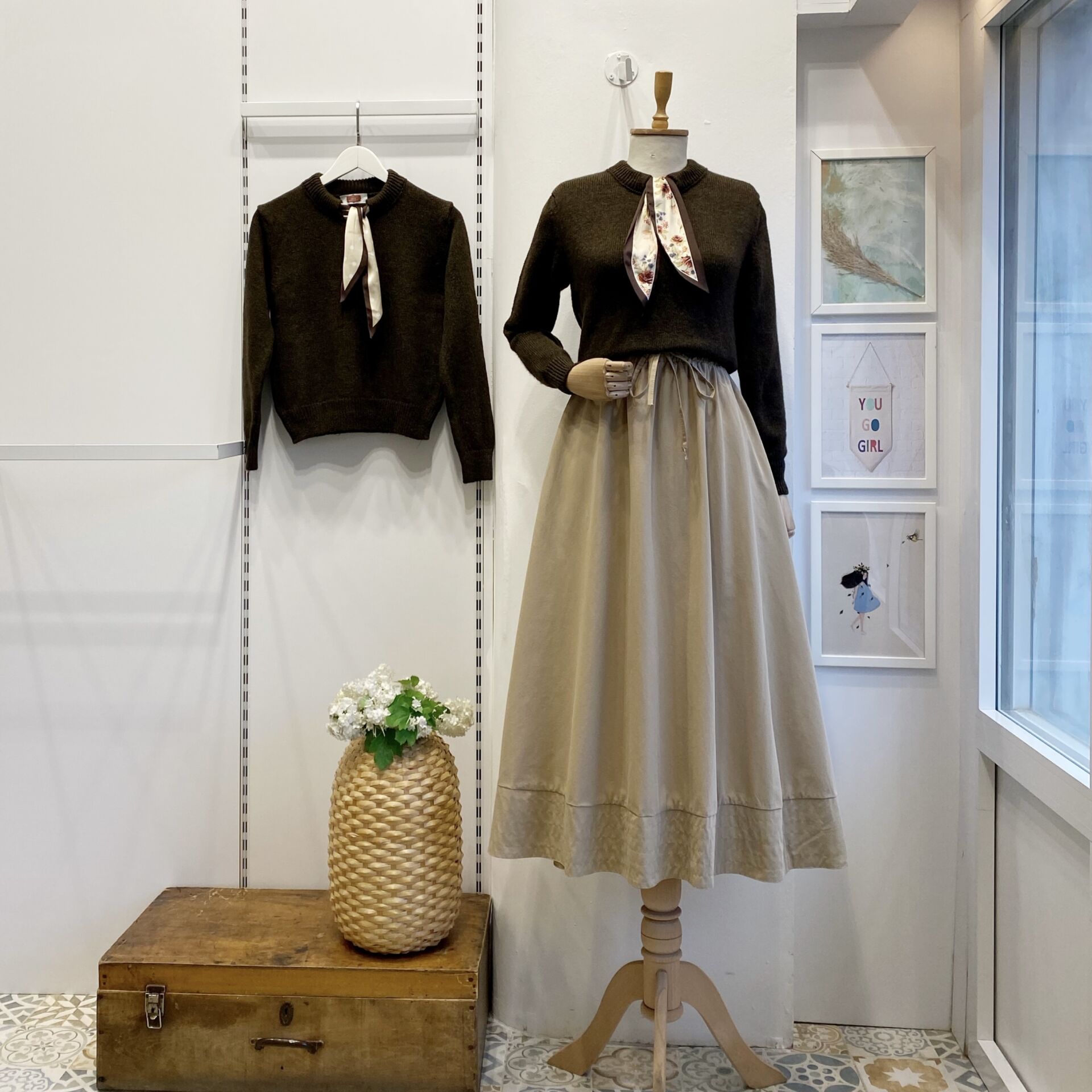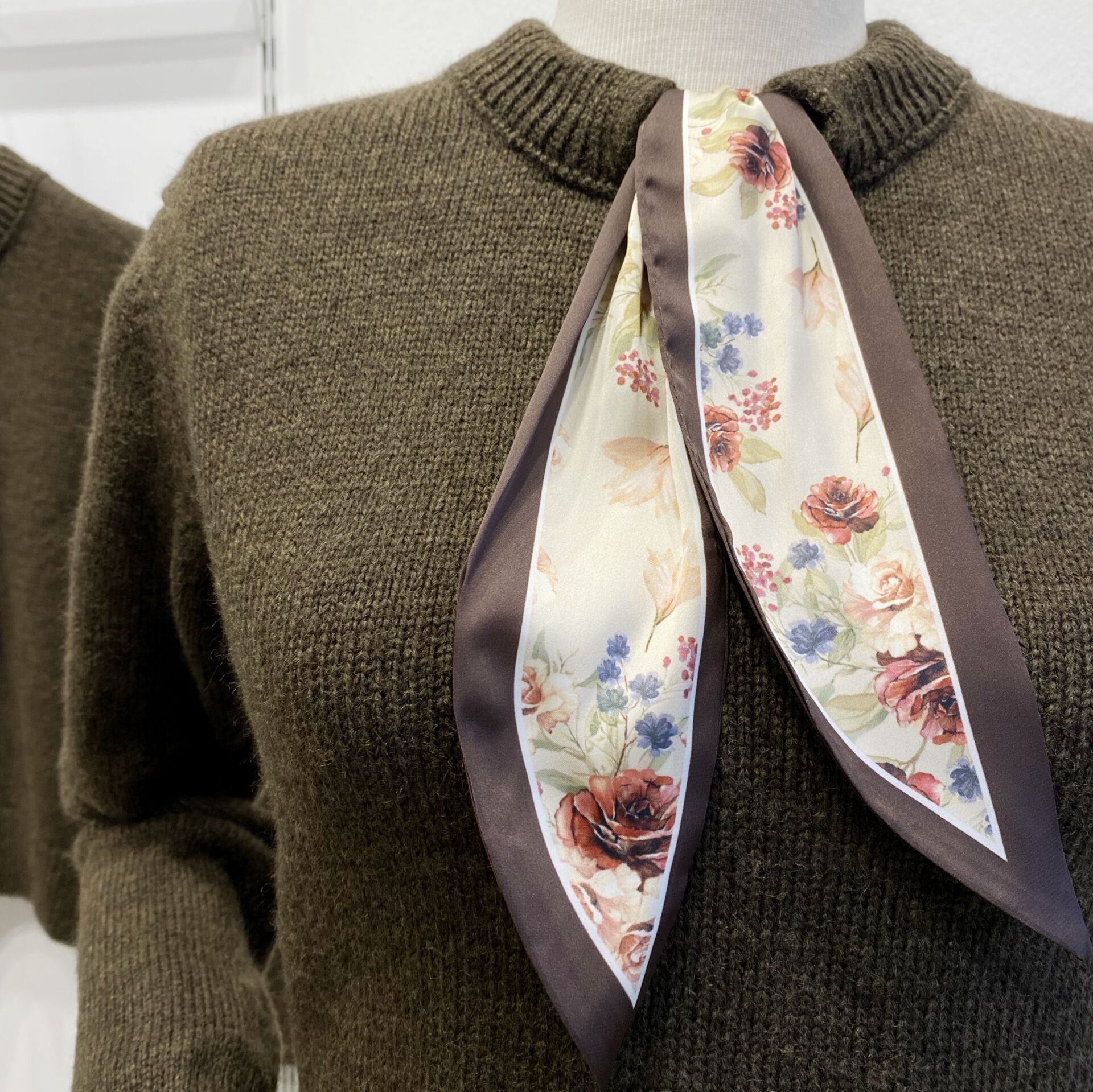 Çiçek Desen Fular Detaylı Kahverengi Kazak