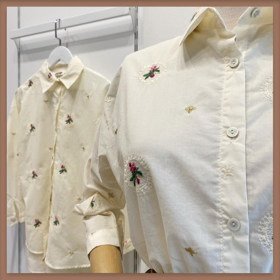 Claire Krem Keten Çiçekli Gömlek